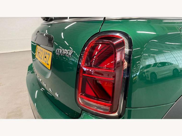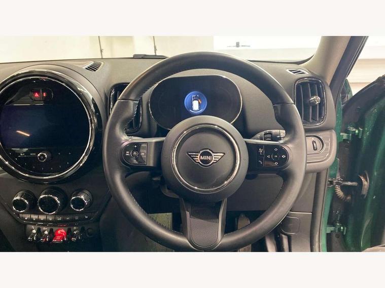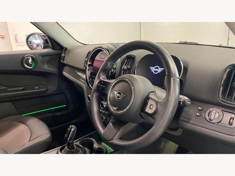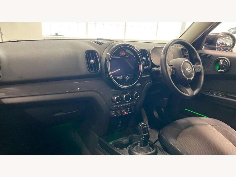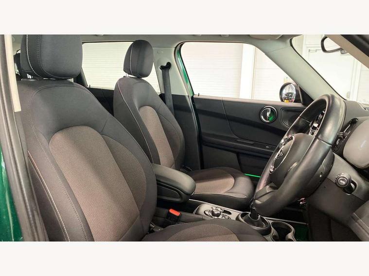 Active Guard incl speed limiting and lane departure functions with auto steering, and front collision warning with brake intervention, Automatic start/stop function with brake energy recuperation, Compatible mobile phone bluetooth with audio streaming, Cruise control with brake assist, Electro-mechanical speed dependant steering assistance, Instrument cluster, Mini E-call, On board computer, Rear parking distance control, 51 Litre fuel tank, Double Vanos system, Fully variable valve control, High precision injection, Performance Control, Steptronic transmission with double clutch, FM tuner and DAB digital radio, 3rd brake light, Body colour fuel filler cap, Day time driving lights, Door sill strips, Dynamic brake lights, Electric windows, Heated rear window, Heated windscreen washer jets, LED fog lights, LED Headlights, Left exhaust tailpipe with chrome finisher, Model logo, Model logo on Tailgate, Radiator grille, Rain sensor with auto headlights, Rear fog lights, Rear side wing doors, Rear window wiper, Side scuttle panel with integrated indicator, Split rear doors, Sun/heat protection glass, White indicator lenses, 12V socket in centre console, 3 seat bench in 2nd row, 3 spoke sport leather steering wheel + limiter function and audio controls, 360L luggage compartment capacity, 4 lashing eyes in luggage compartment, 40:20:40 split folding rear seats, Chrome interior highlights, Colour line - Carbon black, Cupholders, English handbook, Floor mats, Front headrests, Glove compartment, Headliner with grab handles and clothes hooks, Height and length steering column adjustment, Interior lighting with 12 basic colours selectable via toggle switch in roof, Isofix rear child seat preparation, Leather gearshift lever and handbrake gaiters, LED reading lights, vanity mirror lights, front foot well light and spotlight on front seats, Manual air conditioning, Mechanical seat adjustment, driver seat height adjust, forward/back and front seats backrest, Multifunction steering wheel, Passenger seat height adjuster, Rear headrests, Single front passenger seat, Storage compartments in doors, Sunvisors with vanity mirrors, Excitement pack - Countryman, Navigation pack - Countryman, 2 tone horn, 3 point seatbelts on all seats, 6 Airbags - front, side, head and seat belt tensioners, Anti-lock braking system (ABS), DSC - Dynamic Stability Control, Electronic handbrake, Front and rear disc brakes, Hill start assist, Manual rear child locks, Tyre pressure monitoring system, Alarm system with tilt sensor, monitoring doors, bonnet interior and tailgate, Auto drive away locking, Deadlocking function, Electronic vehicle immobiliser, Locking wheel bolts, Start/stop toggle with keyless go, Tool kit,