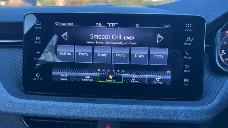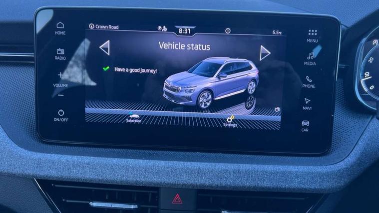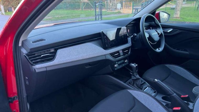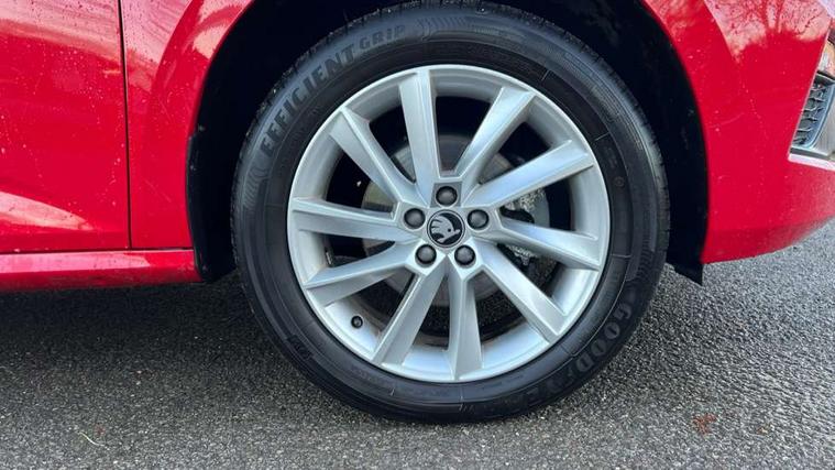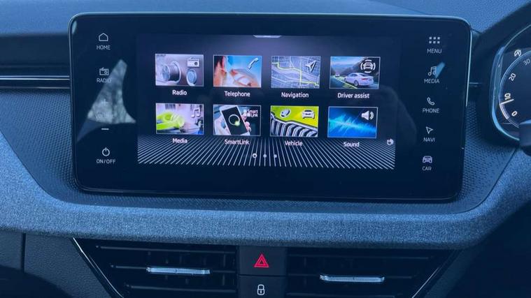 Advanced driver attention and drowsiness monitor, Bluetooth system, E-call, Front assist system, PAS, Rear parking sensors, Rear view camera, Service indicator, Speed limiter, Traffic sign recognition, Virtual cockpit with 10.25" display, Voice control system, Wireless smartlink, 4 USB C ports, 8 Speakers, 8.25" Skoda infotainment display, 9.2" Skoda navigation display, DAB Digital radio, Auto dimming rear view mirror, Automatic headlight control with coming home and leaving home feature, Black roof rails, Body colour bumpers, Body colour door mirrors and handles, Chrome grille surround, Front and rear electric windows, Full LED headlights, Heated rear window, LED brake lights, LED daytime running lights, LED front turning lights, LED high beam, LED low beam, LED third brake light, Rear LED fog light, Rear side wing doors, Rear wiper, Ticket holder inside windscreen, 12V socket in luggage compartment, 3 seat bench in 2nd row, Black hotstamping, Cargo elements, Chrome inner door handles, Driver and passenger sun visors with vanity mirror, Dual zone climate control, Front and rear roof lights, Front centre armrest, Front head restraints, Glove compartment with illumination, Height adjustable driver seat, Height adjustable front passenger seat, Ice scraper, Inner circulation control with pollen filter, ISOFIX on front passenger seat, Isofix preparation for back seats, Krepp recycled decor inserts, Leather gearknob and handbrake lever, Loft cloth upholstery, Manual lumbar support for front seats, Net package and top tether hooks in boot space, Net under rear shelf, Overhead glasses storage compartment, Pocket on the back of both front seats include mobile phone pockets, Rake/reach adjustable steering wheel, Reading lights, Satin black door inserts, Single front passenger seat, Textile floor mats, Third rear headrest, Top tether for front passenger seat, Umbrella in driver's door, 3x3 point rear seatbelts, Airbags - driver and front passenger, Disc brakes, ESP, Extended and predictive pedestrian/cyclist protection, Front passenger airbag deactivation switch, Front side airbags with curtain airbags, Hill hold control, Manual leather parking brake, Manual rear child locks, One tone horn, Seatbelt reminder for driver an co-driver, Traction control, Tyre pressure monitor, Anti-theft alarm system with interior monitoring, backup horn, towing protection and remote central locking with SAFE system, Anti-theft wheel bolts, Electronic engine immobilizer,