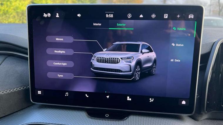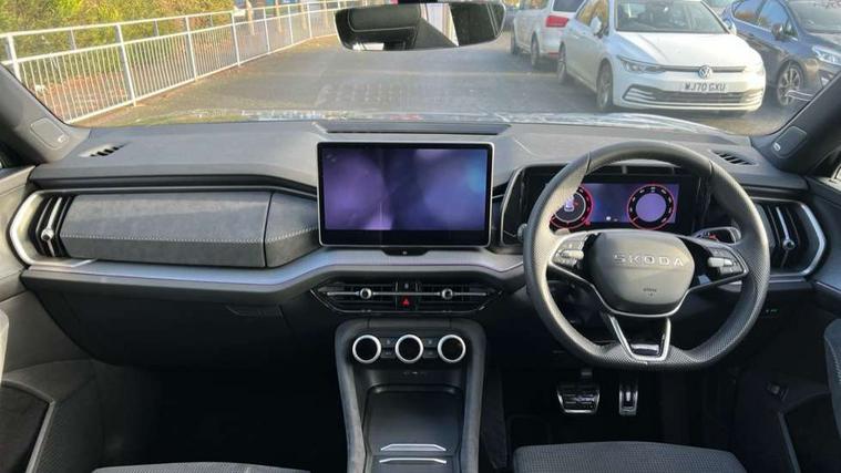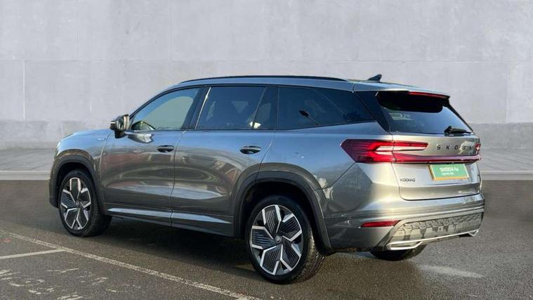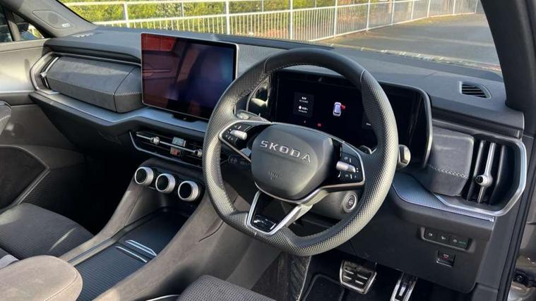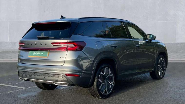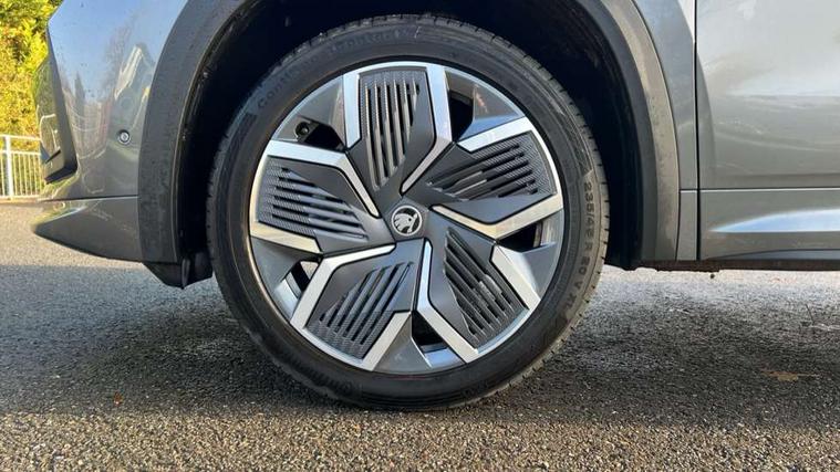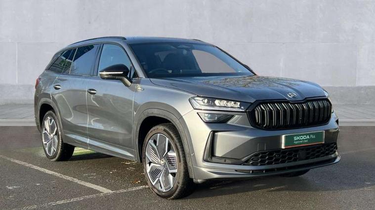 13" satellite navigation touchscreen display, Blind spot detection with door exit warning, Bluetooth system, ChatGPT functionality, Driver alert - Fatigue and drowsiness monitor, Dry display cleaner, Emergency call, Front and rear parking sensors, Front cross traffic assist, Lane assist, Off road modes, PAS, Rear traffic assist, Tailgate unlocking from outside, Traffic sign recognition, USB C Port x 2 in front centre console, Virtual Cockpit - 10.25" digital display, Voice control system, Wireless charging for two smartphones (15W) with cooling function, Wireless SmartLink for Apple CarPlay and Android Auto, Stop/start function, 2x USB-C in the rear, DAB Digital radio, Aero front windscreen wipers with intermittent function, Auto dimming rear view mirror, AWL (all weather lighting) and all weather light with cornering function, Black diffuser and decorative tailpipe with a unique dark chrome finish, Black roof rails, Black sports styling including front grille and window surrounds, Black wheel arch surrounds, Body colour door handles, Cornering light and poor weather light, Electric folding /adjustable/separted heated/folding door mirrors, auto dimming with boarding sports and memory function, Electric front and rear windows, Exterior black decorative trims, Front and rear sports bumpers including lower rear chrome strip, Gloss black door mirrors, Gloss black window frame and D pillar, Heat insulating glass in windshield, Heated rear window, Ice scraper in fuel tank cap, LED daytime running lights, LED third brake light in rear spoiler, Light assistant with automatic headlight control and coming home feature, Logo projection in door mirrors, Privacy glass, Rear roof spoiler, Rear side wing doors, Rear window wiper, Red decorative strip between rear LED lights, Safety reflectors on front and rear doors, Sportline badge on front fenders, Tailgate lettering in Black, Unique dark chrome design logo on alloy wheels, Window control switches with black trim, Windscreen wipers with rain sensor, Without engine designation, 1.5l bottle holder points in all door, 1x centre rear reading light, 2 seat bench in 3rd row, 3 configurable smart dials with 32mm coloured display, 3 seat bench in 2nd row, 4 foldable roof handles with rear coat hooks, Aluminium pedals, Ambient interior lighting - Dashboard, front-door stowage compartments, front and rear door panels and footwell lighting, Automatic gear selector on steering column, Chrome interior door handles, Driver/front passenger reading lights, Fabric headlining, Fixed bench 40:60:40 split folding backrests, Front and rear floor mats, Front centre armrest with jumbo box storage compartment, cup holder and 12V socket, Front sport seats, Height adjustable front headrests, Interior black decorative trims, Isofix child seat fittings in outer middle row rear seats and front passenger with top tether, Manually adjustable steering column, Pollen filter, Rear centre armrest with cupholders, Rear seat boot backrest release, Single front passenger seat, Skoda lettering on steering wheel, Storage pocket including mobile phone pockets on the backs of the front seats, Sunvisors with illuminated vanity mirrors, Three rear height adjustable headrests, Ticket holder on A Pillar, Tri zone climate control, Umbrella in door panel x1 made from sustainable materials, Upper and lower glovebox with card holder and coin compartment, USB C port by rear view mirror for charging only (15W), Acoustic package - Kodiaq, Performance package - Kodiaq, Sportline design selection pack - Kodiaq, Auto door release and activation of warning lights in the event of an accident, Driver and front passenger airbag with knee airbag and front passenger airbag deactivation, Electric child locks, Electronic parking brake, ESC (incl. ABS+EMD+MSR+ASR+EDL+HBA+DSR+RBS+ESBS+MCB+TSA+XDS), Front assist with braking reaction to vehicles, pedestrians and cyclists, Front disc brakes, Fuel cut off safety device, Height adjustable front 3 point seatbelts + pretensioners, Hill hold assist, Junction assist with automatic emergency braking, Rear disc brakes, Safety vest holder in door, Seat belt reminder for all seats, Three point rear seat belts, Two tone horn, Tyre pressure monitor, Alarm with interior monitoring and tilt sensor with safe function, Anti-theft wheel bolts, Immobiliser, Remote central locking with 2 keys, 20" Rila anthacite polished alloy wheel with black matte aero covers,