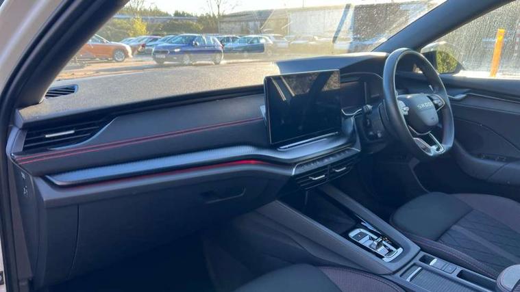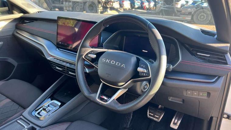 1x USB Typc C port in rear view mirror, 4x USB Type C ports - 2x in front centre console and 2x in rear (45W), Drive mode selection, Driver fatigue sensor, eCall emergency system, Electrically operated boot with virtual pedal, Front assist system, Progressive dynamic steering, Traffic sign recognition, Turn Assist, Virtual Cockpit - 10.25" digital display, Voice control system, Wireless charging (15W) with cooling function, Wireless SmartLink for Apple CarPlay and Android Auto, Electronically controlled limited slip differential, vRS suspension, 13" touchscreen display with navigation, DAB Digital radio, Aero front windscreen wipers with intermittent function, Auto dimming rear view mirror, Black sport exhaust pipes, Body colour bumpers, Body colour door handles, Electric front and rear windows, Exterior gloss black sports styling including front grille, window surrounds, door mirrors and badging, Gloss black diffuser, Gloss black spoiler, Heated rear windscreen, High beam control, High level third brake light, Ice scraper in fuel cap, LED daytime running lights, Logo projection in front doors, Rain and light sensors, Rear fog light on one side, Rear privacy glass, Rear side wing doors, Unique vRS bumpers and exterior styling, 12 volt socket in boot, 3 rear headrests, 3 seat bench in 2nd row, 4 foldable roof handles, Aluminium pedals, Front head restraints, Front sport seats, Heated front seats, Illuminated glovebox, Interior door handles in dark chrome, Jumbo Box storage, Luggage compartment lighting x2 lights, Mechanical rear seat release from boot, Parcel shelf - folding, Single front passenger seat, Steering wheel in black leather with black stitching, Storage compartments in left and right of boot, Sun visors with mirrors, Sunglasses storage, Ticket holder, Umbrella in door panel, Unsplit rear bench seat, split folding backrest with centre armrest with cupholder, Waste bin in door panel, Comfort package - Octavia, Family package - Octavia, Light and view package plus - Octavia, vRS Design Selection pack - Octavia, 3x3 point rear seat belts, Alarm with interior monitoring, tilt sensor and back up horn, Curtain airbags and front side airbags, Driver and front passenger airbags, Drivers knee airbag, Electronic parking brake, ESC including ABS, EBV, MSR, ASR, EDS, HBA, DSR, Front central airbag, Hill hold assist, ISOFIX on front passenger seat and outer rear seats, Passenger airbag deactivate switch, Red brake calipers, Three point seat belts in front and rear, Two tone horn, Tyre pressure monitor, Visual and acoustic seat belt reminder, Warning reflectors in front door, Anti-theft wheel bolts, Keyless start/stop, Remote central locking, Gloss black air vent surrounds, 19" Elias anthracite alloy wheels,