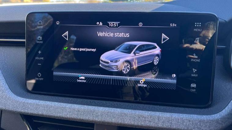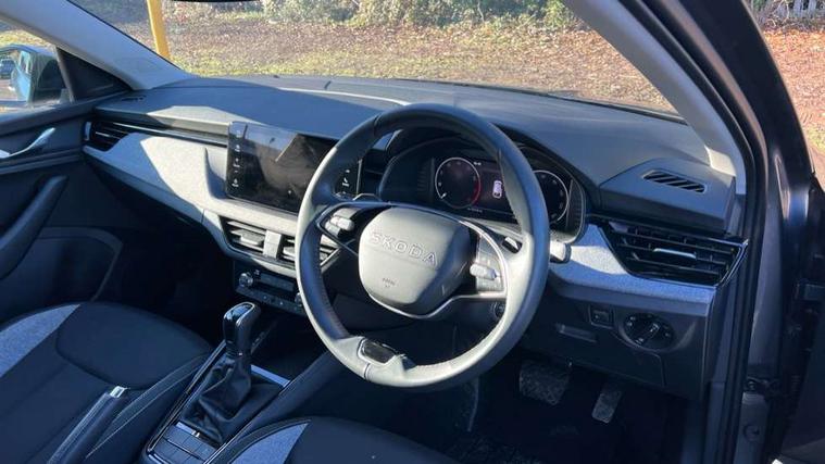 Advanced driver attention and drowsiness monitor, Bluetooth, e-Call (emergency call), Front assist system, PAS, Rear parking sensors, Rear view camera, Speed limiter, Tailgate, Traffic sign recognition, Virtual Cockpit - 10.25" digital display, Voice control system, Wireless smartlink, 4 USB C ports, 8 Speakers, 9.2" Skoda navigation display, DAB radio, Auto dimming rear view mirror, Automatic headlamp activation with Coming home and Leaving home feature, Automatic high/low beam, Body colour bumpers, Body colour door mirrors and handles, Chrome moulding around grille, Front and rear electric windows, Full LED headlights, Heated rear window, LED 3rd brake light, LED brake lights, LED daytime running lights, LED front turning lights, LED high beam, LED low beam, LED taillights, Rear LED fog light, Rear side wing doors, Rear wiper, Tinted windows, Unique dark chrome design logo on alloy wheels, 12V socket in luggage compartment, 3 seat bench in 2nd row, Black / Grey armrest stitching, Black hotstamping, Cargo elements, Chrome inner door handles, Door inserts in satin black, Driver and passenger sun visors with vanity mirror, Dual zone climate control, Front and rear roof lights, Front centre armrest, Front head restraints, Glasses storage in roof liner, Height adjustable driver seat, Height adjustable passenger seat, Ice scraper, Illuminated glove compartment, Inner circulation control with pollen filter, ISOFIX for front passenger seat, Isofix preparation for back seats, Leather gearknob and handbrake lever, Loft cloth upholstery, Luggage net under rear parcel shelf, Manual lumbar support for front seats, Net package and top tether hooks in boot space, Pearl grey ceiling, Pocket on the back of both front seats, incl. mobile phone pockets, Single front passenger seat, Skoda lettering on steering wheel, Textile floor mats, Third rear headrest, Ticket holder, Top tether for front passenger seat, Umbrella in driver's door, 3x3 point rear seatbelts, ABS, Child locks, Curtain airbags and front side airbags, Disc brakes, Driver and front passenger airbags, ESP, Hill hold control, Manual leather parking brake, One tone horn, Passenger airbag switch off function, Seatbelt reminder for driver and front passenger, Tyre pressure monitoring system, Anti theft alarm system with interior monitoring, backup horn and towing protection, Anti-theft wheel bolts, Remote central locking with 2 remote folding keys, SAFE function for remote central locking, Decord pad, door inserts Kota uni,