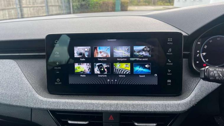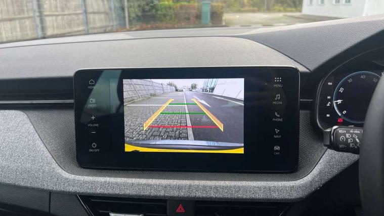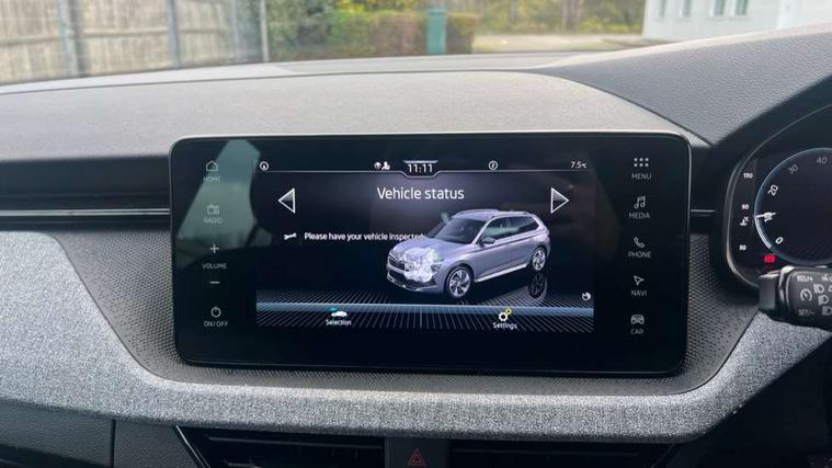 Advanced driver attention and drowsiness monitor, Bluetooth system, E-call, Front assist system, PAS, Rear parking sensors, Rear view camera, Service indicator, Speed limiter, Traffic sign recognition, Virtual cockpit with 10.25" display, Voice control system, Wireless smartlink, 4 USB C ports, 8 Speakers, 8.25" Skoda infotainment display, 9.2" Skoda navigation display, DAB Digital radio, Auto dimming rear view mirror, Automatic headlight control with coming home and leaving home feature, Black roof rails, Body colour bumpers, Body colour door mirrors and handles, Chrome grille surround, Front and rear electric windows, Full LED headlights, Heated rear window, LED brake lights, LED daytime running lights, LED front turning lights, LED high beam, LED low beam, LED third brake light, Rear LED fog light, Rear side wing doors, Rear wiper, Ticket holder inside windscreen, 12V socket in luggage compartment, 3 seat bench in 2nd row, Black hotstamping, Cargo elements, Chrome inner door handles, Driver and passenger sun visors with vanity mirror, Dual zone climate control, Front and rear roof lights, Front centre armrest, Front head restraints, Glove compartment with illumination, Height adjustable driver seat, Height adjustable front passenger seat, Ice scraper, Inner circulation control with pollen filter, ISOFIX on front passenger seat, Isofix preparation for back seats, Krepp recycled decor inserts, Leather gearknob and handbrake lever, Loft cloth upholstery, Manual lumbar support for front seats, Net package and top tether hooks in boot space, Net under rear shelf, Overhead glasses storage compartment, Pocket on the back of both front seats include mobile phone pockets, Rake/reach adjustable steering wheel, Reading lights, Satin black door inserts, Single front passenger seat, Textile floor mats, Third rear headrest, Top tether for front passenger seat, Umbrella in driver's door, 3x3 point rear seatbelts, Airbags - driver and front passenger, Disc brakes, ESP, Extended and predictive pedestrian/cyclist protection, Front passenger airbag deactivation switch, Front side airbags with curtain airbags, Hill hold control, Manual leather parking brake, Manual rear child locks, One tone horn, Seatbelt reminder for driver an co-driver, Traction control, Tyre pressure monitor, Anti-theft alarm system with interior monitoring, backup horn, towing protection and remote central locking with SAFE system, Anti-theft wheel bolts, Electronic engine immobilizer,