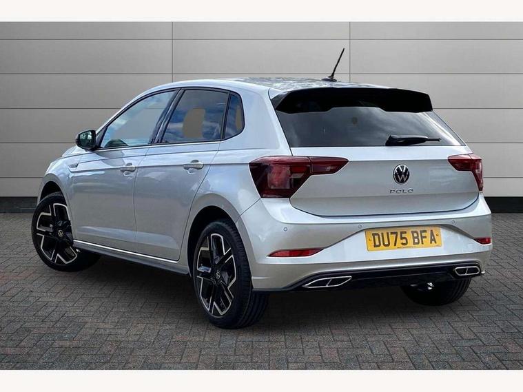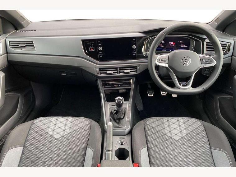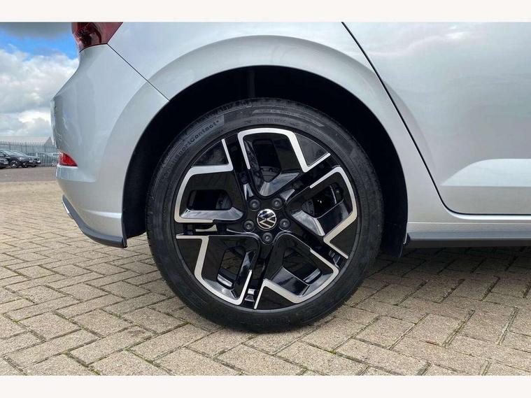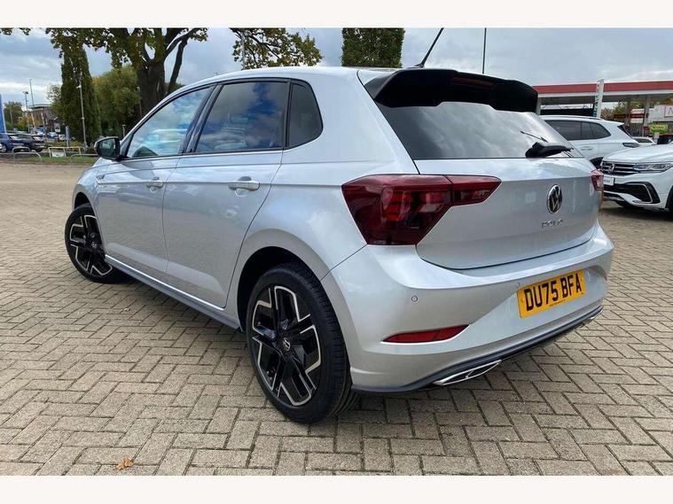 Advanced driver attention and drowsiness monitor, Bluetooth mobile phone interface, Digital Cockpit Pro with 10.25" Display, Dynamic road sign display, Emergency call service, Multifunction camera, Power assisted speed sensitive steering, Predictive adaptive cruise control without follow-to-stop and speed limiter, Preparation for We connect and We connect plus, Speedo and rev counter, electronic odometer, trip, service interval display and fuel gauge, Standard rear axle, Travel Assist - Lane keeping system and traffic jam assist, Travel assist including emergency assist, Trip computer, Warning signal and warning light for front and rear seatbelts not fastened, Washer fluid level indicator, Wireless app connect, Front wheel drive, Rear shock absorpion, Start-stop system with battery regeneration (recuperation - energy recovery during braking), DAB Digital radio, Diversity antenna for FM reception, Body colour bumpers, Body colour door handles, Electric front windows, Front scuff plates with R-Line logo, Heat insulating glass windscreen, Power folding adjustable/heated exterior mirrors and front passenger exterior mirror lowering function, Rear electric windows, Rear fog light, Rear side wing doors, Rear windscreen washer and wiper with interval delay, Third brake light, 12V power socket in centre console, 2 USB-C ports in the front, 2 USB-C charging sockets on the center console in the rear, 3 rear head restraints, 60/40 split folding rear seat and rear seat bench not split, Air care climatronic air conditoning system with active combination filter and 2-zone temperature control, Black roof lining, Carpet mats, front and rear, Chrome plated radiator grille inserts, air vent surrounds and light switch surrounds, Door and side trim panel, Driver and front passenger seat height adjustment, Driver/passenger sunvisors with illuminated vanity mirrors, Front centre armrest, Front footwell illumination, Front seat backrest storage pockets, Front sports comfort seats, Handbrake lever handle in leather, Headliner in recycled material, Isofix child seat preparation easy-fit (for two outer rear seats, and front passenger seat) compatible with I-size, Karoso artvelours cloth upholstery, Leather trimmed gear knob, LED interior light with switch off delay and dimmer, 2 reading lights front and rear, Luggage compartment cover, Luggage compartment floor, Luggage compartment lighting, Lumbar adjustment for front seats, Multifunction steering wheel, Single front passenger seat, Stainless steel pedals, Standard pedal cluster, Light and sight pack - Polo R-Line/Black Edition, 3 point height adj front seatbelts + pretensioners, 3x3 point rear seatbelts, ABS, Driver and front passenger airbag with front passenger airbag deactivation, Drivers and front passengers safety optimised head restraints, ESC (Electronic stability control) + EDL (Electronic Differntial lock) and ASR (Traction control), Extended and predictive pedestrian/ cyclist protection, Front curtain and side airbags with center airbag, Hill hold control, Manual child lock in rear doors, Single tone horn, Tyre pressure loss indicator, Alarm with interior protection, Anti-theft alarm system with interior monitoring, backup horn, and towing protection, Anti-theft wheel bolts, Electronic engine immobiliser, Chrome applications on rotary light, mirror adjustment, window regulator switches, outlet with frame in black, Dark grey anodised matt decorative inserts in dash and front door panels, 16" Coventry alloy wheels, Low rolling resistance tyres,