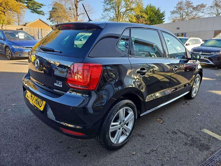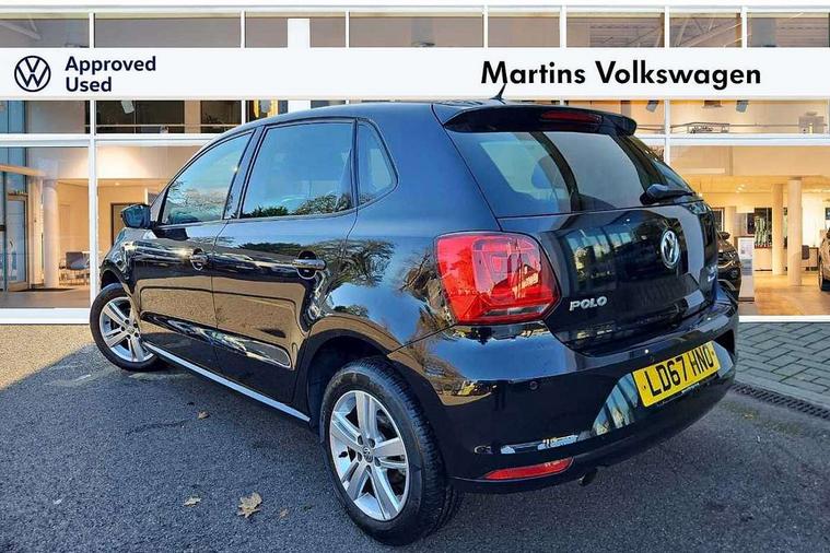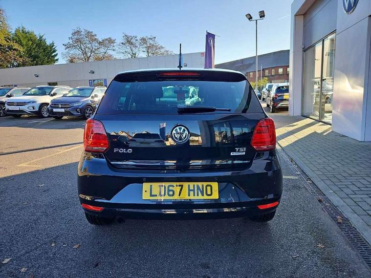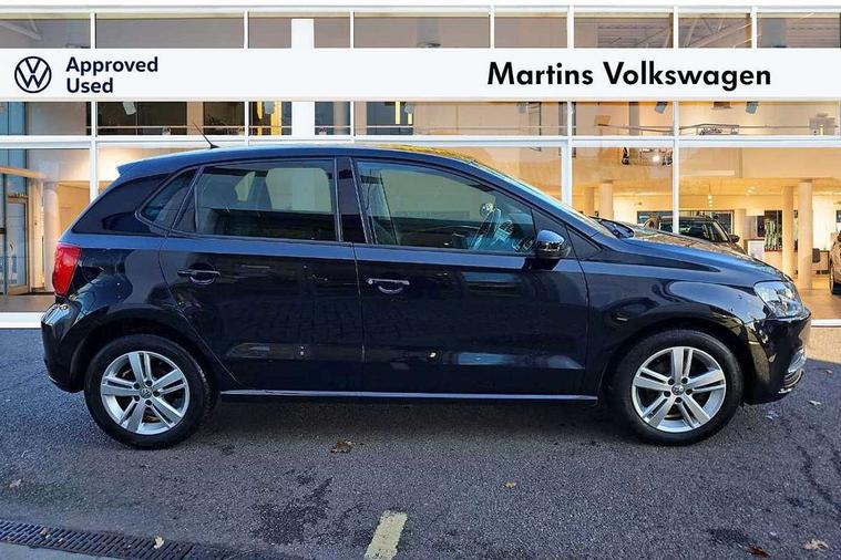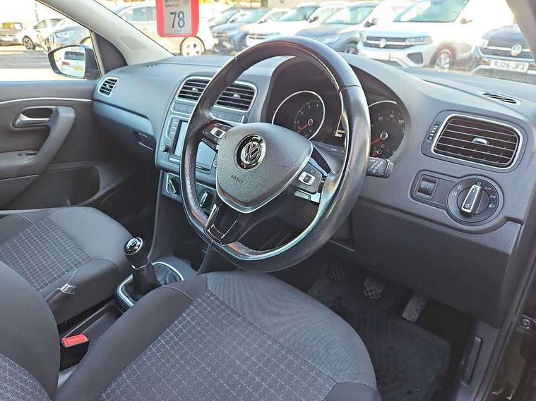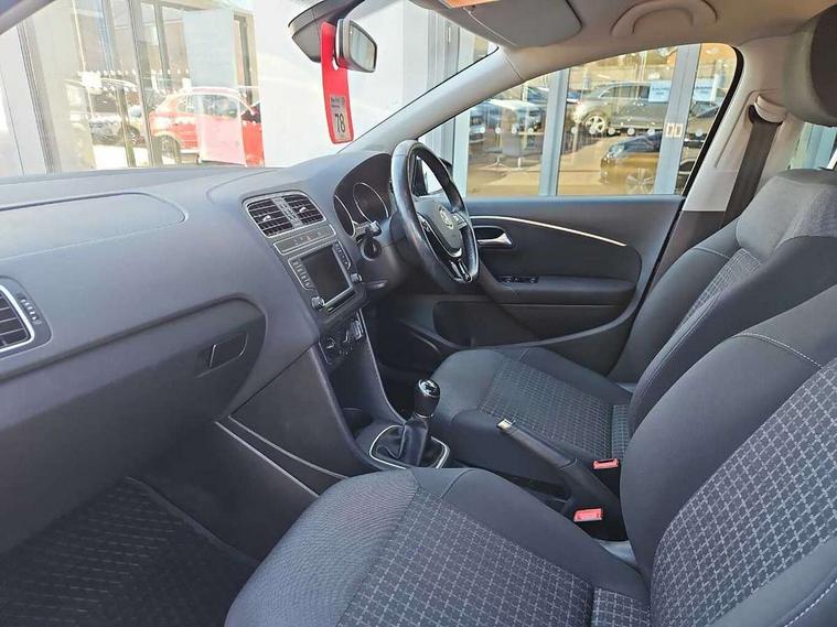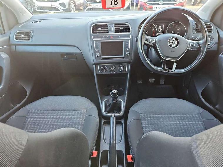 App-Connect, Bluetooth Telephone preparation, Driver alert system, Multi function display, Multifunction computer, PAS - speed related, Service interval indicator, Ultrasonic front and rear optical and audible parking sensors, Warning buzzer and light for front seatbelts unfastened, 6 speakers, Composition media system with radio, glovebox mounted CD, colour touch screen, SD card, aux-in, USB, multimedia interface, DAB Digital radio, Black grille with chrome surround, Body colour bumpers, Body colour door handles, Body colour door mirrors, Body coloured side sills, Chrome trimmed front air intake surrounds, Electric folding door mirrors, Electric front windows, Electric operated/heated door mirrors, Front fog lights with static cornering function, Front wash/wipe with interval delay, Heat insulated tinted glass 65% light absorbing from B pillar back, Heated rear window with auto timer, Rear electric windows, Rear windscreen washer and wiper with interval delay, 12V power socket in centre console, 2 bag hooks in luggage compartment, 2 cupholders, 3 rear head restraints, 3 spoke steering wheel, 4 grab handles, 60/40 split folding rear seat, Centre console storage, Chrome interior door handles, Driver and passenger sunvisors, Driver seat height adjust, Dust/pollen filter, Front door pockets, Front passenger seat height adjust, Front seat backrest storage nets, Front/rear reading lights, Glovebox, Height/reach adjustable steering column, Illuminated vanity mirror, Interior light with delay, Isofix Preparation 2 Rear child seats, Luggage compartment cover, removable, Luggage compartment lighting, Matt chrome gear lever gaiter surround, Multifunction leather steering wheel with leather gear knob/handbrake grip, Storage compartment in front doors, Storage compartment in rear doors, Sunglasses holder, Variable boot floor, Light and sight pack - Polo, 3 point height adj front seatbelts + pretensioners, 3x3 point rear seatbelts, ABS, Automatic post collision braking, Driver/front passenger airbag, Driver/Passenger whiplash optimised head restraints, ESC - Electronic Stability Control + traction control, ESP with EDL + ASR, Hill hold control, Hydraulic Brake Assist (HBA), Tyre pressure monitoring system, Alarm with remote central locking and interior protection, Electronic engine immobiliser, Air vents in Matt chrome, Matt chrome interior trim, 15" steel spare wheel,