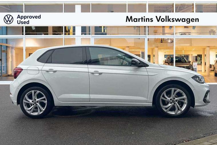Adaptive cruise control without follow-to-stop and speed limiter, Bluetooth mobile phone interface, Digital Cockpit Pro with 10.25" Display, Driver alert system, Dynamic road sign display, Emergency call service, Power assisted speed sensitive steering, Preparation for We connect and We connect plus, Speedo and rev counter, electronic odometer, trip, service interval display and fuel gauge, Standard rear axle, Travel Assist - Lane keeping system and traffic jam assist, Travel assist including emergency assist, Trip computer, Warning signal and warning light for front and rear seatbelts not fastened, Washer fluid level indicator, Wireless app connect, Front wheel drive, Rear shock absorpion, Start-stop system with battery regeneration (recuperation - energy recovery during braking), DAB Digital radio, Diversity antenna for FM reception, Front and rear 6 speakers, Automatic dimming interior rear view mirror, Automatic headlights, Body colour door handles, Body coloured bumpers and radiator grille with chrome trims, Chrome plated radiator grille inserts, air vent surrounds and light switch surrounds, Electric front windows, Heat insulating glass in side and rear windows, Heat insulating glass windscreen, LED separate daytime running lights with coming/leaving home function, Power folding adjustable/heated exterior mirrors and front passenger exterior mirror lowering function, Rain sensor, Rear electric windows, Rear fog light, Rear side wing doors, Rear windscreen washer and wiper with interval delay, Third brake light, 12V power socket in centre console, 2 USB-C ports in the front, 2 USB-C charging sockets on the center console in the rear, 3 rear head restraints, 60/40 split folding rear seat and rear seat bench not split, Air care climatronic air conditoning system with active combination filter and 2-zone temperature control, Ambient lighting, Ceramique headliner, Door and side trim panel, Driver and front passenger seat height adjustment, Driver/passenger sunvisors with illuminated vanity mirrors, Front + rear carpet mats, Front centre armrest, Front footwell illumination, Front seat backrest storage pockets, Front sports comfort seats, Handbrake lever handle in leather, Isofix child seat preparation easy-fit (for two outer rear seats, and front passenger seat) compatible with I-size, Leather trimmed gear knob, LED interior light with switch off delay and dimmer, 2 reading lights front and rear, Luggage compartment cover, Luggage compartment floor, Luggage compartment lighting, Lumbar adjustment for front seats, Multifunction steering wheel, Single front passenger seat, Standard pedal cluster, IQ LED matrix headlights pack - Polo, Light and vision pack - Polo, 3 point height adj front seatbelts + pretensioners, 3x3 point rear seatbelts, ABS, Driver and front passenger airbag with front passenger airbag deactivation, Drivers and front passengers safety optimised head restraints, ESC (Electronic stability control) + EDL (Electronic Differntial lock) and ASR (Traction control), Extended and predictive pedestrian/ cyclist protection, Front curtain and side airbags with center airbag, Front disc brakes, Hill hold control, Manual child lock in rear doors, Rear drum brakes, Single tone horn, Tyre pressure loss indicator, Alarm with interior protection, Anti-theft alarm system with interior monitoring, backup horn, and towing protection, Anti-theft wheel bolts, Electronic engine immobiliser, Chrome applications on rotary light, mirror adjustment, window regulator switches, outlet with frame in black, Deep iron gloss decorative inserts in dash and front door panels, Low rolling resistance tyres,