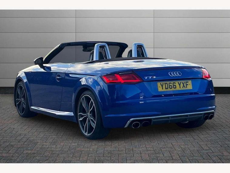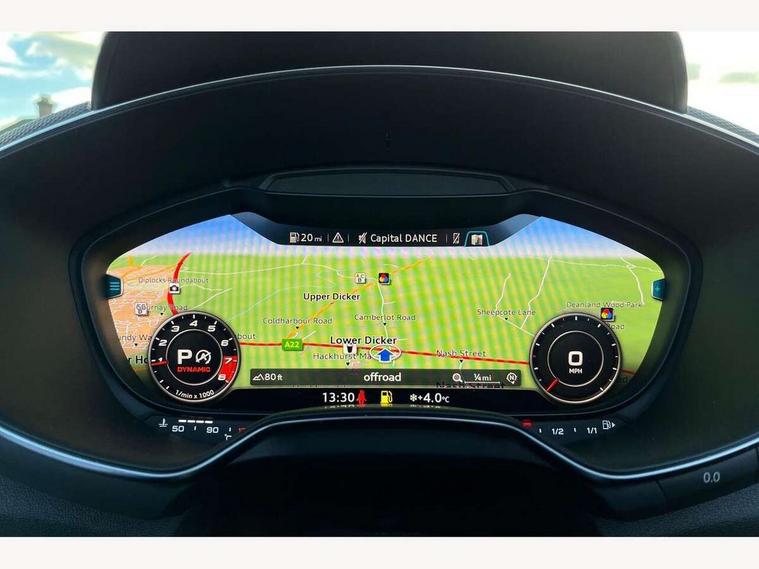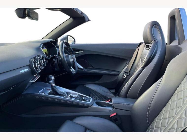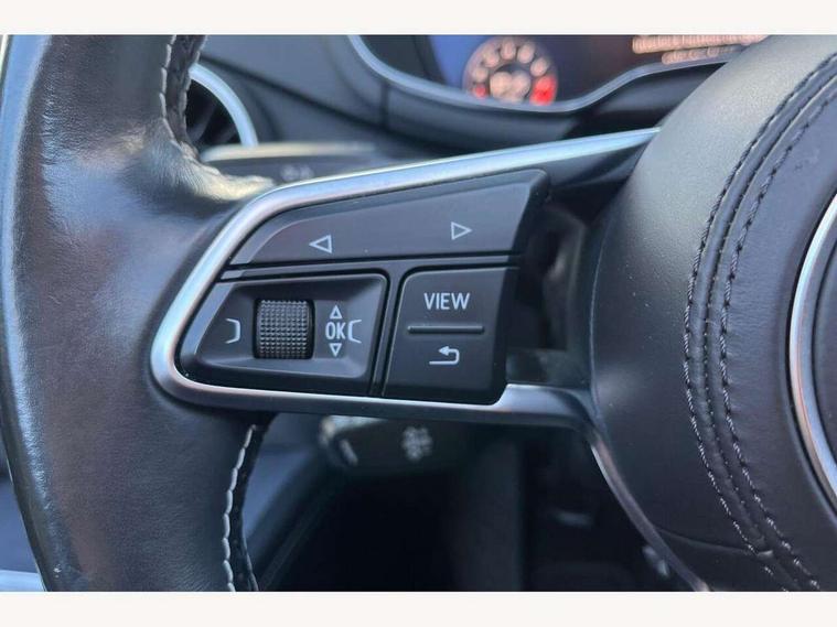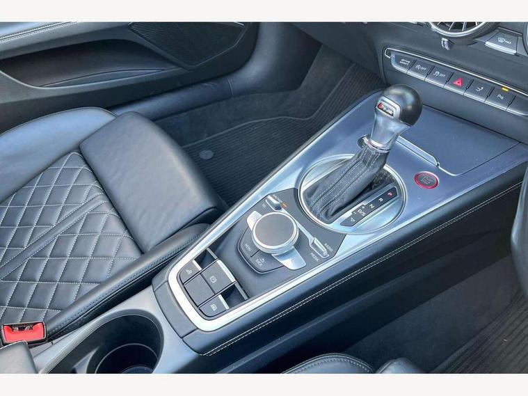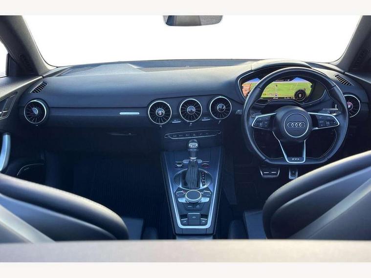 Audi active lane assist, Audi drive select, Audi virtual cockpit - 12.3" high-resolution LCD display with fully customisable instrument cluster, MMI touch panel, Mobile phone preparation with bluetooth interface, Progressive power assisted steering, Seat belt microphone, Service interval indicator, Audi magnetic ride, Audi music interface, Auxiliary input socket, Bluetooth audio streaming, DAB Digital radio, MMI Radio with CD player and SD/XC card slot, Aluminium door mirror housings, Auto headlight range control, Automatic coming/leaving home lighting function, Body colour bumpers, Electric front windows, Fully automatic acoustic hood, Headlight wash system, LED daytime running lights, LED rear lights, Platinum grey front grille, Rain and light sensors, Rear diffuser, Retractable rear boot spoiler, S body styling, Aluminium door sill trims, Black headlining, Contoured 3 spoke flat bottom multi-function leather sport steering wheel/gearshift paddle, Electric lumbar support, Front centre armrest, Front head restraints, Front passenger seat isofix location point, Heated front seats, Height/reach adjust steering wheel, Top tether anchor plate for isofix child seat, LED interior light pack - TT/TT RS, 3 point front seat belts, ABS, ASR traction control, Curtain airbags, Driver/Front Passenger airbags, EDL traction control, Electromechanical parking brake, ESP, First aid kit, Front passenger airbag deactivation, Front side airbags, Roll over bars, Tyre pressure warning, Warning triangle, Anti theft alarm, Immobiliser, Keyless Start, Locking wheel bolts, Remote central locking, Tyre repair kit,