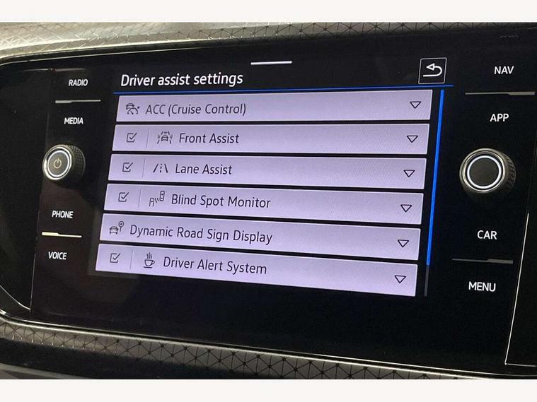 'Lights On' Reminder warning buzzer, 2D/3D map view, Adaptive cruise control including front assist, forward collision warning, autonomous emergency braking, speed limiter, Blind spot monitoring, Bluetooth telephone and audio connection for compatible devices, Car information display, Digital cockpit, Driver alert system, eCall emergency call system, Lane assist, Low washer fluid warning light, Multifunction computer with visual gear change recommendation for fuel consumption, Operating permit alteration, Power assisted speed sensitive steering, Speed limit display, Speedo, rev counter, electronic odometer, trip, service interval display, exterior temperature and fuel gauge, Stop/start system, Tailgate, Warning sound and light for doors and tailgate open, Warning sound and light for front seatbelts unfastened, We connect plus preparation, Wireless Car net app connect with Apple CarPlay, combined functionality of Apple CarPlay/Android Auto and MirrorLink, Battery regeneration during braking, Misfuel prevention device, 2x USB connection with USB charging sockets and in rear centre console, DAB Digital radio receiver, Diversity antenna for FM reception, Multi device interface (MDI) with USB connection, Music playback - MP3, WMA and AAC files, Premium USB cable for Apple or Android smartphone compatibility, Simultaneous pairing of 2 compatible mobile devices, SMS Functionality, Three route options - Fast, Short, Eco, Title and cover art display, Automatic hazard lights activation under emergency braking, Body colour door handles, Body coloured bumpers, Dusk sensor + automatic driving lights, Electrically foldable, adjustable and heated door mirrors with reverse activated kerb view adjustment on passenger's side, Front and rear electric windows, Front fog lights with static cornering function, Galvanised body, Heated rear window, LED third brake light, Lower door sills and door pillars in black, Radiator grille with chrome trim and chrome bezel front fog lamp, Rear fog light on one side, reversing light on both sides, Rear lights incorporating LED technology, Rear side wing doors, Rear window aerial, Rear windscreen washer and wiper with interval delay, Reflectors in all doors, Silver roof rails, Tailgate with integrated roof spoiler, Windscreen wipers/ intermittent wipe + 4 position delay, 12V Accessory socket in centre console, 2 Front and rear reading lights incorporating LED technology, 2 Zone electronic climate control with automatic air recirculation, 3 rear head restraints and 3 rear three point seat belts with ECE label, 3 seat bench in 2nd row, 60/40 split folding rear seat backrest, Branded points of interest, Drawer under drivers seat, Driver and front passenger sunvisor with vanity mirror, Driver's sunvisor with ticket holder, Dust and pollen filter, Front + rear carpet mats, Front centre armrest with storage compartment, Front footwell illumination, Front seat back storage pockets, Glovebox, Heating and fresh air system with 4 stage blower, Height/reach adjust steering wheel, Instrument lighting white adjustable panel illumination, Interior light with delay, Isofix child seat preparation for 2 rear child seats, Luggage compartment cover, Luggage compartment lighting, Moveable and foldable Rear bench seat, Storage compartment in drivers and front passengers door, Three spoke multi-function leather trimmed steering wheel and gearknob, 3-point seat belts in front with electric tensioner + height adjustment, Anti-lock Braking System (ABS) with Hydraulic Brake Assist (HBA), Automatic post collision braking system, Driver and front passenger safety-optimised head restraints, Drivers and Front Passengers airbags with front passengers airbag deactivation switch, ESC with EDL, ASR, EDTC and trailer stabilisation function, Front and rear curtain airbags, Front seat side impact airbags, Hill start assist, Pre crash preventive occupant protection, Proactive passenger protection system in combination with front assist, Rear door child safety locks, Rigid safety cell with front and rear crumple zones, Single torn horn, Tyre pressure loss indicator, Volkswagen roadside assistance, Alarm with interior protection and deactivation via infotainment system, Child security locks in rear doors, Electronic engine immobiliser, Remote tailgate unlocking using key fob, Breakdown kit,