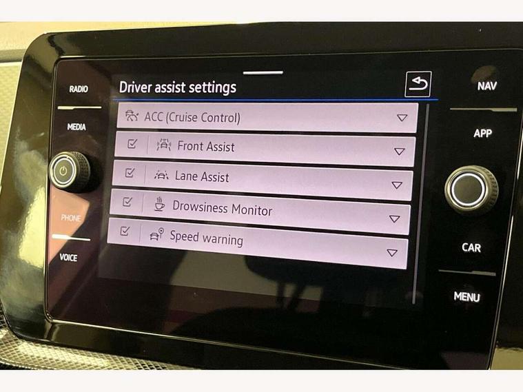 'Lights On' Reminder warning buzzer, Advanced driver attention and drowsiness monitor, Blind spot monitoring, Car information display, Dynamic road sign display, E-Sim card for online connectivity, eCall emergency call system, Front and rear parking sensors, Front assist, forward collision warning, autonomous emergency braking and speed limiter, Low washer fluid warning light, Multifunction computer with visual gear change recommendation for fuel consumption, Multifunction front facing camera for distance control, Operating permit alteration, Power assisted steering, Predictive adaptive cruise control, Preparation for navigation system with media and internet package, Preparation for We connect and We connect plus, Rear view camera, Semi-automated driving assistance, travel assist including lane keeping system Lane Assist and emergency assisst, Speedo, rev counter, electronic odometer, trip, service interval display, exterior temperature and fuel gauge, Warning sound and light for doors and tailgate open, Warning sound and light for front seatbelts unfastened, Wireless Car net app connect with Apple CarPlay, combined functionality of Apple CarPlay/Android Auto and MirrorLink, Wireless charging, Misfuel prevention device, Start-stop system with battery regeneration (recuperation - energy recovery during braking), 2 USB C ports in front, 2 USB charging sockets on the centre console in the rear charging capacity upto 45W, Diversity antenna for FM reception, Music playback - MP3, WMA and AAC files, Radio, Automatic dimming interior rear view mirror, Automatic hazard lights activation under emergency braking, Automatic headlight control with LED separate daytime running light and coming home and leaving home feature, Black roof rails, Body colour door handles, Body colour door mirrors, Body coloured bumpers, Dynamic headlight range control with self adjusting whilst driving, Electric folding door mirror, adjustable, heated with front passenger exterior mirror lowering function, Exterior mirrors convex on the left and aspherical on the right, Front and rear electric windows, Galvanised body, Heat insulating and laminated safety glass windshield, Heat insulating darkened glass in side and rear windows, High Beam Assist, automatic sensing for switching between dipped and main beam, LED Headlights, LED rear combination lights, LED third brake light, Lower door sills and door pillars in black, Rain sensor, Rear fog light on one side, reversing light on both sides, Rear side wing doors, Rear window aerial, Rear window wiper with intermittent control, Reflectors in all doors, Scuff plates, Tailgate with integrated roof spoiler, 12V Accessory socket in centre console, 3 rear head restraints, 3 seat bench in 2nd row, 60/40 split folding rear seat backrest, Ambient lighting and logo projection, Ceramique roof lining, Cloth upholstery, Door and side trim panel, Drawer under drivers seat, Driver and front passenger sunvisor with vanity mirror, Dust and pollen filter, Front and rear reading lights X 2, Front centre armrest with storage compartment, Front seat back storage pockets, Glove compartment door with light, Heating and fresh air system with 4 stage blower, Height/reach adjust steering wheel, Instrument lighting white adjustable panel illumination, Interior light with switch off delay and dimmer, Isofix anchors for child seats on outer rear seats and front passenger seats, Leather gearshift handle, Leather wrapped multifunction steering wheel, Luggage compartment floor, Luggage compartment lighting, Manual front seats with height adjustment, Padded dashboard, Removable luggage compartment cover, Single front passenger seat, Storage compartment in drivers and front passengers door, Unsplit sliding rear seat bench, 3 point outer rear seat belts with ECE label, 3 Point seatbelt for centre rear seat, Anti-lock Braking System (ABS) with Hydraulic Brake Assist (HBA), Automatic post collision braking system, Disc brakes in front, Driver and front passenger safety-optimised head restraints, Drivers and Front Passengers airbags with front passengers airbag deactivation switch, Drum brakes in rear, ESC with EDL and ASR (traction control), Extended and predictive pedestrian/cyclist protection, Front and rear passenger curtain airbag system including front side airbags, Height adjustable front 3 point seatbelts + pretensioners, Hill start assist, Pre crash preventive occupant protection, Proactive passenger protection system in combination with front assist, Rear door child safety locks, Rigid safety cell with front and rear crumple zones, Single tone horn, Tyre pressure loss indicator, Volkswagen roadside assistance, Alarm with interior protection, Anti theft alarm system, Electronic engine immobiliser, Remote keyless entry using key fob including Start/Stop button on centre console with SAFELOCK, Remote tailgate unlocking using key fob, Low rolling resistance tyres,