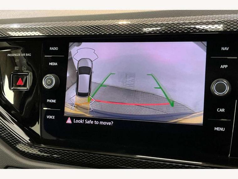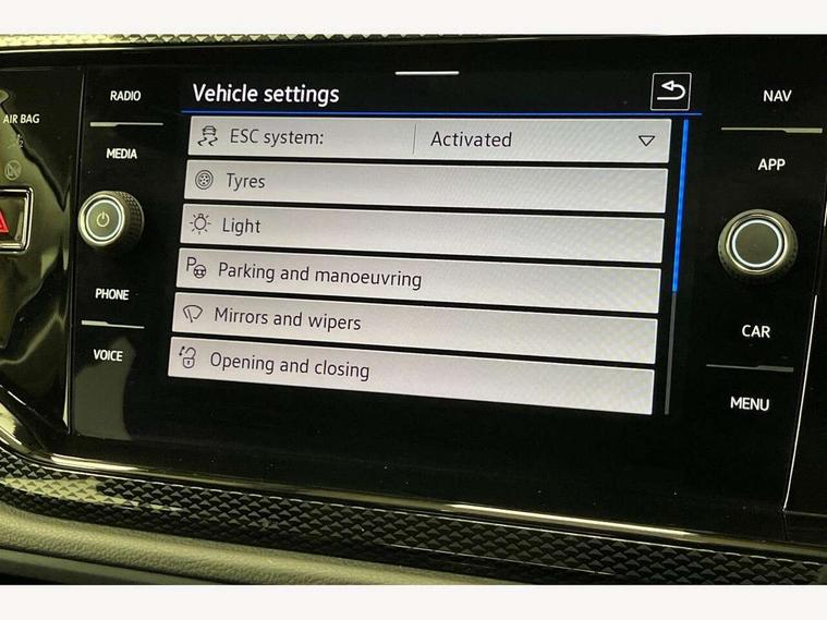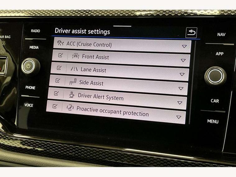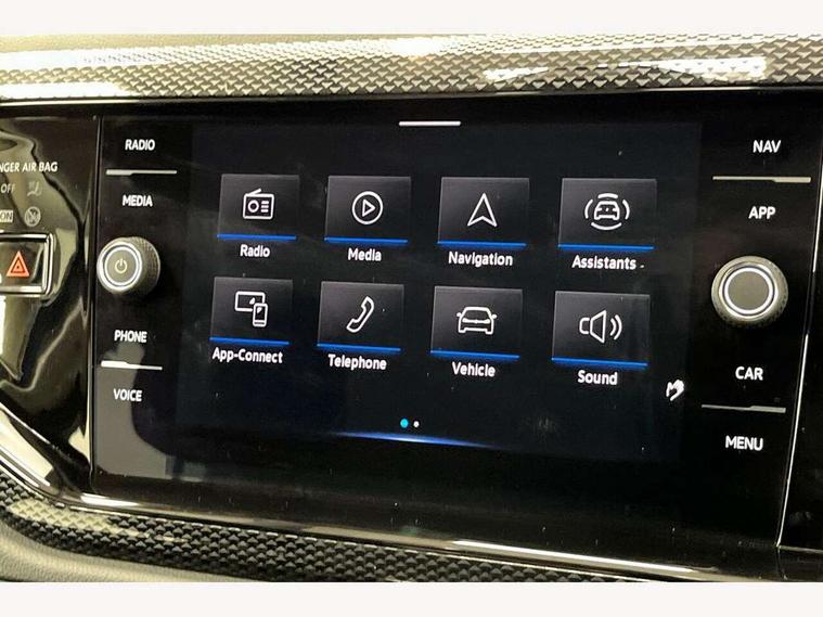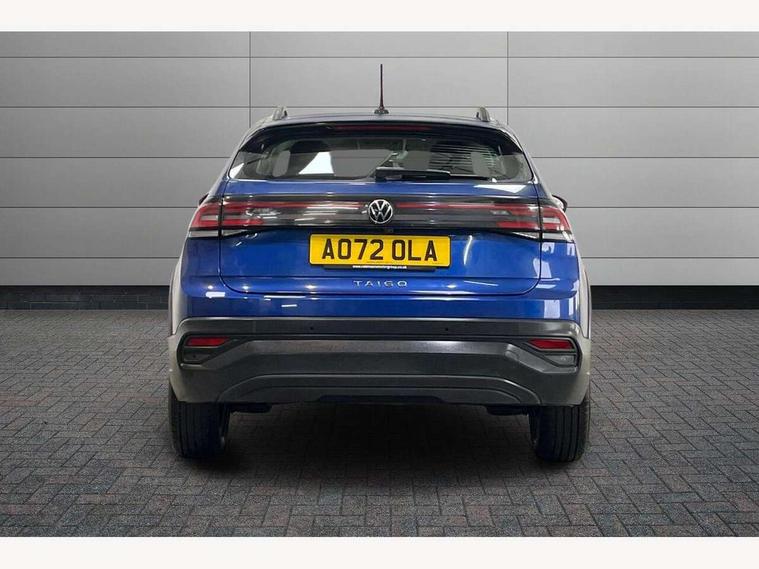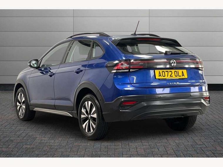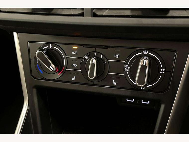 Driver alert system, e-Call (emergency call), Power Steering, Travel assist including emergency assist, Washer fluid level indicator, Wireless Charging including Bluetooth, Start-stop system with battery regeneration (recuperation - energy recovery during braking), WeConnect plus, Ambient lighting with logo projection, Aspherical driver's exterior mirror, Auto headlights, Body coloured bumpers, Body coloured exterior mirror housings and door handles, Electric windows, External USB type C socket and charging sockets, Front fog lamps with cornering function, Headlight range control, Heat insulating glass windscreen, LED headlamps, LED rear combination lamp, LED third brake light, Left convex exterior mirror, Power folding adjustable/heated exterior mirrors and front passenger exterior mirror lowering function, Rear fog light on one side, reversing light on both sides, Rear side wing doors, Rear wash/wipe with intermittent wipe setting, 'Slash/ Austin' Cloth upholstery, 12V socket in centre console, 2 front reading lights, 3 rear head restraints, 3 seat bench in 2nd row, Black carpets, Child seat anchor for child seat system i-Size, 2x top tether and child seat anchor in front on front passenger side, Door and side trim panels in titan black, Driver and front passenger seat height adjustment, Front centre armrest, Handbrake lever handle in leather, Height and reach adjustable steering wheel, Leather trimmed gear knob, Leather wrapped multifunction steering wheel, Luggage compartment floor, Luggage compartment light, Lumbar support for driver's and front passengers seat, Seat covers in titanium black, Single front passenger seat, Split folding backrest with centre armrest and unsplit rear seat bench, Storage compartment under front seats, Sun visors with illuminated vanity mirrors, Chrome Package - Taigo, Drivers assistance pack - Taigo, Light and Sight pack including High beam assist - Taigo, 2 x 3-point seatbelts/outer rear seats with ECE label, 3-point seat belts in front with pretensioner and height adjustment, 3-point seatbelt for centre rear seat, Driver and front passenger airbags with front passenger airbag de-activation, front side and curtain airbags, Driver and front passenger safety-optimised head restraints, Electronic stability control, Extended and predictive pedestrian/ cyclist protection, Front and rear disc brakes, Front curtain and side airbags with center airbag, Hill start assist, Manual rear child locks, Single tone horn, Tyre pressure loss indicator, Anti-theft alarm system with interior monitoring, backup horn, and towing protection, Anti-theft wheel bolts, Lava stone black gloss/matt decorative inserts in dash and front door panels, Low rolling resistance tyres,