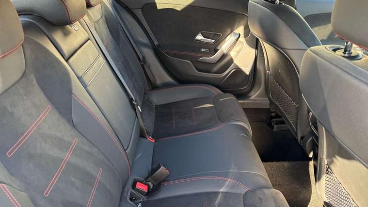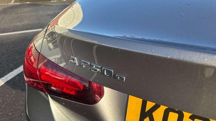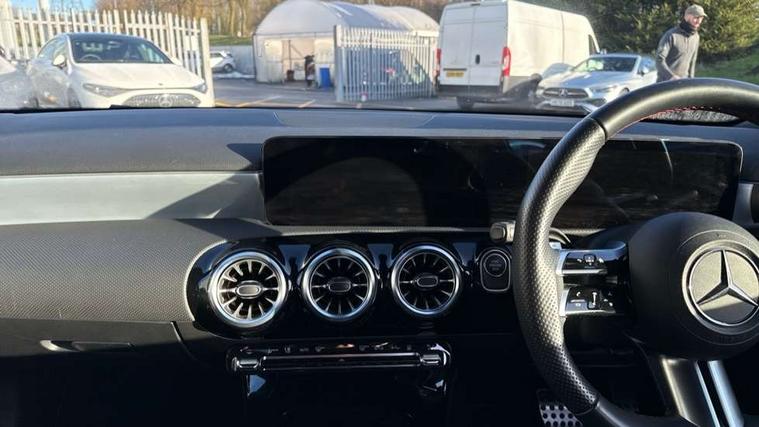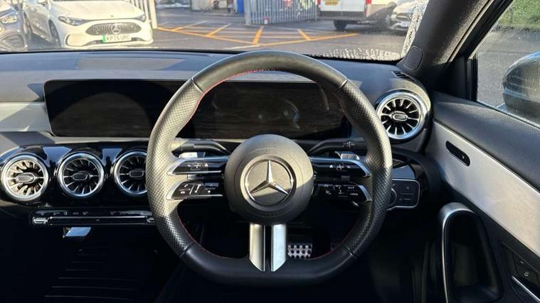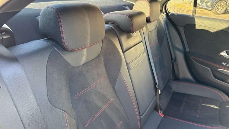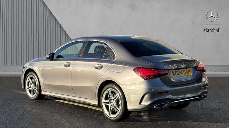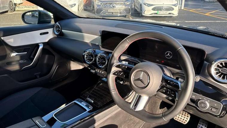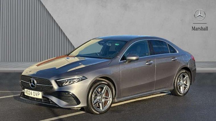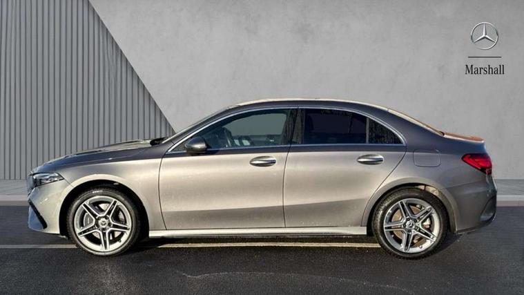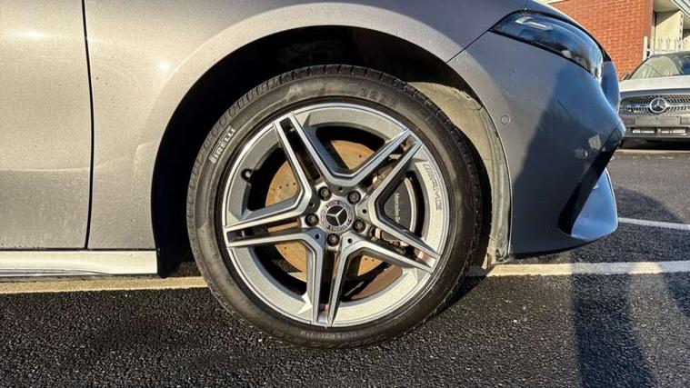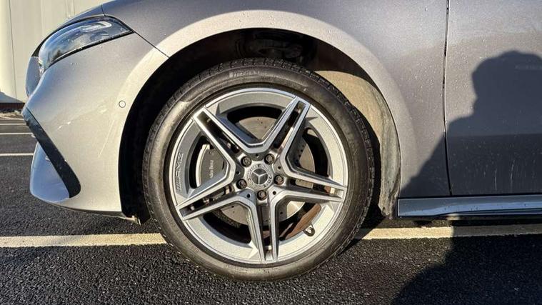 10.25 inch touchscreen central media display, 10.25" Digital instrument cluster display screen, Acoustic ambient protection, Attention assist, Brake pad wear indicator warning light, Car wash mode, Cruise control + speed limiter, Direct steering, Direction indicators with lane change function, Dual bluetooth interfaces, DYNAMIC SELECT with a choice of driving modes (ECO, Comfort, Sport and Individual), ECO start/stop function, Engine start/stop button, Fluid level warning indicator for fuel, oil, coolant and washer fluid, Fluorescent jacket for driver, Hard-disk navigation, Hey Mercedes Voice activation, Lamp failure indicator, Lane keeping system, Mercedes me connect including emergency call system, accident recovery, breakdown and maintenance management, Mercedes me remote services, Outside temperature gauge, Owners manual in English, Pre-installation of private car share, Preinstallation for Mercedes Benz link, Remote and charging services plus, Remote boot closing, Service indicator (ASSYST), Smartphone integration with Apple CarPlay and Android auto, Speed limit assist, Speed sensitive power steering, Trip computer in multifunction display with current consumption indicator, Wireless charging, Charging system - AC charging system rated at 11kW, Charging system - DC charging system rated at 22 kW, Comfort suspension, Mode 2 charging cable for domestic socket with 5m up to 1.8kW, Mode 3 charging cable for wallbox and public charging stations with 4m upto 22 kW, DAB Digital radio, MBUX multimedia system, Mercedes Benz sound system (100 W) with 6 speakers, 4 Electric Front and Rear windows, Adaptive brake lights, AMG body styling - AMG front apron with front splitter and AMG rear apron and visible exhaust tailpipe trim elements, Body colour bumpers, Body colour door handles with chrome inserts, Body colour side skirt, Body coloured door mirrors, Chrome beltline strips, Diamond radiator grille with pins in fine star pattern, Electric adjustable and heated door mirrors with integrated LED side indicators, Exhaust system with 2 visible tailpipe trim elements and rear apron, Headlamp assist automatic headlamp activation, Heat insulating dark tinted rear and rear side windows, Heated glass rear windscreen + timer control, LED High Performance headlamps including integral LED daytime running lamps and adaptive highbeam assist, LED tail lamp, Privacy glass, Radio aerial, Rain sensing windscreen wipers with two sensitivity settings, Rear boot, Rear fog lights, Rear side wing doors, Third brake light featuring LED technology, Window line trim strip in chrome, 3 seat bench in 2nd row, 3 Spoke flat bottom leather multi function steering wheel with perforated leather in grip area, 4 way lumbar support, 40:20:40 split folding rear seats, Air conditioning - One zone THERMATIC automatic climate control with automatically controlled air distribution, Automatic child seat recognition sensor, Black air vents with surround in silver chrome, Black roof lining, Brushed stainless steel sports pedals with rubber studs, Charging socket, Floor mats with AMG lettering, Front centre armrest with stowage, Front door sills with Mercedes Benz lettering, Front seat backs luggage nets, Front sports seats with adjustable head restraints, Galvanished gear shift paddles on steering wheel, Heated front seats, Height/reach adjustable steering column, Interior lighting - 64 colour Ambient lighting, Interior mirror with reading lamps in black and frameless, Pre-entry climate control, Rear armrest with 2 cupholders, Seat occupancy sensor for front passenger seat, Single front passenger seat, Stowage compartment in centre console with retractable cover, Sunvisors with illuminated vanity mirrors, Twin front cupholders, Keyless go comfort pack - A Class, Light and sight pack - A Class, Mirror package - A Class, Parking pack - A Class, Seat comfort pack - A Class, USB pack plus - A Class, 3 rear 3 point seatbelts, ABS with Brake Assist, Active bonnet, Active brake assist includes forward collision warning system with autonomous braking, Adaptive brake assist with hold function and hill start assist, Black seatbelts, Bonnet with power domes, Childproof locks manually operated for rear doors and electrically operated for rear power windows, Crash responsive emergency lighting, Driver and passenger head and side airbags, Drivers knee airbag, Dual stage driver/passenger airbags, Electronic parking brake, ESP curve dynamic assist, ESP with ASR, Front and rear seatbelt reminder, ISOFIX and top tether child seat fixing points in two outer rear seats, Perforated front brake discs, Radar based regeneration, Tyre pressure monitoring system, Warning triangle and first aid kit, Window airbags, Alarm system/interior protection/immobiliser, Guard 360 degree vehicle protection, Remote central locking and crash sensor with emergency opening function, Light longitudinal grain aluminium trim, 18" AMG 5 twin spoke light alloy wheels, aerodynamically optimised, painted in termolite grey with high sheen finish, Summer tyres, Tirefit sealant kit,