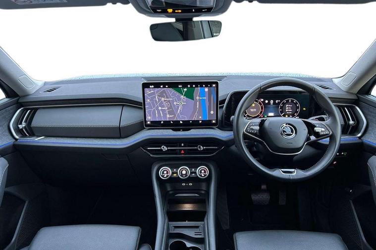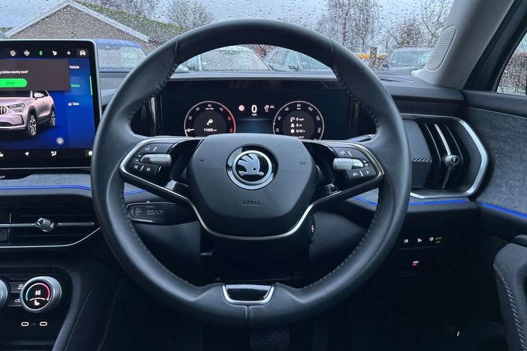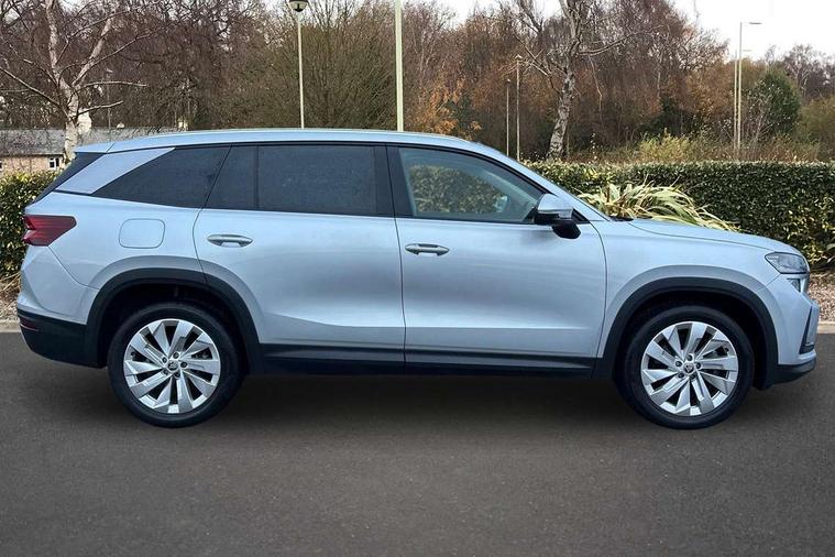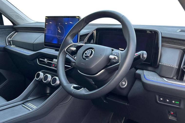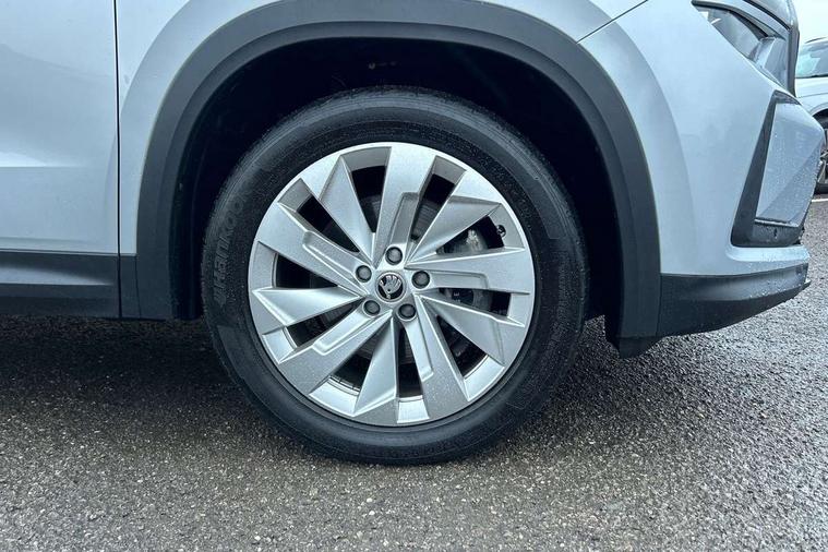 13" satellite navigation touchscreen display, Blind spot detection with door exit warning, Bluetooth system, Drive mode selector, Driver alert with fatigue sensor, Driver drowsiness alert system, Dry display cleaner, e call+, Front cross traffic assist, Lane assist, PAS, Rear traffic assist, Tailgate unlocking from outside, Traffic sign recognition, USB C Port x 2 in front centre console, Virtual Cockpit - 10.25" digital display, Voice control system, Wireless charging for two smartphones (15W) with cooling function, Wireless SmartLink for Apple CarPlay and Android Auto, Stop/start function, 2x USB-C in the rear, DAB Digital radio, Aero front windscreen wipers with intermittent function, Auto dimming rear view mirror, Black wheel arch surrounds, Body colour bumpers, Body colour door mirrors and handles, Cornering light and poor weather light, Electric folding /adjustable/separted heated/folding door mirrors, auto dimming with boarding sports and memory function, Electric front and rear windows, Heat insulating glass in windshield, Heated rear window, Ice scraper in fuel tank cap, Invisible tailpipe, LED daytime running lights, LED rear fog light, LED third brake light in rear spoiler, Light assistant with automatic headlight control and coming home feature, Logo projection in door mirrors, Privacy glass, Rear side wing doors, Rear spoiler, Rear window wiper, Safety reflectors on front and rear doors, Window control switches with black trim, Windscreen wipers with rain sensor, Without engine designation, 1.5l bottle holder points in all door, 12V socket in boot, 1x centre rear reading light, 2 seat bench in 3rd row, 3 configurable smart dials with 32mm coloured display, 3 seat bench in 2nd row, 4 foldable roof handles with rear coat hooks, Automatic gear selector on steering wheel, Chrome interior door handles, Driver/front passenger reading lights, Fabric headlining, Fixed bench 40:60:40 split folding backrests, Front and rear floor mats, Front centre armrest with jumbo box storage compartment, cup holder and 12V socket, Front courtesy lights, Height adjustable front headrests, Interior ambient lighting, Isofix child seat fittings in outer rear seats and front passenger with top tether, Manually adjustable steering column, Pollen filter, Rear centre armrest with cupholders, Rear seat boot backrest release, Retractable luggage compartment cover, Single front passenger seat, Sliding trunk cover, Small Bags on the inner sides of the front backrests, Storage pocket including mobile phone pockets on the backs of the front seats, Sunvisors with illuminated vanity mirrors, Three rear height adjustable headrests, Ticket holder on A Pillar, Tri zone climate control, Umbrella in door panel x1 made from sustainable materials, Upper and lower glovebox with card holder and coin compartment, USB C port by rear view mirror for charging only (15W), Exterior styling package - Kodiaq, Auto door release and activation of warning lights in the event of an accident, Driver and front passenger airbag with knee airbag and front passenger airbag deactivation, Electric child locks, Electronic parking brake, ESC (incl. ABS+EMD+MSR+ASR+EDL+HBA+DSR+RBS+ESBS+MCB+TSA+XDS), Front assist with braking reaction to vehicles, pedestrians and cyclists, Front disc brakes, Fuel cut off safety device, Height adjustable front 3 point seatbelts + pretensioners, Hill hold control, Junction assist with automatic emergency braking, Rear disc brakes, Safety vest holder in door, Seat belt reminder for all seats, Three point rear seat belts, Two tone horn, Tyre pressure monitor, Anti-theft wheel bolts, Immobiliser, Remote central locking with 2 keys, Black/grey fabric with green cross stitching on dashboard, Swan feathers grey dashboard and door decorative inserts, Breakdown kit,
