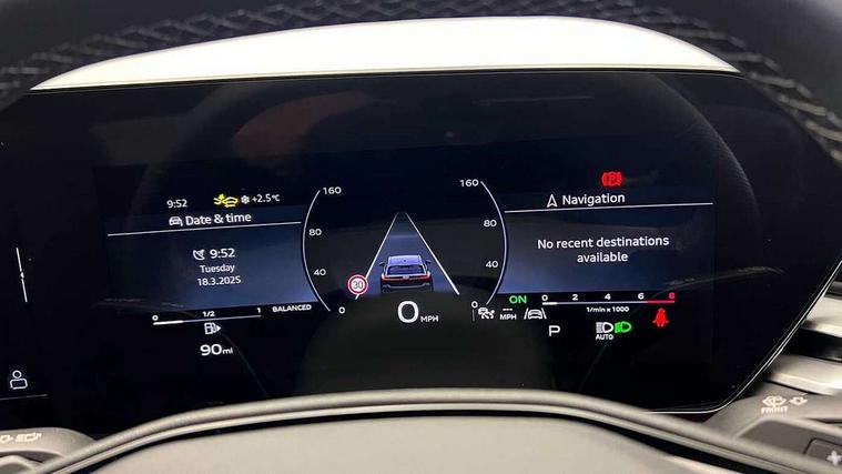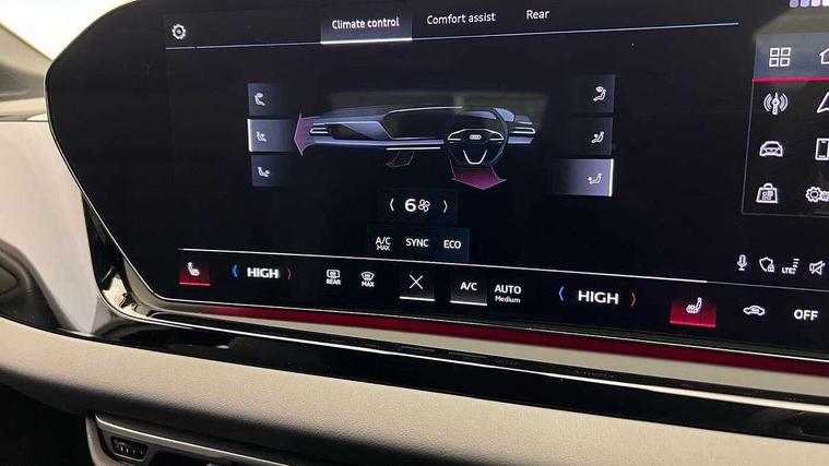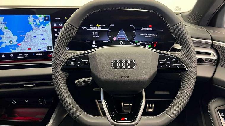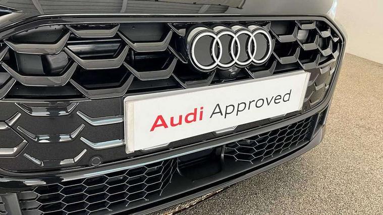 Adaptive cruise control, Advanced driver attention and fatigue montior, Audi application store, Audi assistant, Audi connect emergency call and service, Audi drive select, Audi smartphone interface, Audi virtual cockpit plus with 11.9" OLED colour display, Automatic start/stop system with coasting functionality, Camera based traffic sign recognition, Intersection assist, Lane departure warning, MMI navigation plus with high resolution 14.5" OLED touchscreen colour display, Park assist plus, Parking system plus with 360 display, Progressive steering with servotronic, Rear view camera, Swerve assist and turn assist, Traffic sign based speed limiter, Sports suspension lowered by 20mm, 2 USB-C ports in both the front and rear, Audi sound system impressive sound with 10 loudspeakers including centre speaker and subwoofer, 6-channel amplifier with a total output of 180 watts, DAB digital radio reception, Smartphone compartment with wireless charging, Aluminium roof rails, Aluminium window trims, Auto dimming rear view mirror, Body colour door mirrors, Door mirrors - electrically adjustable, heated, folding and auto dimming on both sides, Front and rear electric windows, Front door sill trims with aluminium inlays, illuminated with 'S' logo, High beam assist, LED headlights Plus incl. digital daytime running lights, turning light, all-weather light, motorway light, manouevring light and intersection light, LED rear lights pro incl. dynamic rear indicators and illuminated light strip with animated coming and leaving home function, LED third brake light, Privacy glass, Rear and side windows with heat insulating glass, Rear side wing doors, Rear wash/wipe, S Line badges on the front wings, S line bumpers, radiator grille and diffuser in phantom black and diffuser insert in matt anthracite, White rhombus logo projection light in exterior mirrors, Windscreen with acoustic glazing, 3 rear headrests, 3 seat rear bench, 3 spoke leather steering wheel with multi-function buttons with touch control, flattened on top and bottom, with S badging and contrast stitching, 3-zone automatic climate control, 40:20:40 split folding rear seat bench with centre armrest and cup holders, Comfort front centre armrest, Front and rear floor mats, Front seats with manual adjustment for position and 4-way electric lumbar support, Front sport seats with integrated headrest and S embossed logo, Headlining in black cloth, Heated front seats, i-Size child seat mounting on the front passenger side and i-Size and top tether on the outer rear seats, Luggage compartment lid, electrically opening and closing, Manual steering column height and depth adjustment, Single front passenger seat, Stainless steel pedals and footrest, Steering wheel grips in perforated leather and shift paddles, Ambient lighting package plus - A5, 3x3 point rear seat belts, Driver airbag, Electric child safety locks, First aid kit with warning triangle and vests, Front emergency brake assist, Front passenger airbag, Front passenger airbag deactivation, Front side airbags with head airbag system and front interaction airbag, Hill hold assist, Seat belt monitoring with rear seat occupant reminder, Tyre pressure loss indicator, Anti theft alarm, Anti-theft wheel bolts, Keyless Go, Accent surfaces and control buttons in gloss black, Black dashboard with contrast stitching, Inlays in matt brushed aluminium with linear embossing, anthracite, Softwrap in leatherette with contrast stitching, Upper and lower interior elements in leatherette, Tyre repair kit,