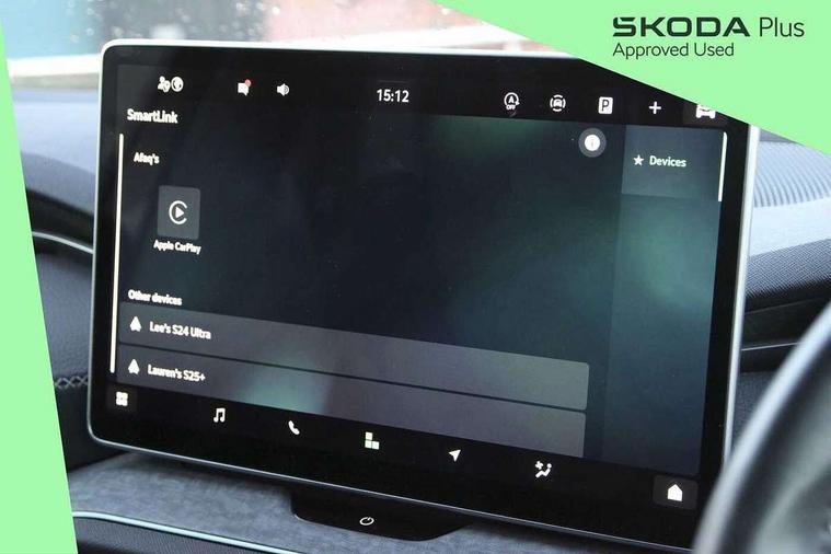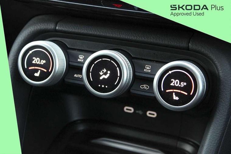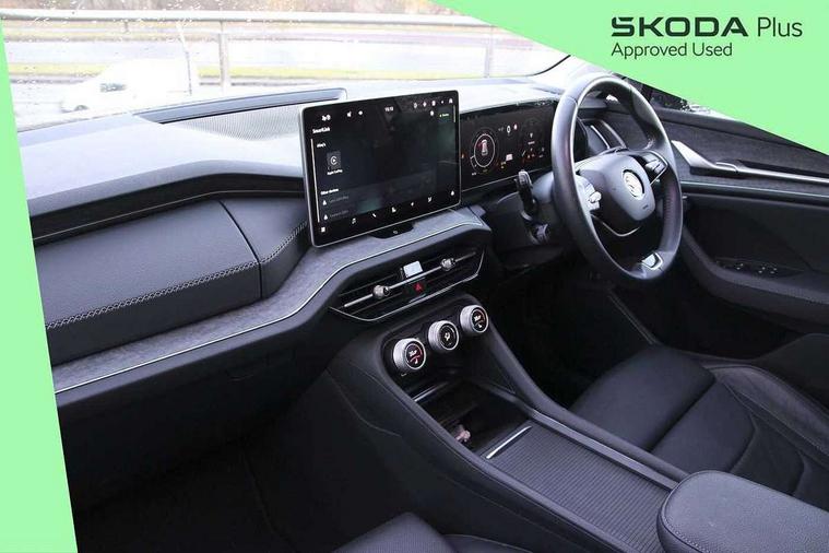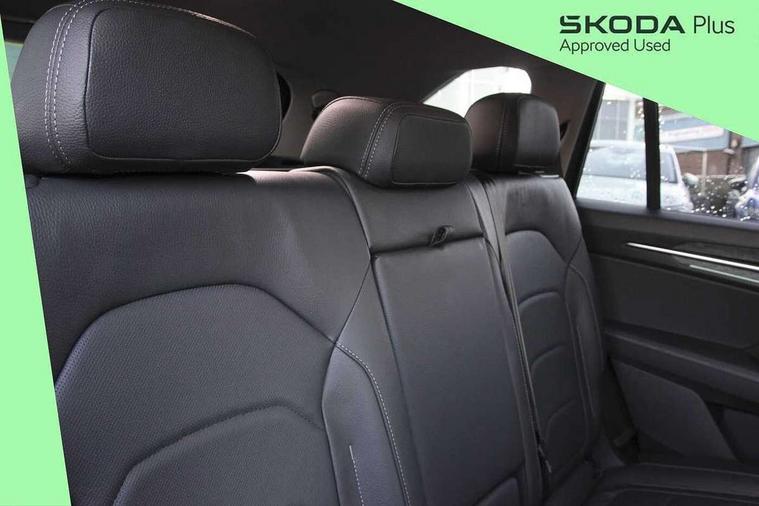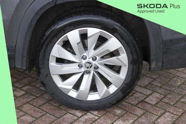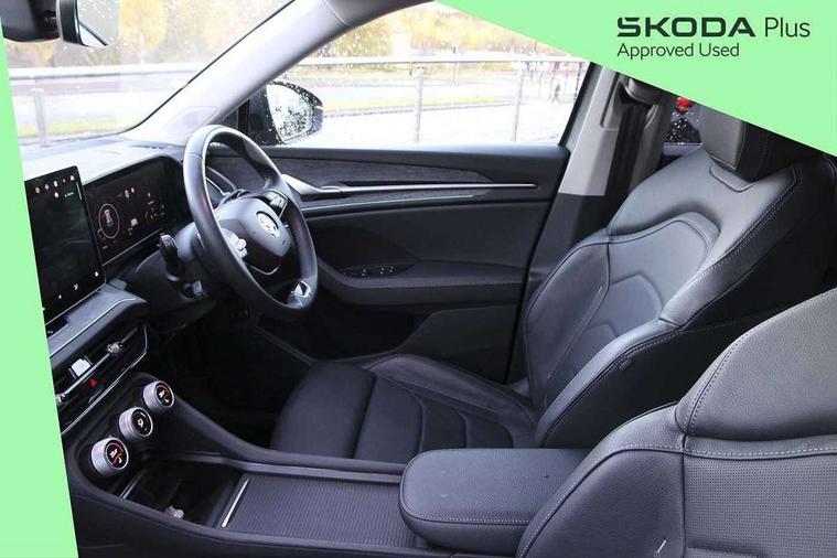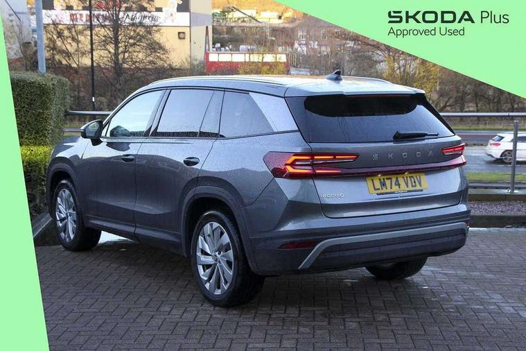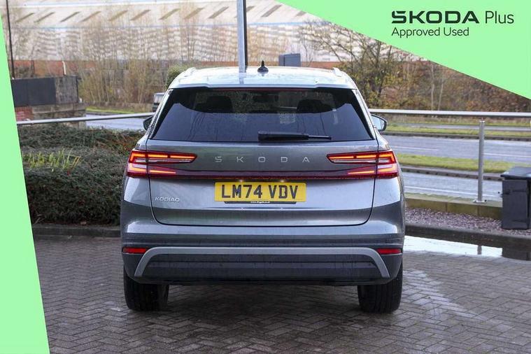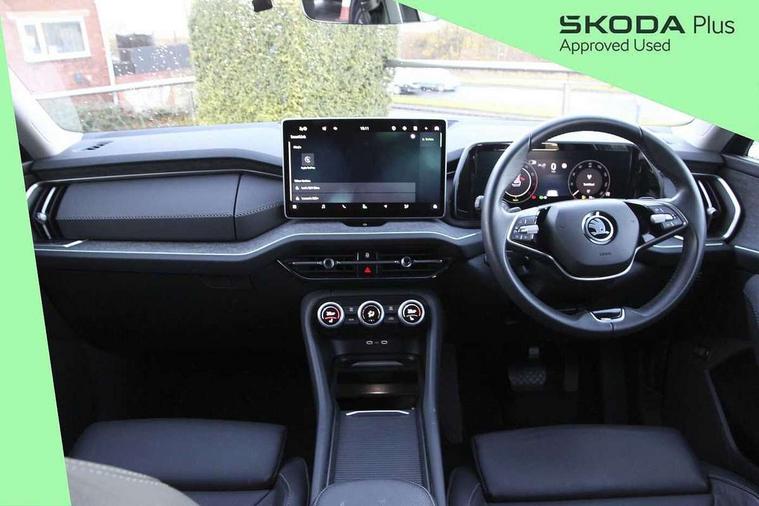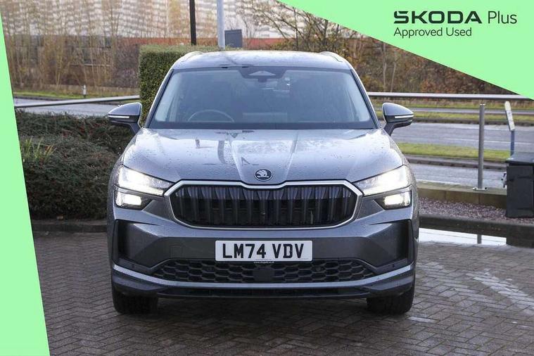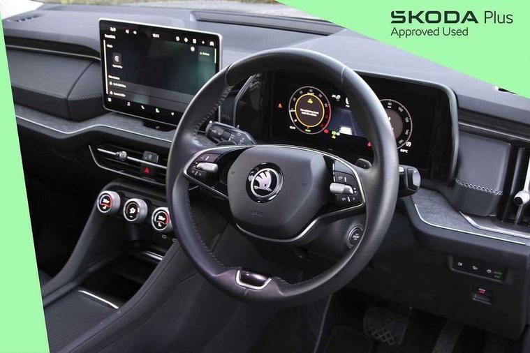 13" satellite navigation touchscreen display, Blind spot detection with door exit warning, Bluetooth system, ChatGPT functionality, Drive mode selector, Driver alert with fatigue sensor, Driver drowsiness alert system, Dry display cleaner, e call+, Front cross traffic assist, Lane assist, PAS, Rear traffic assist, Tailgate unlocking from outside, Traffic sign recognition, USB C Port x 2 in front centre console, Virtual Cockpit - 10.25" digital display, Voice control system, Wireless charging for two smartphones (15W) with cooling function, Wireless SmartLink for Apple CarPlay and Android Auto, Stop/start function, 2x USB-C in the rear, DAB Digital radio, Aero front windscreen wipers with intermittent function, Auto dimming rear view mirror, AWL (all weather lighting) and all weather light with cornering function, Black wheel arch surrounds, Body colour bumpers, Body colour door mirrors and handles, Cornering light and poor weather light, Electric folding /adjustable/separted heated/folding door mirrors, auto dimming with boarding sports and memory function, Electric front and rear windows, Exterior black decorative trims, Heat insulating glass in windshield, Heated rear window, Ice scraper in fuel tank cap, Invisible tailpipe, LED daytime running lights, LED third brake light in rear spoiler, Light assistant with automatic headlight control and coming home feature, Logo projection in door mirrors, Privacy glass, Rear side wing doors, Rear spoiler, Rear window wiper, Red decorative strip between rear LED lights, Safety reflectors on front and rear doors, Unique dark chrome design logo on alloy wheels, Window control switches with black trim, Windscreen wipers with rain sensor, Without engine designation, 1.5l bottle holder points in all door, 12V socket in boot, 1x centre rear reading light, 2 seat bench in 3rd row, 3 configurable smart dials with 32mm coloured display, 3 seat bench in 2nd row, 4 foldable roof handles with rear coat hooks, Ambient interior lighting - Dashboard, front-door stowage compartments, front and rear door panels and footwell lighting, Automatic gear selector on steering wheel, Chrome interior door handles, Driver/front passenger reading lights, Fabric headlining, Fixed bench 40:60:40 split folding backrests, Front and rear floor mats, Front centre armrest with jumbo box storage compartment, cup holder and 12V socket, Front courtesy lights, Height adjustable front headrests, Isofix child seat fittings in outer middle row rear seats and front passenger with top tether, Manually adjustable steering column, Pollen filter, Rear centre armrest with cupholders, Rear seat boot backrest release, Retractable luggage compartment cover, Single front passenger seat, Skoda lettering on steering wheel, Sliding trunk cover, Small Bags on the inner sides of the front backrests, Storage pocket including mobile phone pockets on the backs of the front seats, Sunvisors with illuminated vanity mirrors, Three rear height adjustable headrests, Ticket holder on A Pillar, Tri zone climate control, Umbrella in door panel x1 made from sustainable materials, Upper and lower glovebox with card holder and coin compartment, USB C port by rear view mirror for charging only (15W), Exterior styling pack - Kodiaq, Auto door release and activation of warning lights in the event of an accident, Driver and front passenger airbag with knee airbag and front passenger airbag deactivation, Electric child locks, Electronic parking brake, ESC (incl. ABS+EMD+MSR+ASR+EDL+HBA+DSR+RBS+ESBS+MCB+TSA+XDS), Front assist with braking reaction to vehicles, pedestrians and cyclists, Front disc brakes, Fuel cut off safety device, Height adjustable front 3 point seatbelts + pretensioners, Hill hold control, Junction assist with automatic emergency braking, Rear disc brakes, Safety vest holder in door, Seat belt reminder for all seats, Three point rear seat belts, Two tone horn, Tyre pressure monitor, Anti-theft wheel bolts, Immobiliser, Remote central locking with 2 keys, Breakdown kit,