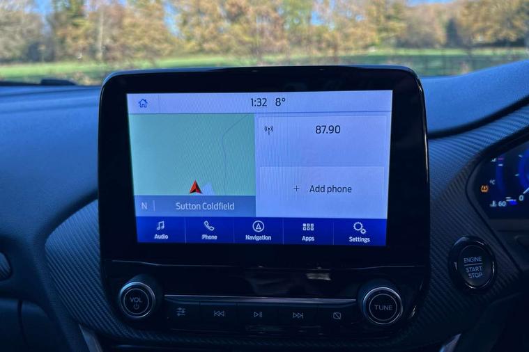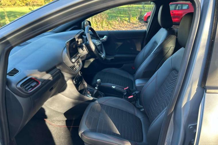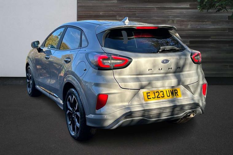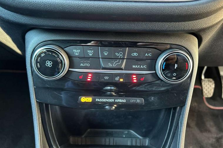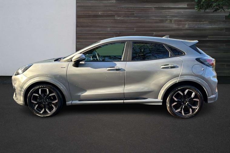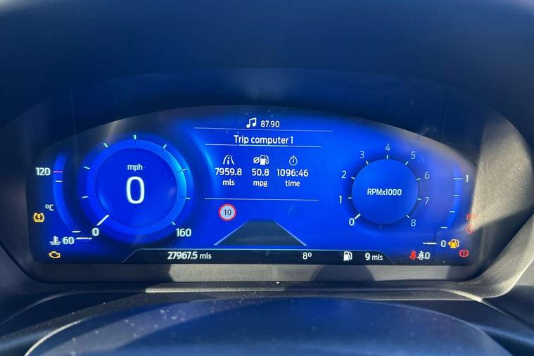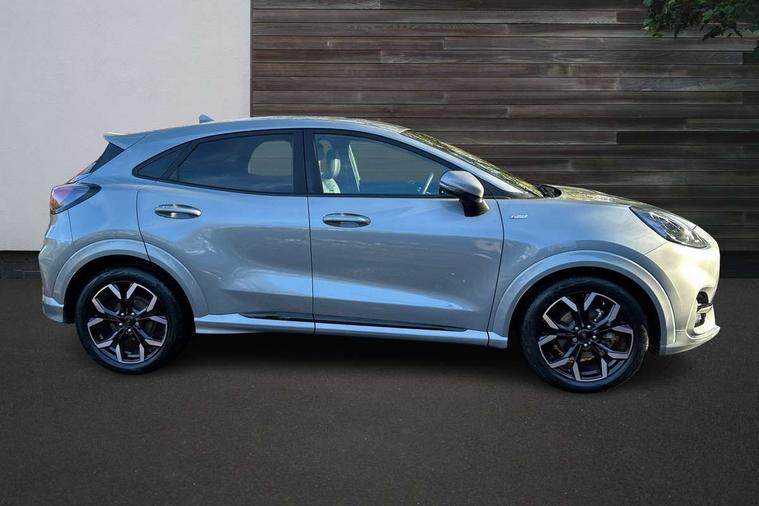 Driver impairment monitor, Emergency call service, Ford easy fuel, Full digital 12.3" instrument cluster, Lane keeping aid with lane departure warning, Power assist steering, Power start button, Rear parking sensor, Selectable drive modes(Normal, sport, Eco, trail, slippery), Speed sign recognition, Sport suspension, Automatic headlights with auto high beam, Automatic rain sensing wipers, Front fog lamps, LED daytime running lights, LED rear lamps, Power foldable heated door mirrors with puddle lamps, Privacy glass to side rear windows and tailgate glass, Quickclear heated windscreen, Rear side wing doors, Rear wiper, ST-Line body styling kit with unique grille and large body colour rear spoiler, Third brake light, 3 seat bench in 2nd row, Centre console with armrest and stowage, Ford megabox extended bootspace, Front and rear head restraints, Front floor mats, Manual 4 way driver seat adjust with lumbar adjustment, Manual 4 way passenger seat with lumbar seat adjustment, Sensico partial premium upholstery, Single front passenger seat, ST-Line flat bottomed sensico leather steering wheel with leather handbrake and aluminium gear knob, Wireless charging pad with electronic air temperature control (EATC), B&O Premium Audio system + Ford SYNC 3 navigation pack - Puma, 3 rear seatbelts, Child safety lock, Electronic stability control (ESC) and hill start assist, Pedestrian/cyclist detection & post-collision braking, Pre collision assist system, Tyre pressure monitoring system (TPMS), Thatcham alarm, Carbon look interior deco spears,