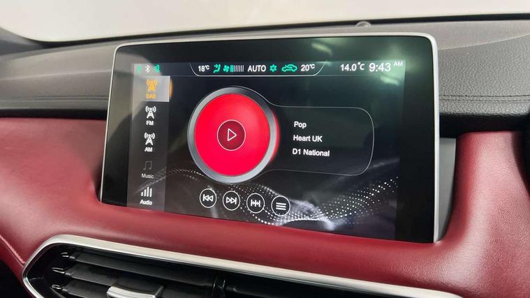 10.1" colour touchscreen, 12.3" Full digital driver information display, Adaptive cruise control, Android Auto, Apple CarPlay, Blind Spot Detection (BAS), Bluetooth connectivity, Driving modes, Emergency call service, Intelligent speed assist, Lane keep assist system (LAS) with Lane departure warning system (LDWS), PAS, Power tailgate, Rear cross traffic alert, Rear parking camera, Rear parking sensors, Satellite navigation system, Traffic jam assist, Trip computer, USB mobile phone charging function, 6 speaker audio system, DAB audio, Auto dimming rear view mirror, Automatic headlights, Body colour electric adjustable heated door mirrors, Electric folding door mirrors, Follow me home headlights, Front and rear aero wiper, Front and rear electric windows with one-touch up/down, Front fog lights, Intelligent high beam, LED Bi-Function headlights, LED centre brake light, LED daytime running lights, LED front and rear sequential indicators, Rain sensing wipers, Rear side wing doors, Silver roof rails, 12V power sockets, 2nd row 60/40 split fold seat, 2nd row seat with 2 stage incline adjustment, 3 rear headrests, 3 seat bench in 2nd row, 4 way electric adjustable passenger seat, 6 way electric adjustable drivers seat + lumbar support, Ambient lighting (adjustable colour), Dual zone automatic air conditioning, Front centre sliding armrest with storage compartment, Front headrests, Heated front seats, Height and reach adjustable steering wheel, ISOFIX restraints on outer rear seats x2, Leather steering wheel, Metal sports pedals, Single passenger seat, Sports Style Front Seats with One-Piece Back, Steering wheel paddle shift, 3x3 point rear seatbelts, ABS/EBD, Active emergency braking with pedestrian/Bicycle detection, Anti rolling protection, Cornering brake control (CBC), Drivers seatbelt reminder, Dual front airbags, Electric parking brake with auto hold function, ESP, Front and rear passenger seat belt reminder, Front passenger airbag deactivation switch, Front seat belt height adjuster, Front seatbelts (3-point + pretensioner + load limiter), Front side airbags, Hill descent control, Hill launch assist, Manual rear child locks, Rear outer seatbelt pretensioner and load limiter, Side curtain airbags, Tyre pressure monitoring system, Alarm system and engine immobiliser, Keyless entry and push button start system, Remote central locking, Speed sensing door locks, 18" Hurricane diamond cut alloy wheels, Tyre repair kit,