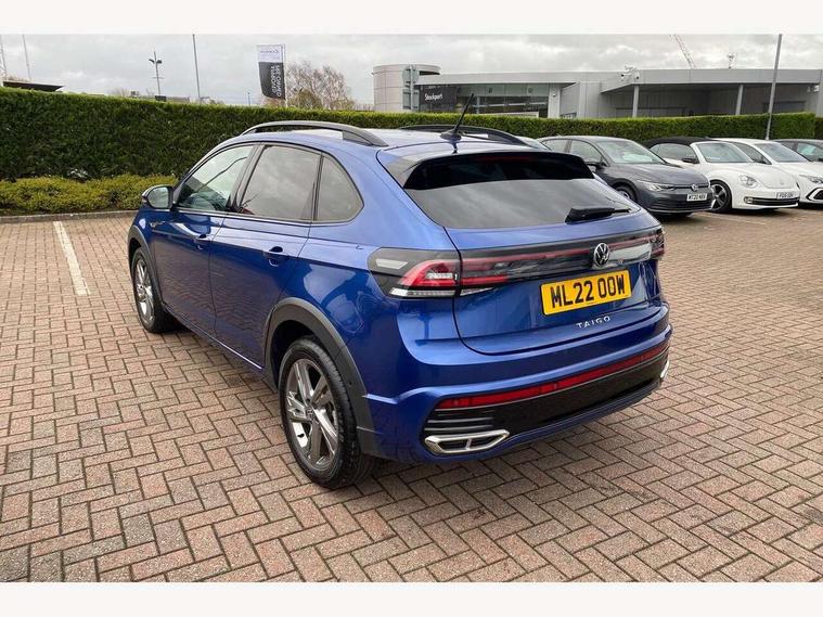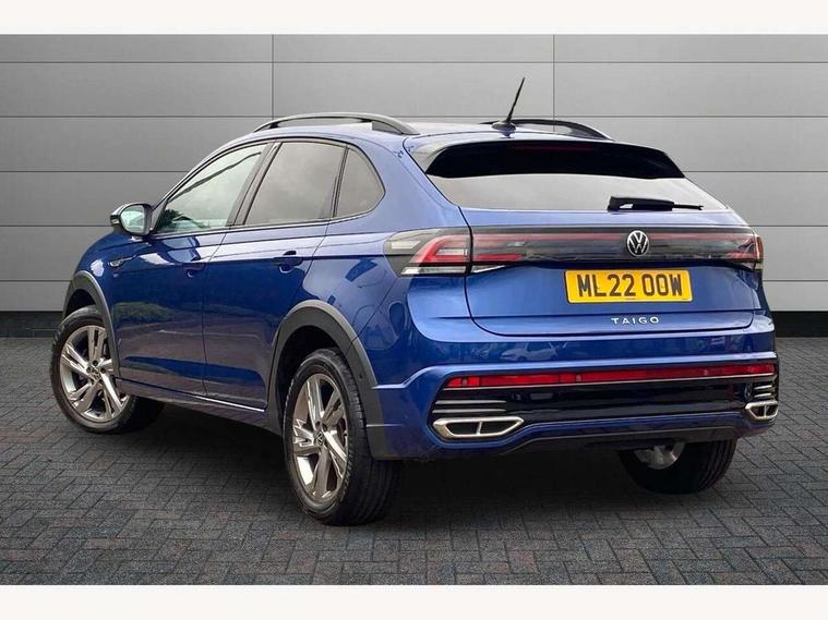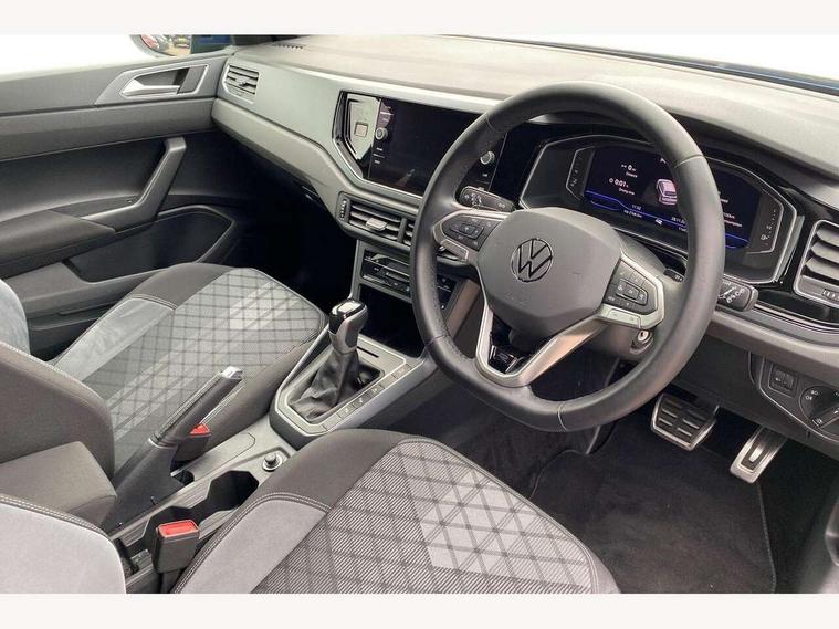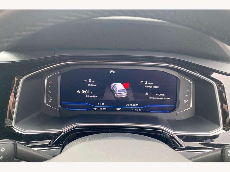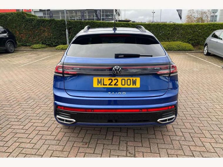 Adaptive cruise control, App-Connect including App-Connect Wireless, Digital cockpit pro - 10.25" high resolution TFT dash display screen with customizable menus and information, Driver alert system, Driving profile selection, e-Call (emergency call), Power Steering, Travel assist including emergency assist, Washer fluid level indicator, Wireless Charging including Bluetooth, Start-stop system with battery regeneration (recuperation - energy recovery during braking), XDS electronic differential lock for improved traction and handling, Digital radio reception (DAB+), Diversity antenna for FM reception, WeConnect plus, Ambient lighting with logo projection, Aspherical driver's exterior mirror, Body coloured bumpers, Body coloured exterior mirror housings and door handles, Bumpers in R-Line style, Electric windows, External USB type C socket and charging sockets, Front fog lamps with cornering function, Front scuff plates with R-Line logo, Headlight range control, LED headlamps, LED rear combination lamp, LED third brake light, Left convex exterior mirror, Power folding adjustable/heated exterior mirrors and front passenger exterior mirror lowering function, Rear fog light on one side, reversing light on both sides, Rear wash/wipe with intermittent wipe setting, 12V socket in centre console, 2 front reading lights, 3 rear head restraints, Air care climatronic air conditoning system with active combination filter and 2-zone temperature control, Black carpets, Black roof lining, Child seat anchor for child seat system i-Size, 2x top tether and child seat anchor in front on front passenger side, Chrome bezel for instrument cluster, vents, door handles + gear shift, Driver and front passenger seat height adjustment, Front + rear carpet mats, Front centre armrest, Front footwell illumination, Front sports comfort seats, Height and reach adjustable steering wheel, Interior ambient lighting and surround lighting, Karoso artvelours cloth upholstery, Leather trimmed gear knob, Leather wrapped multifunction steering wheel, Luggage compartment floor, Luggage compartment light, Lumbar support for driver's and front passengers seat, Seat covers in grey + titanium black, Split folding backrest with centre armrest and unsplit rear seat bench, Stainless steel pedals, Storage compartment under front seats, Sun visors with illuminated vanity mirrors, Chrome Package - Taigo, Drivers assistance pack - Taigo, Light and Sight pack including High beam assist - Taigo, 2 x 3-point seatbelts/outer rear seats with ECE label, 3-point seat belts in front with pretensioner and height adjustment, 3-point seatbelt for centre rear seat, Driver and front passenger airbags with front passenger airbag de-activation, front side and curtain airbags, Driver and front passenger safety-optimised head restraints, Electronic stability control, Extended and predictive pedestrian/ cyclist protection, Front and rear disc brakes, Front curtain and side airbags with center airbag, Hill start assist, Single tone horn, Tyre pressure loss indicator, Anti-theft alarm system with interior monitoring, backup horn, and towing protection, Anti-theft wheel bolts, Grey anodised matte decorative inserts in dash and front door panels, Low rolling resistance tyres,