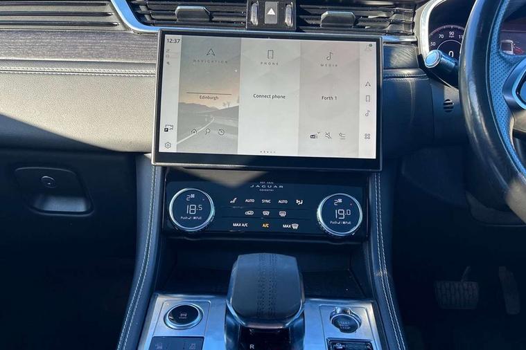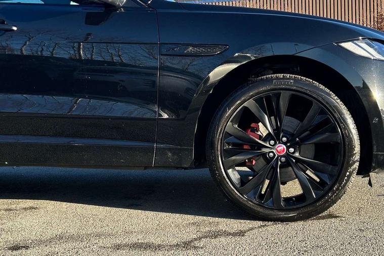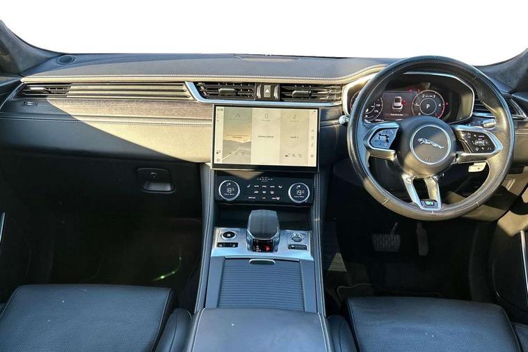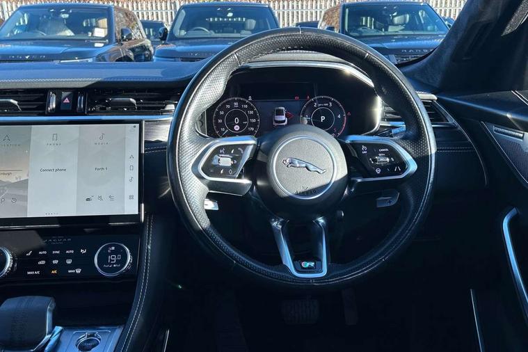11.4" touchscreen, 3D surround camera, Adaptive cruise control, Android Auto, Apple car play, Blind spot assist, Bluetooth connectivity, Clear exit monitor, Driver alert system, Driver condition monitor, Eco driving style assistant, Electric power assisted steering, InControl remote, Interactive Driver display instrument cluster, Jaguar Toggle shift selector, Lane departure warning system, Lane keep assist, Outside temperature gauge, Personalisation profile management, Pivi pro connected navigation system with app interface and media storage, Pro services and wifi hotspot, Push button starter, Rear collision monitor, Rear traffic monitor, Service interval indicator, Speed proportional steering, Start up sequence with movement in dials and lighting, Traffic sign recognition with adaptive speed limiter, Trip computer, Voice control system, 8 speed automatic transmission, Adaptive dynamics, All terrain progress control, All Wheel Drive (AWD), Configurable dynamics, Open differential with torque vectoring by braking, AM/FM radio, Bluetooth streaming, DAB Radio (Digital Audio Broadcasting), Dynamic volume control, InControl apps, InControl protect, iPod integration, 3 flash lane change indicators, Animated directional indicators, Approach Illumination, Auto dimming rear view mirror, Automatic headlights, Body colour door mirrors, Electric heated/power fold memory door mirrors with approach lights and auto dimming driver side, Electric windows with one touch open/close and anti trap, F-Pace badge, Green tinted glass, Heated front windscreen + heated washer jets, Heated rear window with timer, Illuminated metal tread plates with Jaguar script, Jaguar script and leaper, LED tail lights, Non acoustic front windscreen, R Dynamic badge on side door, Rain sensor windscreen wipers, Rear fog lights, Rear metal tread plates, Rear wiper, Trailer stability assist, Variable front intermittent wipers, 12V power point front, 3 rear headrests, Air distribution speed, Cabin lighting, Centre armrest console, Centre console with side storage, Door sill tread plates, Electrically adjustable steering column, Fold flat front seats, Front centre armrest with storage compartment, Front door storage space, Glovebox finisher with jaguar script, Heated steering wheel, Hooks in loadspace, Illuminated glovebox, Interior front door handles with separate locking switches, ISOFIX on outer rear seats, Jaguar sense, Luggage tie downs in loadspace, Mist sensing, Multifunction steering wheel, Overhead lighting console, Overhead stowage for sunglasses, Passive front head restraints, Premium carpet mats, R-Dynamic branded leather steering wheel, Rear air vents, Rear armrest with twin cupholders, Rear centre headrest, Rear door storage space, Reversible boot floor, Satin chrome gearshift paddles, Shopping bag hook, Sunvisors with illuminated vanity mirrors, Twin front cupholders with cover, Online Pack with data plan - F-Pace, 355mm front brakes and 325mm rear brakes, 3x3 point rear seatbelts, ABS, All surface progress control (ASPC), Brake pad warning light, DSC - Dynamic Stability Control, Electric parking brake (EPB), Front airbags with passenger seat occupant detector, Front and rear seatbelt reminder, Front side airbags, Full length side window curtain airbag, Hill launch assist, Power operated child locks, Torque vectoring brake, Traction control, Tyre pressure monitoring system, Immobiliser, Keyless entry, Keyless Start, Locking wheel nuts, Perimeter alarm, Remote central locking, Valet mode,