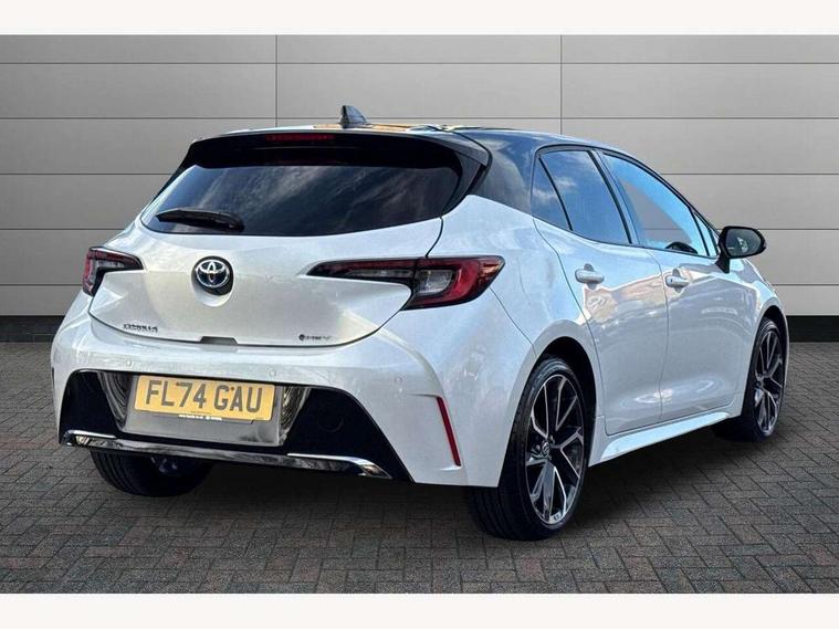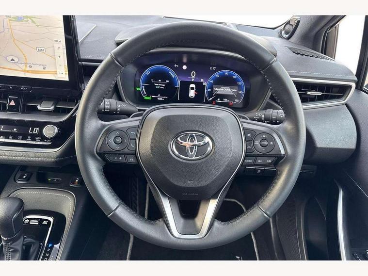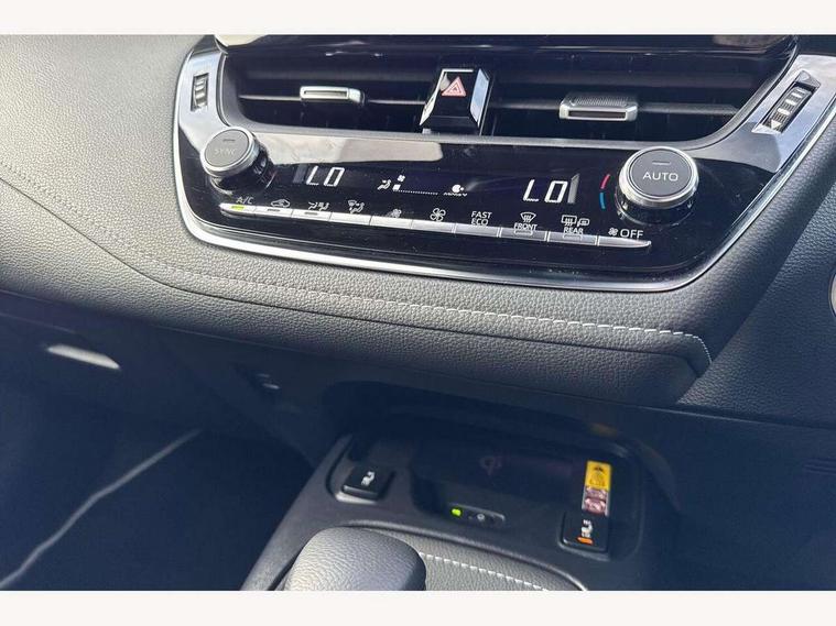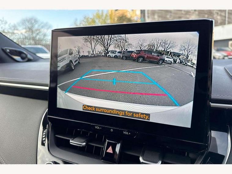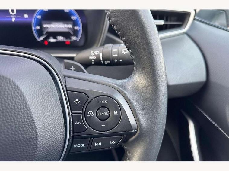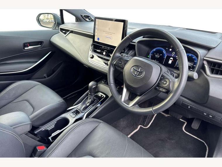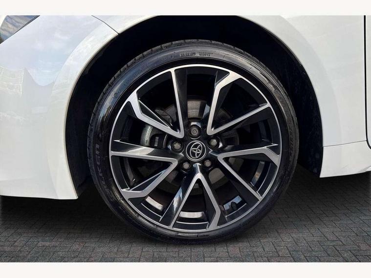 10.5" Multimedia display screen, Blind spot monitor and safe exit assist, Bluetooth telephone connectivity, Connected car functionality upgrade, tracker, remote status and e-care, Drive mode select (Eco, Normal), E-call, Electrically assisted power steering, EV drive indicator, Front and rear parking sensors with auto brake, Full Digital 12.3" TFT Digital Combimeter, Head up Display, Key reminder warning, Lane Departure Alert (LDA) switch on steering wheel, Memory on adjustable speed limiter, MyT connected services, Proactive driving assist (PDA), Rear cross traffic alert, Reversing camera, Smart entry and push button start, Smartphone integration with Apple CarPlay and wired android auto, Tailgate, Toyota remote services, Toyota smart connect navigation, Wireless charger, Gasoline particulate filter, Vehicle Stability Control (VSC), AM/FM radio, DAB Digital radio, Front USB-C in centre console, Front USB-C in dashboard, JBL Premium sound system with 8 speakers, Rear USB-C device charger, Smart voice assist/ Voice recognition, USB and Aux in connectors + 12V front outlet, Adaptive high beam system (AHS), Anti-jam protection on power windows, Auto headlight levelling system, Auto up and down function on all power windows, Automatic folding mirrors, Automatic headlights with high beam assist, Black centre and side air vents, Black metallic meshed front grille, Black toyota logo in front, Body coloured bumpers, Body coloured door mirrors, Body coloured front spoiler, Body coloured outside door handles, COROLLA alloy door scuff plates, Electrochromatic mirror, Follow me home headlights, LED daytime running lights, LED front fog lights, LED High mounted stop light, LED multi beam headlights, LED rear combi lights with LED lightguide, Noise reduction layer on windscreen, Piano black diffuser, Power adjustable heated door mirrors, Power front windows, Power rear windows, Privacy glass with UV filter, Rain sensing wipers, Rear bumper decoration with chrome plated inserts, Rear side wing doors, Rear under guard with chrome ornament, Rear window defogger, Rear window wiper, Reverse tilting door mirrors, Roof spoiler, Satin chrome insert on front air vents, Satin chrome insert on front door assist grips, Satin chrome inserts on rear passenger air vents, Shark fin antenna, Tailgate release with push button, Time adjustment on intermittent wiper, Turning signal integrated indicators in door mirrors, Unique grille pattern, Unique lower skirt, Unique side rocker with black insert, UV-filter on driver and passenger windows, 2 Shopping bag hooks in luggage compartment, 3 rear headrests, 3 seat bench in 2nd row, 3 spoke leather steering wheel with satin insert + gear knob, 4 tie down hooks in luggage compartment, 60/40 split folding rear seat, Adaptive cruise control (ACC) switch on steering wheel, Adjustable speed limiter switch on steering wheel, Audio, multimedia and telephone switches on steering wheel, Black armrest on centre console box, Black gear shift console, Boot light, Boot underfloor storage, Centre room light, Driver and front passenger personal light, Driver and passenger assist grip, Driver and passenger seatback pockets, Driver and passenger sun visor with mirror and light, Dual zone automatic air conditioning with ECO mode switch, Front and rear cup and bottle holders, Front door pockets, Front head restraints, Front passenger seat, Front sliding synthetic leather armrest, Heated seats, Illuminated entry system in room lamp, ISOFIX seat fixing (2 fixings on rear outer seats), Leather gear shift with satin chrome on gear shift console, Manual height adjustable for driver and front passenger seat, Manually tilt with sliding driver and front passenger seat, Nanoe-X air purifier, Paddle shifts, Parcel shelf, Perforated leather upholstery, Pollen filter, Power window switches with satin chrome inserts, Rear air conditioning, Rear armrest with 2 cupholders, Rear passenger coat hooks (2), Remote air conditioning, Satin chrome inside door handles, Satin chrome surround on heater control panel, Satin chrome surround on speedometer, Sliding armrest on centre console box, Slow opening glovebox with lights, Sports seats, Textile floor mats, Tilt/telescopic steering column, Voice recognition switch on steering wheel, Whiplash Injury Lessening (WIL) feature (active headrest) for seats, White ambient lighting on open tray and front cup holder, Toyota safety sense 3 pack - Corolla, 3x3 point rear seatbelts, Adjustable driver and front passenger seat belt extender to top anchor point, Anti lock braking system + Electronic brake force distribution, Brake assist function, Child locks on rear doors, Downhill Assist Control (DAC), Electronic parking brake, Emergency brake light signal (EBS), Front passenger airbag on/off switch, Front seatbelt reminder, HAC - Hill start assist control, Rear seat belt reminder, Seatbelt pretensioners and force limiters, Supplemental restraint system (SRS) 7 airbags - dual driver, dual side curtain, side impact and driver knee airbags, Traction control, Tyre pressure warning system, Acoustic vehicle alert system (AVAS), Alarm with motion sensor and immobilizer, Power passenger window lock, Remote central locking + deadlocks, Satin chrome dash trim, Soft touch texture on upper dashboard, Stitching on lower dashboard, Stitching on upper dashboard, 18" Dark grey machined face 5 double spoke alloy wheels, Tyre repair kit, Unique wheel finish with red wheel cap,
