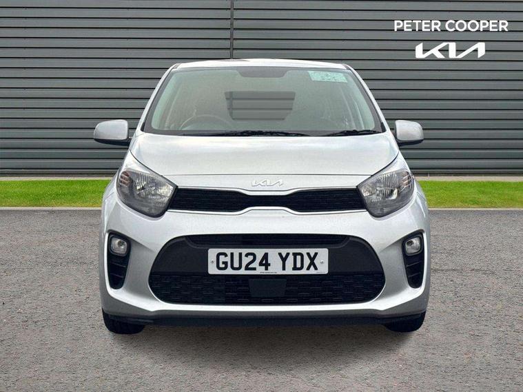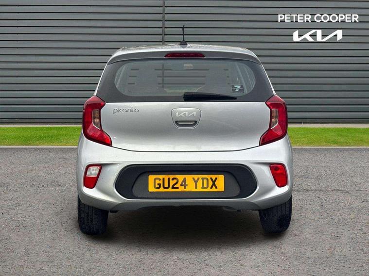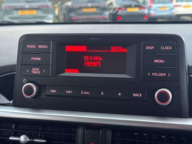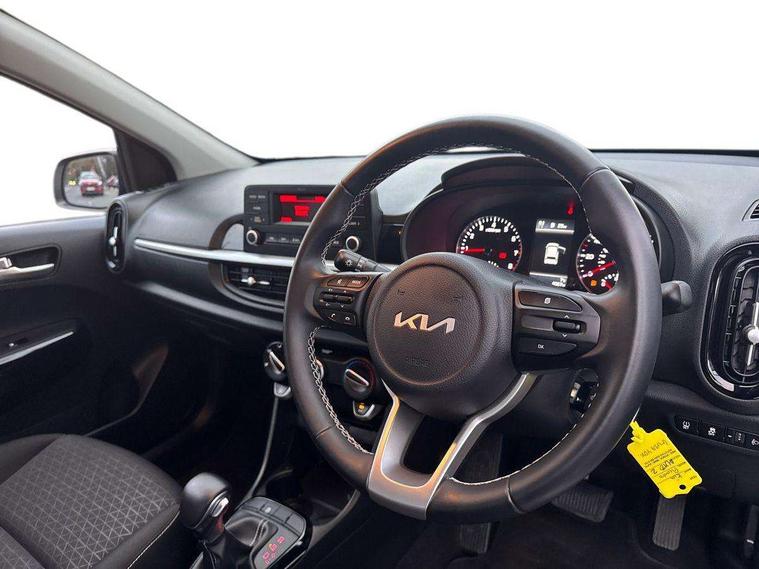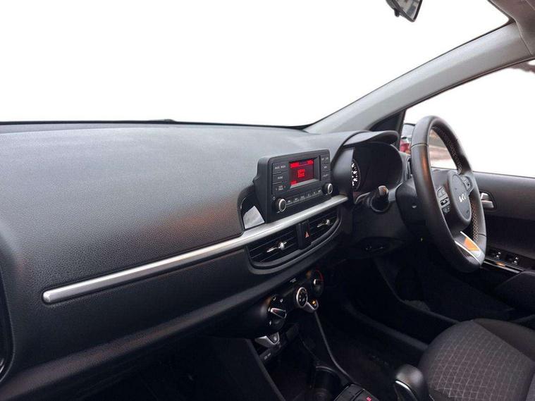 3.8" monochrome audio display with RDS and DAB, 4.2" supervision monochrome cluster display, Emergency call service, Emergency stop signalling system, External temperature gauge, Forward Collision-Avoidance Assist (FCA) - City, Motor driven power steering, Tachometer, Tailgate, Trip computer, 4 speaker audio system, Bluetooth with music streaming, Steering wheel mounted controls, USB ports for connection of a media device, Automatic headlight control system, Black radiator grille with chrome surround, Body colour bumpers, Body colour mirrors and door handles, Day/night rear view mirror, Daytime running lights, Electric adjustable heated door mirrors, Front and rear electric windows with drivers's auto up/down function, Headlamp levelling, Heated rear window, High mount brake light, MFR - Multi Focus Reflector halogen headlights with black bezel, Rain sensor, Rear fog lights, Rear side wing doors, Rear wash/wipe, Speed variable front wipers, Tinted glass, Visible VIN plate, Welcome and follow-me home light functionality, 1 x rear coat hook, 12V power point front, 2 seat bench in 2nd row, 3 x passenger assist grips, 60/40 split/folding 2nd row of seats, All round height adjustable headrests, Cupholders in centre console, Driver and front passenger sunvisor with vanity mirror, Driver seat height adjust, Front cabin lights, Glovebox, High gloss lower centre fascia trim, door armrest and air vents, ISOFIX Child seat top tethers and anchor fixings, Leather trimmed steering wheel and gearshift, Luggage area light, Luggage area parcel shelf, Manual air conditioning, Passenger front seatback pockets, Premium cloth upholstery, Silver paint finished interior door handles, Single front passenger seat, Slide/reclining front seats, Tilt adjustable steering wheel, Advanced Driver Assistance Pack - Picanto, 2 x 3-point rear seatbelts, ABS/EBD, Automatic unlocking of doors in case of impact, ESC + BAS + VSM + HAC, Front passenger airbag cut-off switch, Front seatbelt height adjusters, Front seatbelt pretensioners, Hill hold control, Hill start assist control (HAC), Knee airbags, Rear child proof door locks, Seatbelt warning, Side impact protection, Torque vectoring brake based and straight line stability (SLS), Traction control, Twin curtain airbags, Twin front airbags, Twin front side airbags, Tyre pressure monitoring system, Anti theft alarm, Engine immobiliser, Folding key, Locking wheel nuts, Remote central door locking, 14" alloy wheels, Tyre mobility kit,