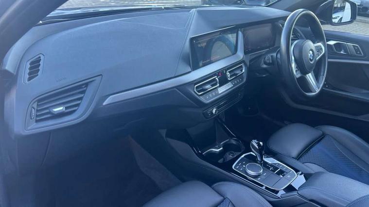 Active guard plus, Attentiveness assist, BMW Online services, BMW Teleservices, Check Control warning system for monitoring of lights and door/luggage compartment open warning, Connected eDrive Services, Eco pro mode, Integrated owners handbook, Oil sensor for level and grade, On board computer, Optimum shift indicator, Personal Profile, Pull away assistant, Speed limiter, Aluminium lightweight construction, Anti roll bar front and rear, Balancer shaft, Double VANOS, Drive Performance Control, Electronic differential lock, High precision injection, M sport suspension, Petrol Particulate Filter, VALVETRONIC engine management, Bluetooth audio streaming, DAB Digital radio, Auto dimming rear view mirror, Automatic headlight beam throw control, Automatic windscreen wipers and automatic headlight, Body colour door handles, Body colour mirror caps, Chrome 'M' logo side designation, Chrome exhaust tailpipe in single, round (Exhaust tailpipe, stainless steel - single, round), Chrome kidney grille frame with Satin Aluminium struts, Direction indicator side lights in exterior mirrors, Electric folding and anti dazzle exterior mirrors, Fading support, Follow me home headlights, Front and rear bumper system with replaceable deformation elements, Front and rear electric windows with open and close fingertip control, anti trap facility and comfort closing, Front door sill finishers in black plastic with M designation in metallic look, Green tinted heat protection glazing, Heated, electrically adjustable exterior mirror aspheric on driver side, convex on passenger side, High gloss shadowline window frame, Recess cover mirror frames and B/C pillar embelisher trim, High level third brake light, LED daytime running lights, LED eyebrow turn indicators, LED front fog lights, Lightweight engineering, Matt black air guide grilles, Model designation on right side of tailgate, Nearside reverse light in rear light cluster, Preparation for high beam assistant, Rain sensor including auto headlights activation, Rear fog lights, Rear window wiper, Shark fin antenna, Visible VIN plate, Welcome lighting, 12V power socket in centre console, 3 rear seat head restraints, 3 spoke M sports design leather steering wheel finished in nappa leather with specific M badge, Anthracite headlining, Anthracite Velour floor mats, Child seat ISOFIX attachment for two outer rear seats and front passenger seat with anchorage points, Conditioned based service, Dakota leather upholstery with perforation and contrast stitching, Driver and front passenger seat heating, Folding rear clothes hook, Four grab handles integrated in roof lining, Front and rear door pockets, Front and rear door pockets with bottle holders, Front and rear side armrest integrated into door trim, Front Armrest foldable with integrated storage compartment, Front sports seats with electric side bolster adjustment, Glove compartment, Height adjustable front head restraints, Manual adjust steering wheel, Multi-function controls for steering wheel, Storage compartment in centre console, Sun visors with vanity mirrors and insert tab, Two zone automatic air conditioning, Additional interior lighting pack - 1 Series, Connected pack professional - 1 Series, Extended storage pack - 1 Series, Interior lights pack - 1 Series, Luggage compartment pack - 1 Series, M Sport exterior styling aerodynamics pack - 1 Series, 2 tone horn, 3 point seatbelts on all seats, front pyrotechnic belt tensioners, stopper and belt force limiters, rear coded belt buckles, Airbags - front driver/passenger, front & rear curtain, front side, Anti lock braking system (ABS) with brake assist, BMW emergency call, Brake drying, Braking readiness, Crash sensor activating central locking release, hazard warning lights, fuel cut off, interior lighting + activation of safety battery terminal clamp, Driver and front passenger seat belt security check, Dynamic stability control + (DSC+), Dynamic Traction Control - DTC, Electrically operated hand brake, Front and rear disc brakes, Front passenger manual airbag deactivation, Seatbelt warning, Side impact protection, Tyre pressure monitoring system, Warning triangle and first aid kit, Automatic drive away locking facility, Central locking switch for all doors, fuel filler cap and luggage compartment, Deadlocking function system to all doors, Locking wheel bolts, Remote control with integrated key with High-gloss Black inlay and M designation and 1 button for open/ close lock, window, open luggage compartment, Start/stop button with comfort go keyless engine start and auto start stop deactivation button, Thatcham Cat.1 alarm and immobiliser, Contrast stitching on instrument panel, Reduced rolling resistance tyres,