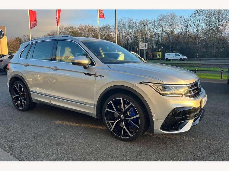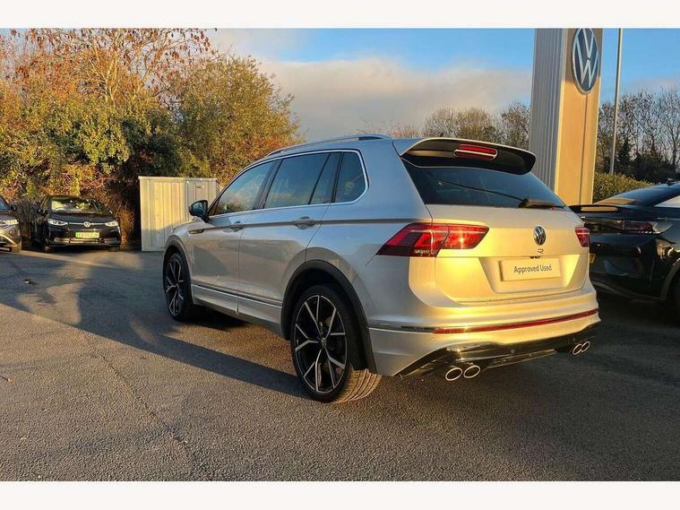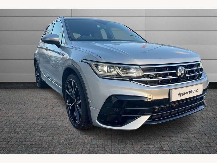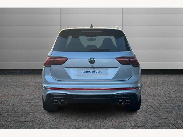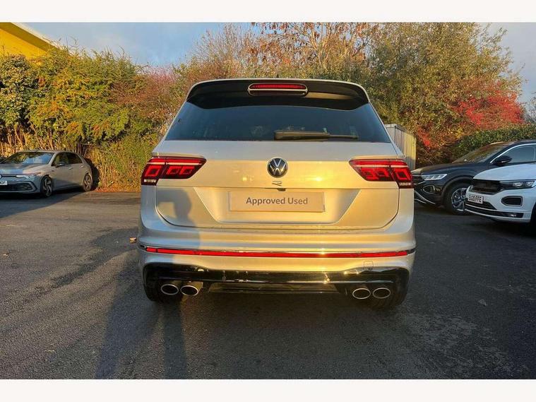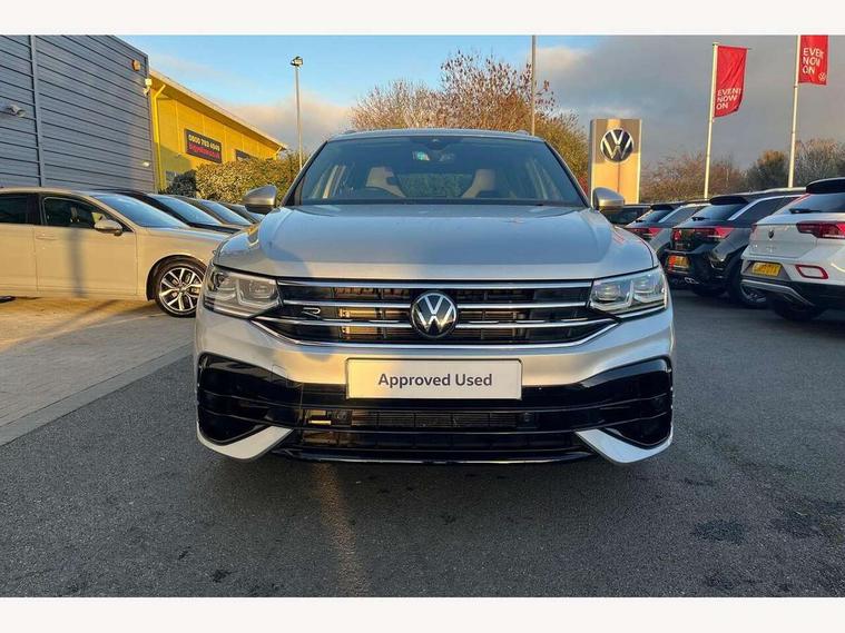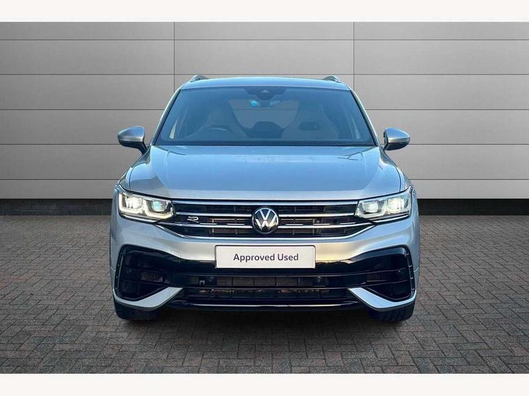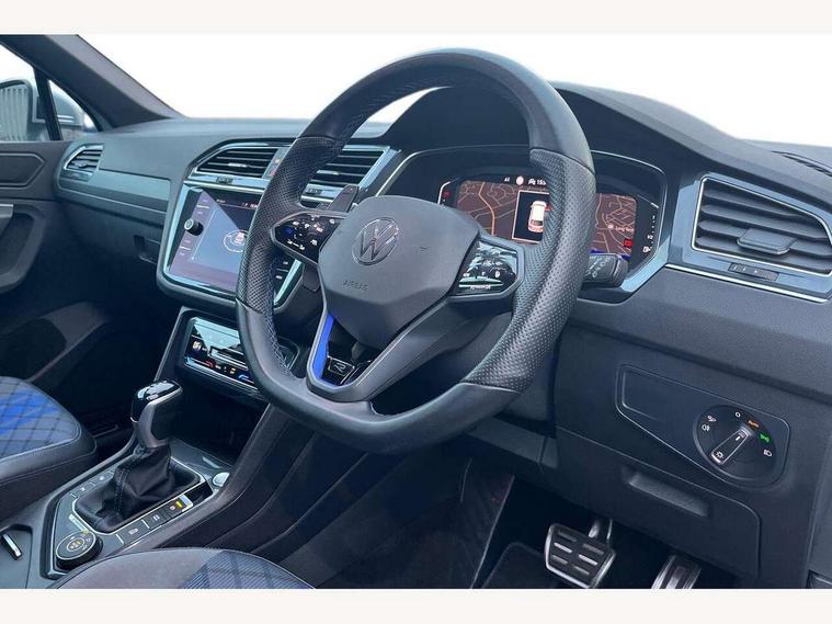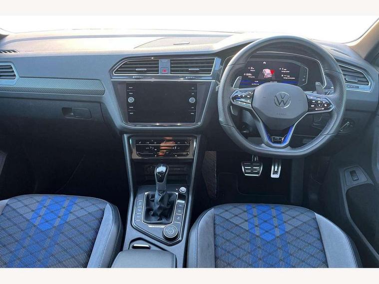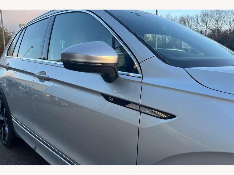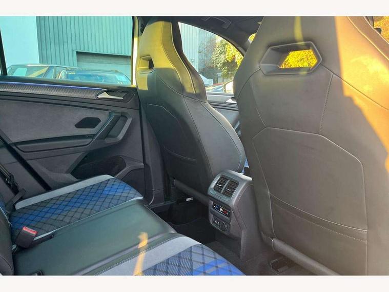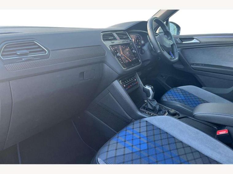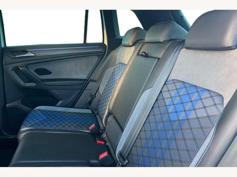 Adaptive cruise control ACC stop and go including speed limiter, App-Connect incl. App-Connect Wireless for Apple CarPlay and Android Auto, Bluetooth phone integration system, Distance control assist, Driver alert system, Driver profile selection, Dynamic road sign display, eCall emergency call system, Electromechanical speed sensitive power steering, Engine start/stop button, Instrument cluster mph speedometer Great Britain, Lane keeping system Lane Assist, Lights on warning, Motorised electric tailgate operated via key fob, drivers door and foot movement under tailgate, Multifunction front facing camera, Outside temperature display, Premium multifunction display with multi colour display, Rev counter, Revision / skills operating concept travel assistant, Service interval indicator, Speed limit display, Start/stop system with regenerative braking, Tailgate/trunk lid unlocking from outside, Trip computer, Warning sound and light for doors and tailgate open, ACC - Adaptive chassis contol with adaptive dampers, All wheel drive - 4Motion, Battery regeneration during braking, XDS electronic differential lock for improved traction and handling, 4 X 20 watt output, 8 speakers, Diversity antenna for FM reception, SD card slot, Simultaneous pairing of 2 compatible mobile devices, SMS functionality - read, compose and send SMS messages using touch-screen display, Title and cover art display, USB C ports, Auto dimming interior rear view mirror, Automatic headlight control system, Body colour door handles, Body coloured door mirrors with integrated indicators, Chrome matt mirror covers, Chrome moldings on the side windows, Coming/leaving home lighting function, Dynamic headlight range control, Front and rear electric windows, Front illuminated door sills with R logo, Heated rear window, High level 3rd brake light, IQ light-Adv high beam, Dynamic light assist for LED matrix headlamp+LED separate DRL+DCL, dark red rear LED tech, Poor weather light+ cornering light, Laminated safety glass windshield, heat and sound insulating, LED rear number plate lights, License plate carrier in front and rear, Poor weather light and cornering light, Privacy glass for rear side windows and rear window, R-Logo light projection, R-Logo on radiator grille with side panels and rear, R-specific diffuser, painted black with cut out for trailer hitch, R-Specific front and rear bumpers, Rain sensor windscreen wipers, Rear fog lamp, Rear side wing doors, Rear spoiler in R style, Rear windscreen washer and wiper with interval delay, Side and rear windows in heat insulating glass, Silver anodised roof rails, Trailer Stability Programme, Windscreen wipers/ intermittent wipe + 4 position delay, 12V outlet in center console rear and in luggage compartment, 12V outlet in front and tray, 2 cup holders in front, 2 LED front reading lights, 2 LED rear reading lights, 3 bench rear seats in 2nd row, 3 rear headrests, 4 load lashing points, 40:20:40 split folding rear seats, Air Care Climatronic 3 zone automatic climate control with enhanced air filter and controls in the rear, Backrest release for left front seat, Black headlining, Climate control unit rear with touch function, Door and side trim panel in foam film, insert in leatherette, Floor mats with R-Logo and stitching, Front centre armrest, Front footwell illumination, Front seats head restraints (x-adjustment), Height adjustable front seats, Height/reach adjust steering wheel, Instrument lighting white adjustable panel illumination, Interior light with delay, Isofix Preparation 2 Rear child seats, Leather gear knob, Lighting door sill trim at front with R Logo, Lockable cooled glovebox, Luggage compartment lighting, Luggage net, Pedals and footrest in stainless steel, R Specific key caps, R-specific sport skin with R Logo in active Info dsiplay, R-taster (direct selection of race mode/ flap control), Rear bench seat asymetrically split folding, longitudinally movable and folding with load-through hatch and center armrest, Remote unlocking for rear seat backrest, Removable luggage cover, Removable rear headrests, Safety optimised front head restraints, Single front passenger seat, Sliding/reclining rear seats, Standard rear seat release, Storage compartment in driver's door, Storage compartment in passenger's door, Storage compartment in rear doors, Storage compartments in luggage area left and right, Storage tray on dashboard, Sun visors with illuminated vanity mirrors, Tool kit, Top sports seats integrated headrest, blue R-Logo in front seats, seat centre panels and outer rear seats in fabric inner side bolster art Velors, Variable boot floor, height adjustable and removable, Easy open and close pack with safelock - Tiguan, 3 point seat belt for centre rear seats, 3 point seat belts with seat belt pretensioners for the outer rear seats, Active bonnet, Curtain airbags for front and rear passengers, Driver/Front Passenger airbags, Drivers knee airbag, Electronic parking brake with auto hold, Electronic Stability Control with driver steering recommendation, ABS, ASR, EDL, EDTC and trailer stabilization, Front assist with autonomous emergency braking (for Adaptive Cruise Control ACC up to 130 mph), Front disc brakes, Front passenger airbag deactivation, Front side airbags, Height adjustable front 3 point seatbelts + pretensioners, Hill hold control, Manual child proof rear door locks, Pedestrian monitoring system, Power assisted brakes, Proactive passenger protection system in combination with front assist, Rear disc brakes, Rigid safety cell with front and rear crumple zones, Two tone horn, Tyre pressure monitoring system, Warning sound and light for front seat belts if unfastened, Anti theft alarm system with interior monitoring, backup horn and towing protection, Anti theft wheel bolts, Central locking system with safelock radio remote control and 2 remote control folding keys, Electronic engine immobiliser, Tyre mobility kit Includes 12V compressor and tyre sealant,