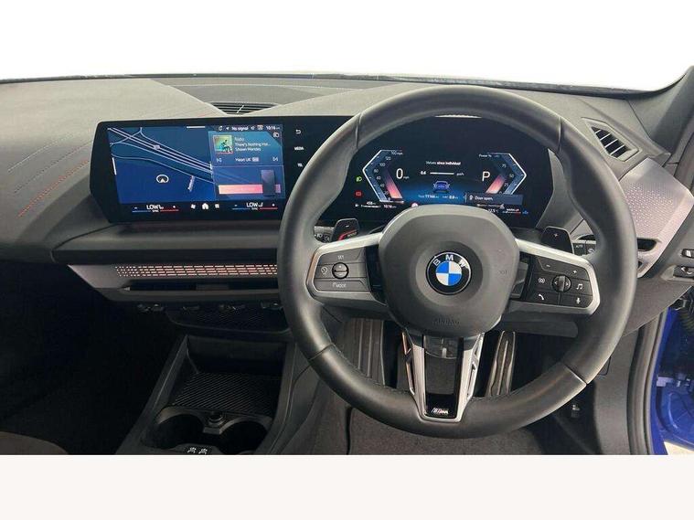 Active guard plus, Attentiveness assist, Bluetooth / WiFi interface for wireless connection of mobile terminal devices and audio streaming, BMW ConnectedDrive online services, BMW Live cockpit plus, BMW Teleservices, Check Control warning system for monitoring of lights and door/luggage compartment open warning, Eco pro mode, Electric power steering with Servotronic steering optimised at all speed ranges, Evasion assistant, Flat airvents in instrument panel with adjustable slats, Front and rear parking sensors, Front axle single joint with specific axle kinematics to minimise drive influences on steering + provide increased rigidity agile driving behaviour, Gearshift time display in manual mode, Integrated owners handbook, Left turn warning with brake function, My modes (Personal / Efficient / Sport), Oil sensor for level and grade, On board computer, Optimum shift indicator, Park assist including reversing assistant, lateral parking aid and reversing assist camera, Personal e-SIM, Personal Profile, Pull away assistant, Rigidly mounted rear subframe - Multi link construction with separate spring / damper configuration and excellent driving characteristics, Speed limit Info including no-overtaking indicator, Speed limiter, 49 litre fuel tank, Aluminium lightweight construction, Anti roll bar front and rear, Balancer shaft, Double VANOS twin scroll turbocharging system, Drive Performance Control, Electronic differential lock, Electronic selector lever, High precision injection, M Adaptive suspension, Petrol Particulate Filter, Steptronic transmission with double clutch, Twin tube gas filled shock absorbers with degressive characteristic curve, VALVETRONIC engine management, DAB Digital radio, Auto dimming rear view mirror, Automatic windscreen wipers and automatic headlight, Body colour door handles, Body colour mirror caps, Body colour roof trims, Chrome 'M' logo side designation, Chrome exhaust twin tailpipes round 90mm in left, Chrome kidney grille frame with Satin Aluminium struts, Direction indicator side lights in exterior mirrors, Electrically adjustable exterior mirror with mirror adjustment switch on drivers armrest and aspheric on driver side, convex on passenger side, Exterior M sport design elements, Fading support, Folding side mirrors with auto dimming/folding wing mirrors with auto dimming, Follow me home headlights, Front and rear bumper system with replaceable deformation elements, Front and rear electric windows with open and close fingertip control, anti trap facility and comfort closing, Front bumper panel with M specific design in vehicle colour with inserts in black high gloss, Front door sill finishers in black plastic with M designation in metallic look, Green tinted heat protection glazing, Heated rear window, High gloss black exterior mirrors, High gloss shadowline window frame, Recess cover mirror frames and B/C pillar embelisher trim, High level third brake light, Integrated front windscreen with washer jets, LED daytime running lights, LED eyebrow turn indicators, LED front fog lights, LED Headlights, Lightweight engineering, M identification on the sides, Matt black air guide grilles, Matt black wheel arch trim, Model badge on tailgate right, Nearside reverse light in rear light cluster, Preparation for high beam assistant, Rain sensor, Rear bumper panel with M-specific design in vehicle colour with inserts in black high gloss, Rear fog lights, Rear side wing doors, Rear window wiper, Shark fin antenna, Side sill covers with M specific design in body colour, Trailer stabilisation logic, Visible VIN plate, Welcome lighting, 12V power socket in front centre console with blanking plug, 3 rear seat head restraints, 3 seat bench in 2nd row, 3 spoke sports leather steering wheel with black leather and stitching, pearl chrome decorative finish, specific M Badge, Anthracite front and rear floor mats, Anthracite headlining, Black boot net with lashing eyes, Cargo function on 2nd seat row, Child seat ISOFIX attachment for two outer rear seats and front passenger seat with anchorage points, Conditioned based service, Driver and front passenger backrest net on rear, Driver and front passenger seat heating, Driver side folding compartment in instrument panel, Folding rear clothes hook, Footrest and pedals in black plastic, Four grab handles integrated in roof lining, Front and rear door pockets with bottle holders, Front and rear side armrest integrated into door trim, Front armrest with storage compartment, Gearshift paddles on steering wheel, Glove compartment, Height adjustable front head restraints, Luggage compartment for bag hooks on left and right, foldable luggage compartment liner and four lashing eyelets, Manual adjust steering wheel, Multi-function controls for steering wheel, Rear seat backrest with manual 60:40 split folding with 3 top tether clips integrated on rear of seat panels, Single front passenger seat, Storage compartment in centre console, Storage compartment in luggage compartment, Stowage of the parcel shelf in luggage compartment trim, Sun visors with vanity mirrors and insert tab, Two front centre console cupholders, Type C two USB ports in rear centre console, Upper retaining strap integrated into backrest rear panels, Connected pack professional - 1 Series, Interior lights pack - 1 Series, M Sport exterior styling aerodynamics pack - 1 Series, 2 tone horn, 3 point seatbelts on all seats, front pyrotechnic belt tensioners, stopper and belt force limiters, rear coded belt buckles, Airbags - Front driver/passenger, front and rear curtain head protection, front side, manual deactivation of front passenger airbag, Anti lock braking system (ABS) with brake assist, BMW emergency call, Brake drying, Braking readiness, Child proof locking system in rear door, Comfort modes, Cornering brake control, Crash sensor activating of airbags, Unlocking doors, hazard warning lights, interior light, safety battery terminal, Driver and front passenger seat belt sec