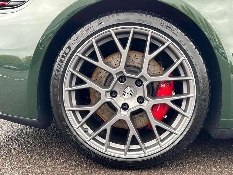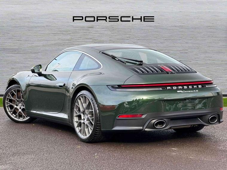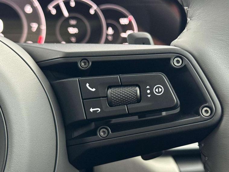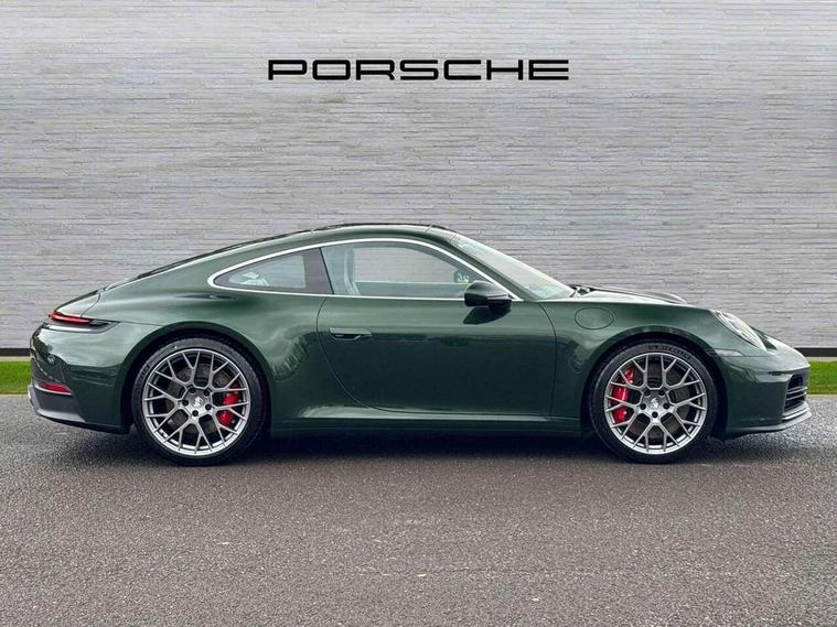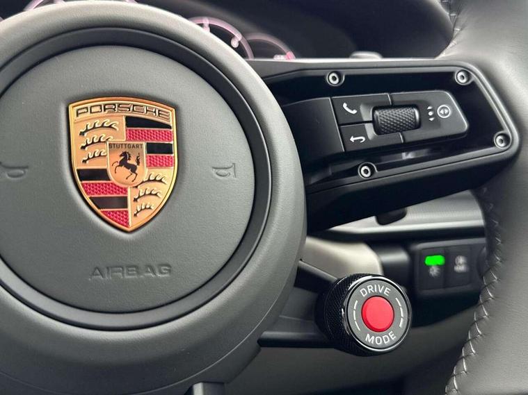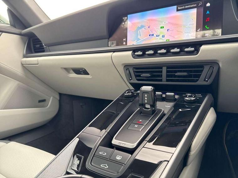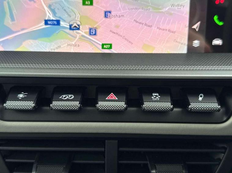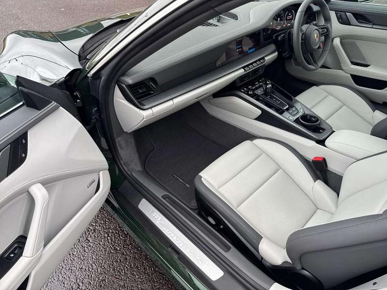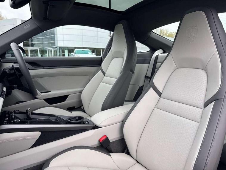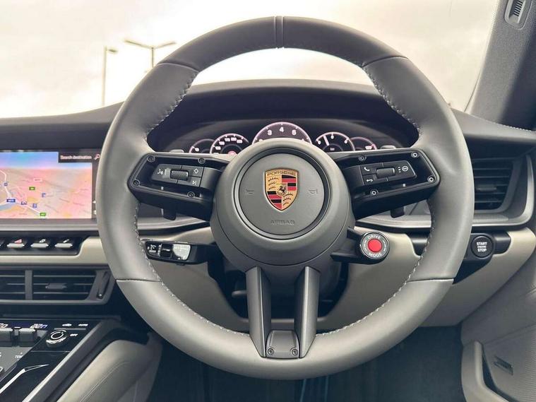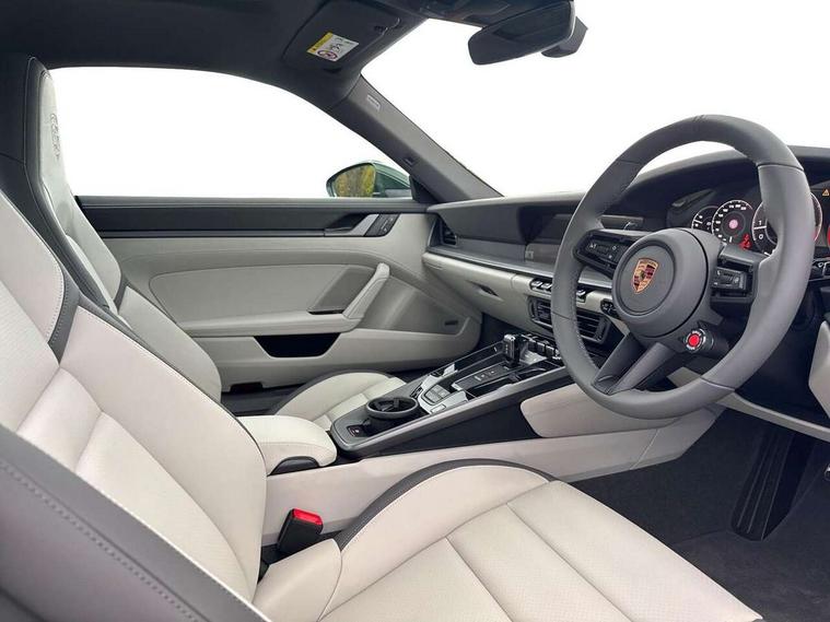 Apple CarPlay, Driver awareness detection, Emergency call systems eCall and bCall, Lane keep assist, Navigation High, Smartphone compartment with wireless charging up to 15 W, Sports and WET Mode, Traffic sign recognition, Voice control, Warn and brake assist including pedestrian protection, 3.0 liters 6-cylinder boxer engine with twin-turbo, 63 litre fuel tank, 8 Speed Porsche Doppelkupplung (PDK), All wheel drive with map controlled multi plate clutch Porsche Traction Management (PTM), Porsche Torque Vectoring Plus (PTV Plus), DAB Digital radio, 3rd brake light, Auto headlights, Automatically dimming interior and exterior mirrors with integrated rain sensor, Door handles painted in exterior colour, Electric folding door mirrors with courtesy lights, Fuel/charging cover, LED daytime running lights, Model designation on rear trim in Light silver, Rear boot, Rear diffusor in louvered design, Rear lid grille with vertical slats in high gloss silver, Stone impact protection, Trim on side skirts in black, Windscreen with thermally insulating glass, 2-seater with rear engine layout, Delete quilting, Deletion of model logo embossed on headrests, Front headrests, Heated front seats, ISOFIX fastening system, Leather door panel and central armrests, Lockable glove compartment, Particle/pollen filter with active carbon filter, Single front passenger seat, Steering wheel with manual fore/aft and height adjustment, Two zone auto climate control, USB-C fast charging, Light design package - 911, 3 point automatic seatbelts, Airbags, Electric parking brake, Passenger airbag deactivation, Pedestrian safety, Seat belt warning system for driver and front passenger and rear seat system, Seatbelt pretensioners, Tyre pressure monitoring system, Warning triangle, Alarm system with interior surveillance, Alcohol interlock preparation, Anti-theft wheel bolts, Comfort access system, Preparation for Porsche Dashcam, TPM valve in silver, Tyre sealing compound and electric air compressor kit,