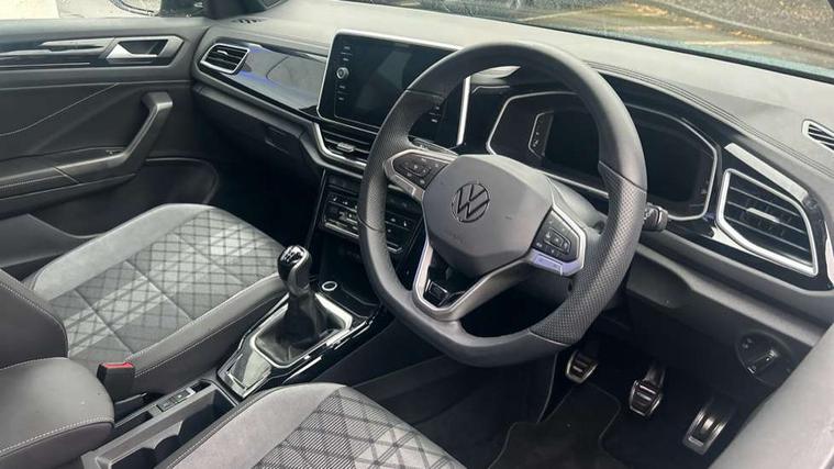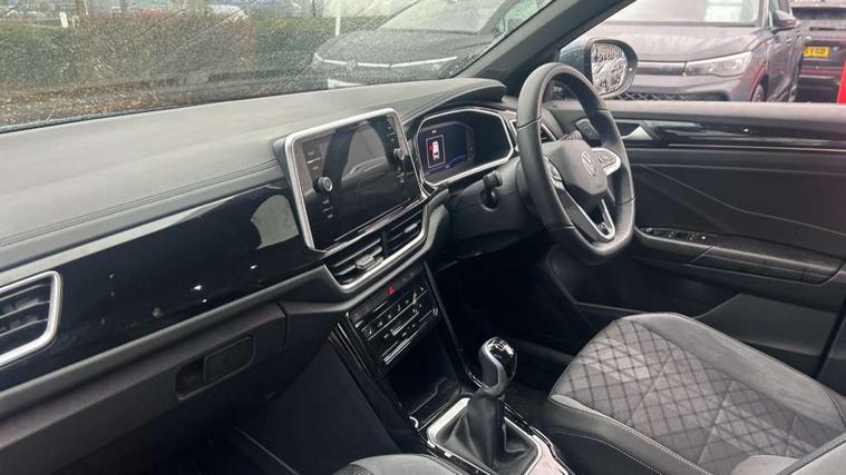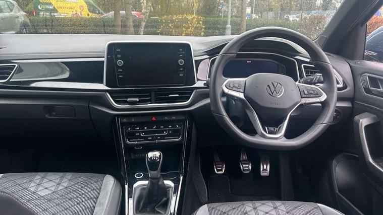 10.25" Digital cockpit pro, Advanced driver attention and drowsiness monitor, Emergency call service, Lane keeping system Lane Assist, Mobile phone interface, Modified key software - reduce switch off time for key status change to Long no motion, Online services, Park assist including front and rear parking sensors, Service interval indicator, Tailgate/trunk lid release from outside, Think blue trainer driver tips and journey analysis, Warning sound and light for front seatbelts unfastened, Wireless app connect, Battery regeneration during braking, Start/stop function with battery regeneration, DAB Digital radio, Diversity antenna for FM reception, Front and rear 6 speakers, Music playback - MP3, WMA and AAC files, Premium USB cable in choice of either Apple or Android smartphone compatibility, SD card slot, Simultaneous pairing of 2 compatible mobile devices, Title and cover art display, We Connect and We Connect Plus functionality, Auto dimming interior rear view mirror, Automatic hazard lights activation under emergency braking, Automatic headlight control with LED separate daytime running lights with coming/leaving home function, Body coloured exterior mirror housings and door handles, Electrically adjustable and heated door mirrors, Extended roof spoiler, Exterior mirrors aspherical on driver side, convex on front passenger side, External USB type C socket and charging sockets, Front windscreen wiper with intermittent wipe and 4 position delay, Heated rear window, LED 3rd brake light, LED rear combination lamps, LED rear number plate lights, Power windows with comfort operation and circuit breaker, Privacy glass for rear side windows and rear window, R-Line design body coloured bumpers, Rain sensor, Rear exhaust tailpipe, Rear fog light on one side and reversing lights on both sides, Rear side wing doors, Rear wash/wipe with intermittent wipe setting, Remote electrically foldable door mirrors, puddle lights and reverse activated passenger's door mirror, 12V power socket in centre console, 3 rear head restraints, 3 seat bench in 2nd row, 4 load lashing points in luggage compartment, Air care climatronic air conditoning system with active combination filter and 2-zone temperature control, Black roof lining, Chrome plated decorative trims, Chrome plated radiator grille inserts, air vent surrounds and light switch surrounds, Door and side trim panel with leatherette insert, Front + rear carpet mats, Front centre armrest, Front cupholders x 2, Front footwell illumination, Front reading light, Front scuff plates with R Line logo, Front seat back storage pockets, Glove compartment door with light, Instrument lighting, white adjustable panel illumination, Interior ambient lighting and surround lighting, Interior light delay, Isofix child seat preparation, Leather gearshift handle, Load-through provision with cup holder when folded down ('Unsplit rear seat bench, split folding backrest, with centre armrest), Luggage compartment lighting, Single front passenger seat, Stainless steel pedals, Storage compartment in left and right luggage area, Storage compartment in rear doors, Storage compartments in driver and front passenger doors, Sunvisors with illuminated vanity mirrors, Variable boot floor, height adjustable and removable, Driver assistance pack without proactive passenger protection - T-Roc, 3 point height adj front seatbelts + pretensioners, 3 point seatbelts in outer rear with ECE label, ABS, Child locks on rear doors, City emergency braking and pedestrian monitoring, Driver and front passenger airbag with front passenger airbag deactivation, Driver and front passenger safety-optimised head restraints, Drivers seatbelt reminder, Electronic parking brake, Electronic Stability Control (ESC) inc EDL (Electronic Differential Lock) and ASR (Traction Control), Front and rear passengers curtain airbag system including front side airbags, Hill start assist, Predictive pedestrian protection, Rear disc brakes, Two tone horn, Tyre pressure loss indicator, Volkswagen roadside assistance, Piano black decorative inserts in dashboard and front door trim panels, Trims for alloy wheels,