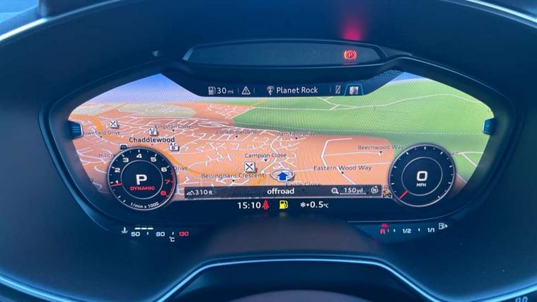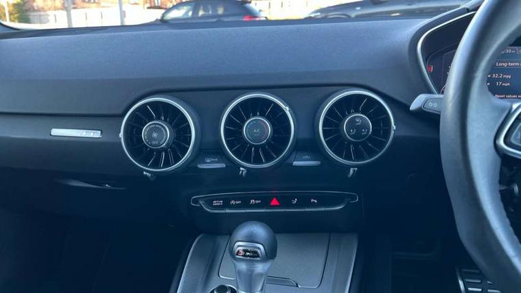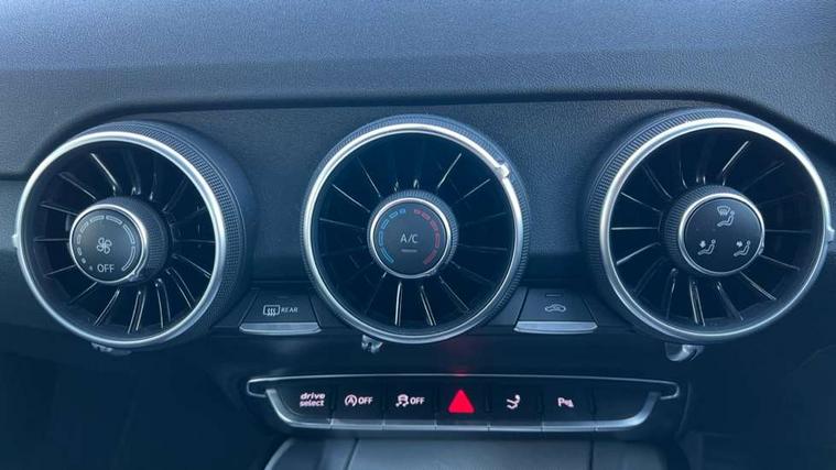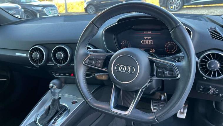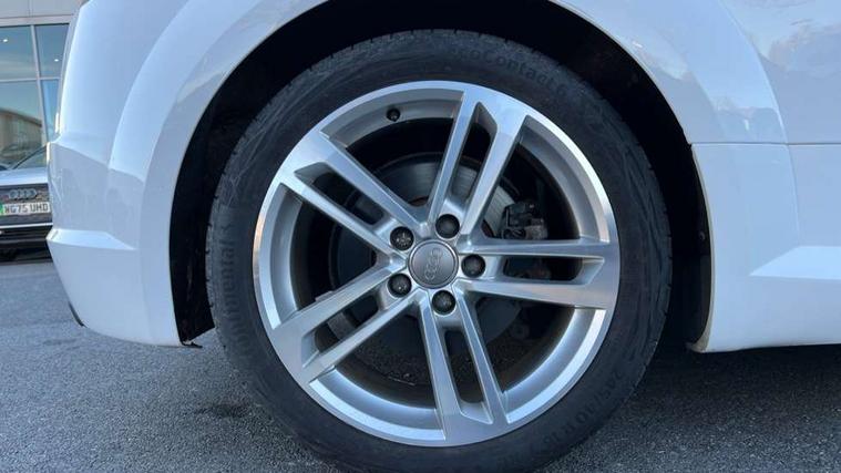 Audi drive select with 4 Pre configured modes, Audi smartphone interface, Audi virtual cockpit - 12.3" high-resolution LCD display with fully customisable instrument cluster, Cruise control + speed limiter, Emergency call service, MMI touch panel, Mobile phone preparation with bluetooth interface, Progressive power assisted steering, Seat belt microphone, Service interval indicator, Start/Stop system with energy recuperation, TP memo, Sports suspension, AM/FM radio, Bluetooth audio streaming, DAB Digital radio, MMI Radio with CD player and SD/XC card slot, Auto dimming rear view mirror, Body colour bumpers, Body colour door mirrors, Electric folding door mirrors, Electric front windows, Electrically adjustable and heated door mirrors with integrated LED side indicators, Front fog lights, Fully automatic acoustic hood, Green tinted heat insulating glass, LED 3rd brake light, Light and rain sensors, Rear boot, Retractable rear boot spoiler, Sunband for windscreen, Xenon headlights with LED daytime running lights with automatic headline range control + LED rear lights, brake lights and rear indicators, 12V socket, 3 spoke flat bottomed high multi-function leather sport steering wheel with gearshift paddles, Alcantara/Leather upholstery includes seat centre panels, door trim inserts in black Alcantara with side bolsters, head restraints in black leather, Aluminium door sill trims, Front centre armrest, Front passenger seat, Front sports seats, Heated front seats, Height/reach adjust steering wheel, Integrated head restraints, ISOFIX child seat mounting for front passenger seat with airbag deactivation, Manual adjustment of seat height, fore/aft position, seat angle, seat depth and backrest angle, Non smoking pack - TT/TT RS, 3 point front seat belts, ABS, ASR traction control, Curtain airbags, Driver and front passenger airbag with front passenger airbag deactivation, EDL traction control, Electromechanical parking brake, ESP, First aid kit, Front side airbags, Hill hold assist, Roll over bars, Seatbelt warning, Tyre pressure loss indicator, Warning triangle, Anti theft alarm, Anti theft wheel bolts, Immobiliser, Keyless Go, Remote central locking, Aluminium design inlays, Tool kit, Tyre repair kit,