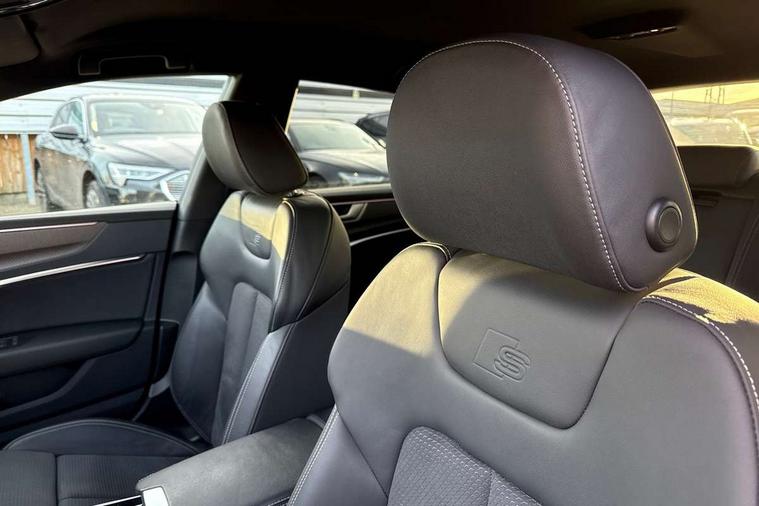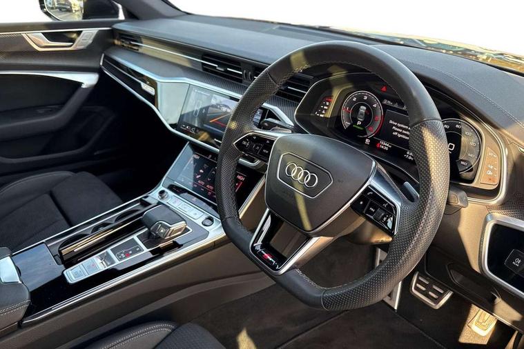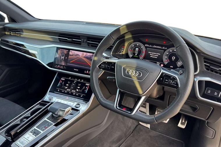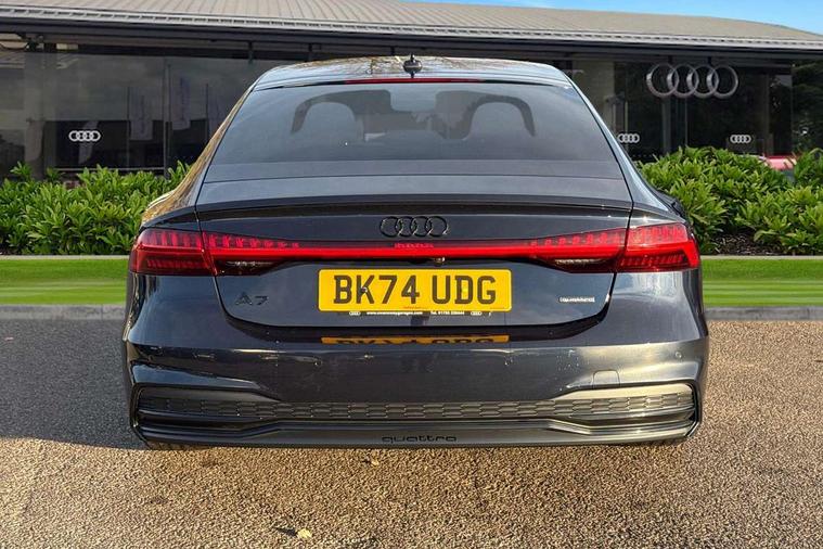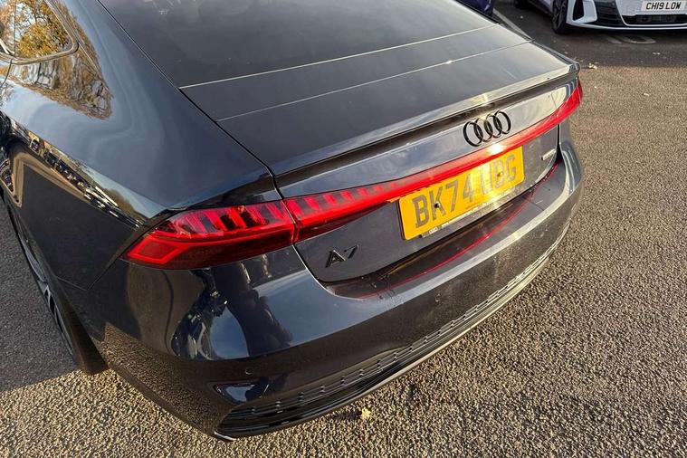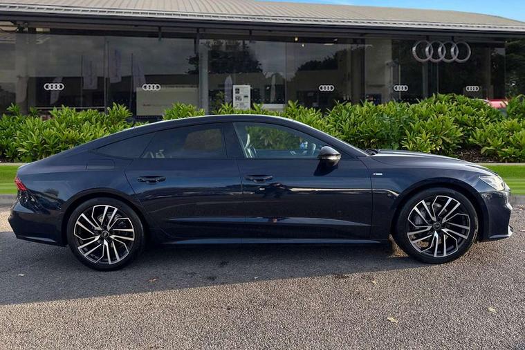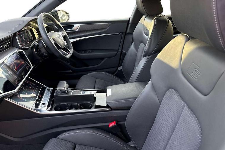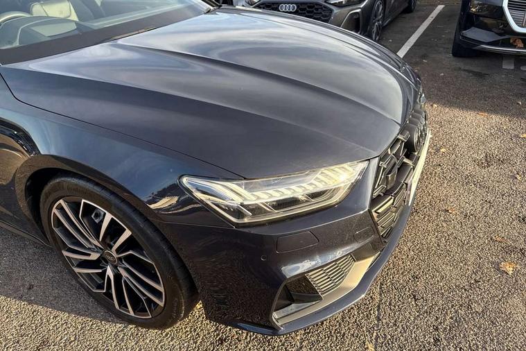 Audi connect safety and service (e-call), Audi connect with Amazon Alexa Integration, Audi drive select, Audi parking system plus - acoustic and visual park assist system for front and rear, Audi virtual cockpit, Automatic start/stop system with coasting functionality, Bluetooth interface, Camera based traffic sign recognition, Colour driver's information system display, Lane departure warning system, MMI nav plus with MMI touch + 10.1" and 8.6" HD haptic touch screen/3D city models/country information/online map/route info and personal route assist, Operating buttons in black, glass look with haptic feedback, Progressive steering, Rear view camera, Service indicator, Smartphone interface includes wireless Apple carplay/Android Auto, Voice control system, 22 litre AdBlue tank, Diesel particulate filter, Quattro on demand, Sports suspension, Audi music interface, Audi sound system with 6 channel amplifier, 180 watt amplifying capacity and 10 loudspeakers including subwoofer, Auxiliary input socket, DAB digital radio module, Audi beam, Audi rings, front and rear as well as A7 at the rear in black, Black rear diffuser with chrome inlays, Electrically adjustable heated and folding + automatically dimming exterior mirrors with memory function, Frameless auto dimming interior rear view mirror, Front and rear electric windows, Gloss black highlights on the exterior area of the Audi Single frame, Gloss black highlights on the front and rear bumpers, Gloss black highlights on the radiator grille, Gloss black highlights on the side windows trim strips, HD Matrix LED headlights, Heat insulating darkened glass in side and rear windows, High gloss black air inlets, LED 3rd brake light, LED rear lights with dynamic indicators, Omission of output/technology badging, Privacy glass with side and rear windows, Rain and light sensors, Rear side wing doors, Rear wiper, Retractable rear boot spoiler, Signature LED daytime running lights, Towbar preparation, Windscreen with heat-insulating glass, 2 zone deluxe electronic climate control, 4-way electric lumbar support, 40/20/40 split folding 3 seater rear seat bench with rear centre armrest, Audi phone box light, Black cloth headlining, Electrically adjustable front seats - driver seat with memory, Front and rear headrests, Front centre armrest, Heated front seats, Height/reach adjust steering wheel, Illuminated door sill trims with S logo, Illuminated sun visors with vanity mirrors, ISOFIX child seat mounting and top tether in front and outer rear seats with front passenger airbag deactivation, Leather gear knob, Leatherette upper instrument panel and door shoulders, Luggage compartment lid, electrically opening and closing, S line front and rear floor mats with contrast stitching, Single front passenger seat, Stainless steel pedals and foot rest, LED interior ambient lighting pack - A7, Non smoking pack - A7, 3 point seatbelts on all seats, Audi pre-sense front, Driver and passenger airbags, Electromechanical parking brake, Electronic stabilisation control including ABS, ASR and EDL, Extended pedestrian protection measures, Hill hold assist, Manual child lock in rear doors, Seatbelt monitoring, Tyre pressure warning light, Warning triangle and first aid kit, Anti theft alarm with tow away protection, Anti-theft wheel bolts and wheel loosening detection, Immobiliser, Keyless Go, Preparation for tracking system, Remote central locking, Carbon twill inlays, 20" 5 segment spoke evo style Audi sport black matte diamond turned alloy wheels, Tool kit,