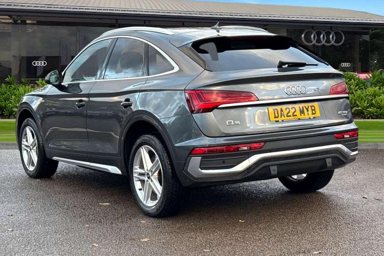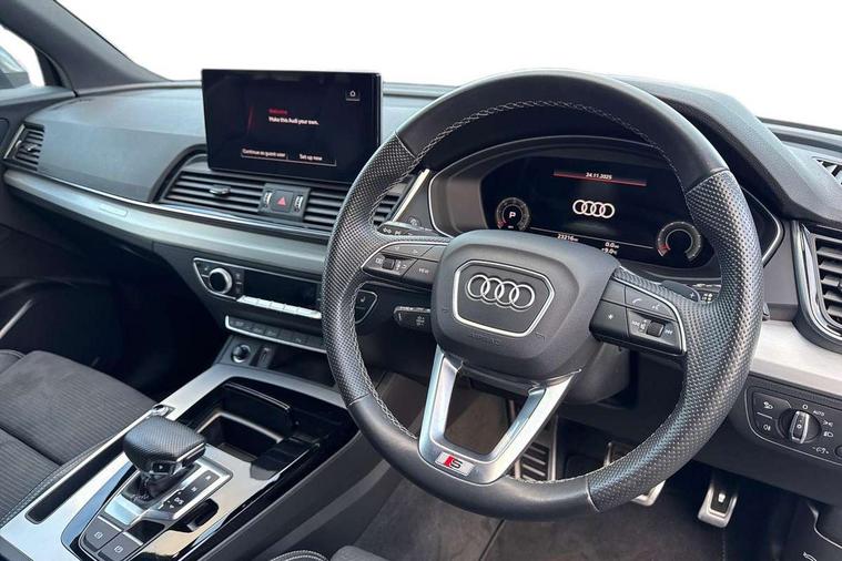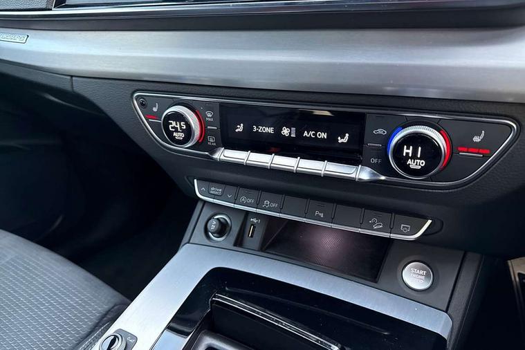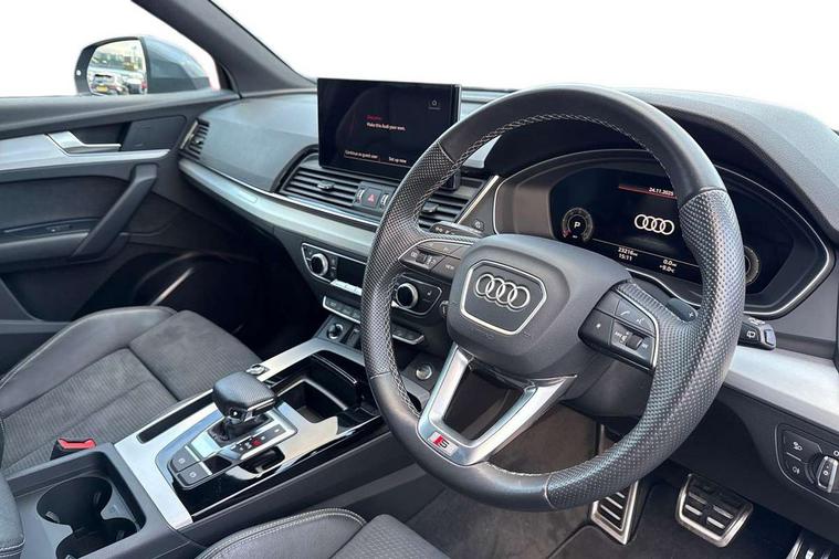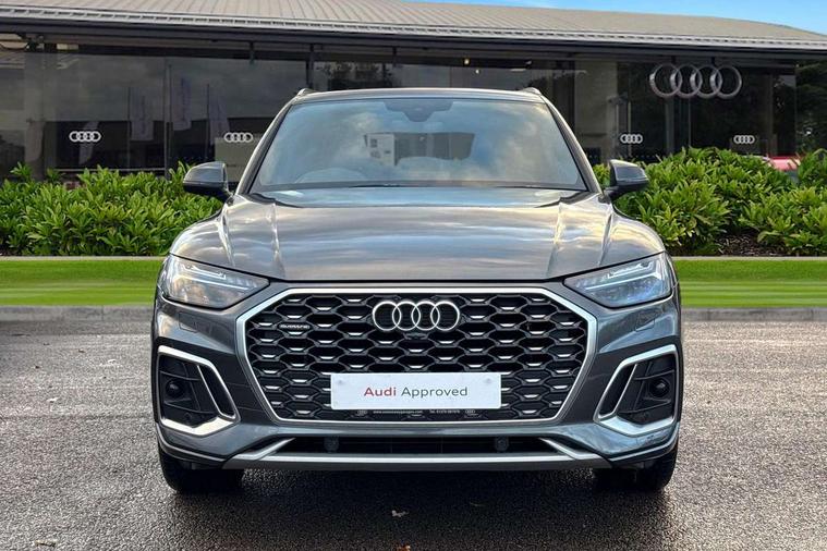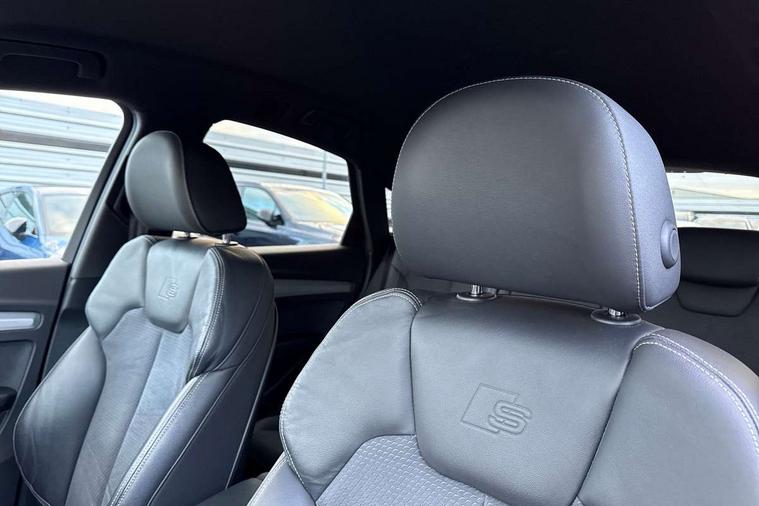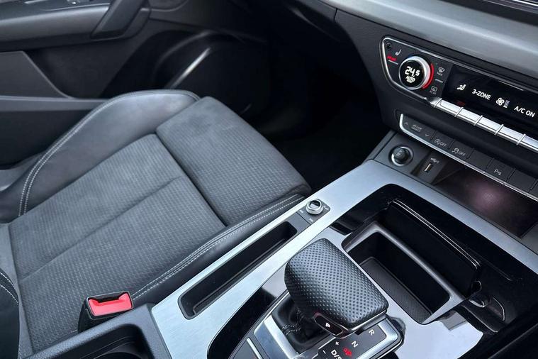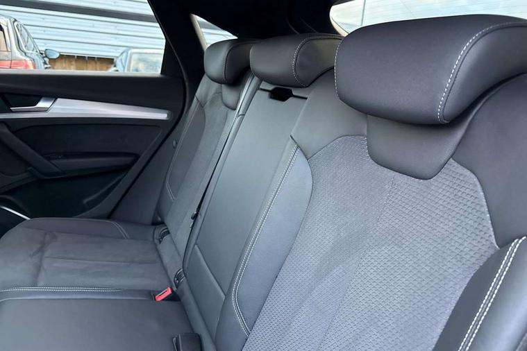 Audi connect safety and service (e-call), Audi connect with Amazon Alexa Integration, Audi drive select, Audi virtual cockpit plus with 12.3" screen and three different layout designs, Audi wireless smartphone interface, Automatic start-stop system with coasting functionality and efficiency programme, Bluetooth interface, Electro - mechanical power assisted steering, MMI navigation plus with 10.1" touch screen, Power tailgate, Reversing camera, Service interval indicator, Voice control system with Audi hotword activation "Hey Audi", Diesel particulate filter, Quattro on demand, S line sports suspension, 2 x USB charging port with aux input socket, DAB Digital radio, Acoustic windscreen, Aluminium roof rails, Audi matrix LED headlights with dynamic front and rear indicators, Auto dimming door mirrors, Auto dimming rear view mirror, Automatic headlights and windscreen wipers, Body colour door mirrors, Body colour rear diffuser with matt aluminium silver surrounds, Body colour underbody protection, Chrome plated exhaust trims, Daytime running lights, Door sills in Selenite silver, Electric adjustable/heated/folding door mirrors, Front air inlet surrounds in aluminium, Front and rear electric windows, Front radiator grille in honeycomb design, Headlight washers, High level LED brake light, Lower bumpers painted in contrast Manhattan grey, Rear chrome trim strip below lights, Rear privacy glass and rear side windows, Rear side wing doors, Rear wiper, Roof bars, S Line badges on the front wings, S Line front and rear bumpers, S Line rear spoiler, S Line side skirts, 3 rear headrests, 40:20:40 split folding 3 rear bench seat in 2nd row with rear centre armrest, Black cloth headlining, Comfort front centre armrest, Contrast stitching on seats, steering wheel and gear lever gaiter, Deluxe 3 zone electronic climate control, Front head restraints, Front/rear floor mats, Gear lever in black leather, Heated front seats, Height/reach adjustable steering column, Illuminated door sill trims with S logo, ISOFIX child seat mounting and top tether, Manual seat adjustment with 4-way electric lumbar support, Removable luggage compartment floor, Single front passenger seat, Stainless steel pedals, Sunvisors with vanity mirrors, Trunk roller cover, High gloss pack - Q5, LED interior light pack - Q5, 3 point seatbelts on all seats, 6 airbags - Driver, front passenger, curtain and side airbags, Electrically operated child locks on rear doors, Electromechanical parking brake, Electronic stabilisation control including ABS, ASR and EDL, Front passenger airbag deactivation, Hill descent control, Hill hold assist, Multi collision brake assist, Pop-up bonnet for pedestrian protection, Pre sense city, Seat belt force limiter, Seatbelt monitoring, Tyre pressure warning, Warning triangle and first aid kit, Anti theft alarm, Anti-theft wheel bolts, Keyless Go access/ignition system, Remote central locking, Matt brushed aluminium inlays,