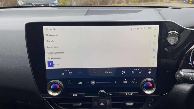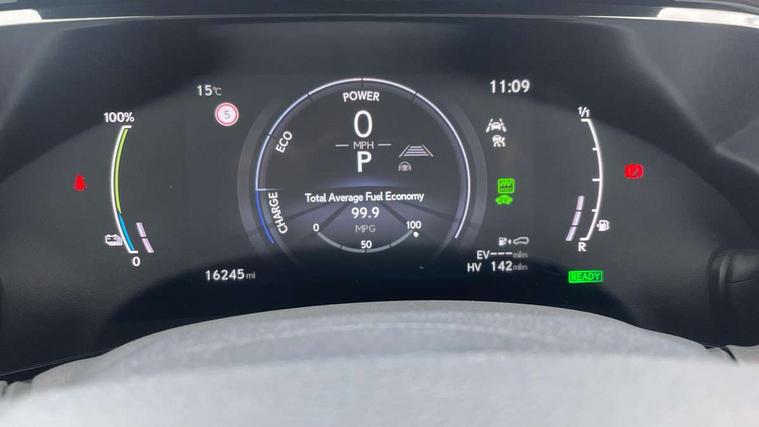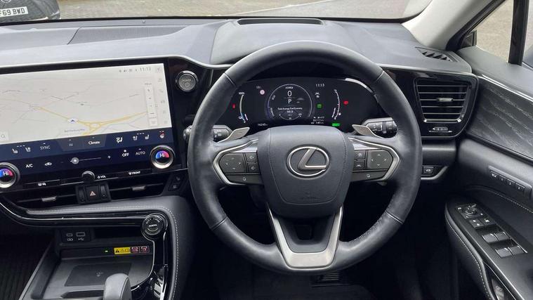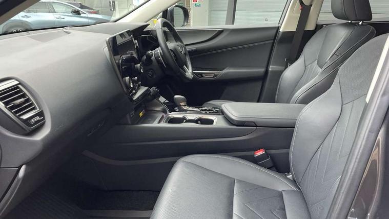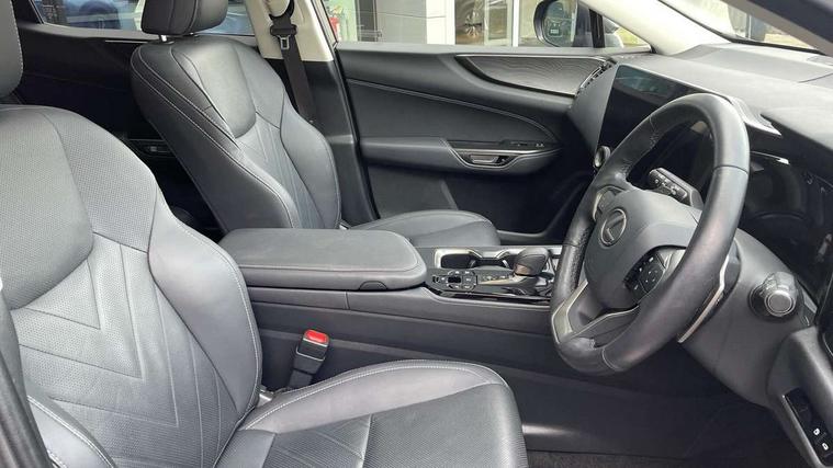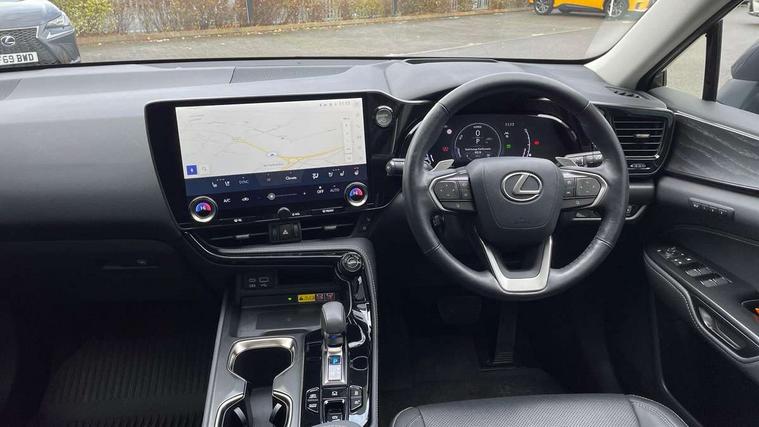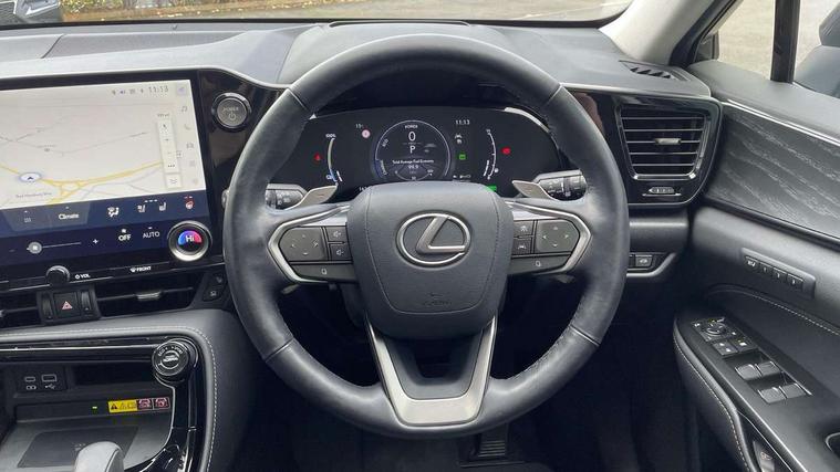 360 degree panoramic view monitor, 4 driving modes EV/Eco/Normal/Sport, 7" display in instrument binnacle, Blind spot monitoring with rear cross traffic alert, Bluetooth telephone connectivity, eCall emergency system, Electric speed sensitive power steering, Extended lexus safety+ system includes front cross traffic alert and lane change assist, Fully automated parking, Head up Display, Intelligent parking sensors - 4 front and 4 rear, Lane change flasher function, Lexus link connect - Cloud based navigation, cloud based voice assistant, always online, 14" HD touchscreen, embedded nav and faster CPU, Push button starter, Reversing camera with back guidelines, Service interval indicator, Tazuna cockpit with 7" improved meters display, 10" HUD and capacitive touch steering wheel switches, Wireless Apple CarPlay and wired Android Auto, Wireless Smartphone charger, 6.6 kW onboard charger, All Wheel Drive (AWD), Hybrid automatic transmission, Vehicle Dynamics Integrated Management (VDIM), Vehicle Stability Control (VSC), 10 speakers, 4 USB ports - 2 front, one USB C, 2 rear USB C, DAB Digital radio, 4 eye LED headlight with adaptive high beam, Automatic headlights, Digital rear view mirror, Double hidden exhaust pipes, Electric sunroof, Front and rear one touch power windows, with anti-jam protection, Headlight cleaners, Heated, auto-folding, auto-dimming outside mirrors with reverse tilt function and turn indicators, Illuminated door handles with puddle light, LED brake lights and rear lights with emergency brake signal, LED cornering lights, LED daytime running lights, LED front fog lights, LED Indicators, Power back door with kick sensor, Privacy glass, rear doors and tailgate, Rain sensor windscreen wipers, Rear side wing doors, Rear wiper, 12V accessory port centre console and luggage compartment, 2 cupholders in front centre console, 2 x fixed shopping bag hooks in boot, 2 x sun visors with vanity mirror and lamp, 3 seat bench in 2nd row, 4 way electrical lumbar adjustment for driver, 4 x tie down hooks in the boot, 60/40 split folding rear seat, 8 way driver/passenger electrically adjustable front seats, Adjustable rear seat backrest, Card holder installed in driver and passengers sun visors, Centre armrest with storage box, Door courtesy lights, Driver seat memory function, Dual zone climate control air conditioning system with humidity sensor, Front and rear head restraints, Front and rear textile carpet mats, Front passenger seat, Heated and ventilated front seats, Heated rear seats, Heated steering wheel, Leather gear lever, LED ambient lighting, LED interior illumination, Power adjustable leather steering wheel with paddle shifts, Rear centre armrest with 2 cupholders, Smooth leather upholstery, Whiplash Injury Lessening (WIL) feature (active headrest) for seats, 2 x Isofix child rear seat restraints, 3 point ELR front seatbelts with pretensioners, 3x3 point rear seat belts, ABS, Adjustable seat belt anchor points, Driver and front passenger 2 stage airbag, Driver/front passenger side airbags, Drivers knee airbag, E-Latch with safe exit assist, EBD + Brake Assist, ECB (Electronically Controlled Brake System), Electronic parking brake, Front and rear curtain shield airbags, Front center airbag, Front passenger seat cushion airbag, Hill assist control, Lexus safety system - dynamic radar cruise control, pre collision system day and night, lane tracing assist, road sign, OTA, Manual rear child locks, Passenger airbag cut-off device, Traction control, Tyre pressure warning, 2 x remote key fobs, Anti-theft system with alarm, intrusion sensor, glass breakage sensor, tilt sensor and engine immobiliser, Locking wheel nuts, Smart card key, Smart keyless entry, Speed sensitive auto door locking, Two motion door lock with double lock, VIN Window etching, Sumi blackwood inlay,