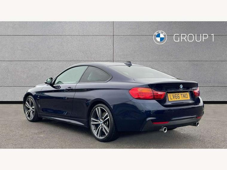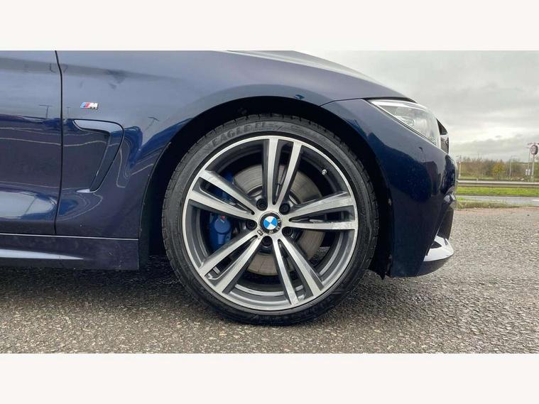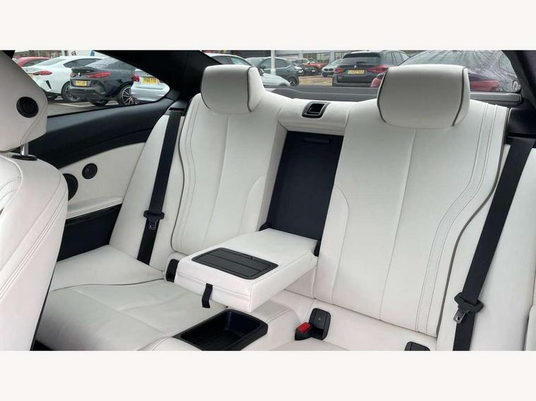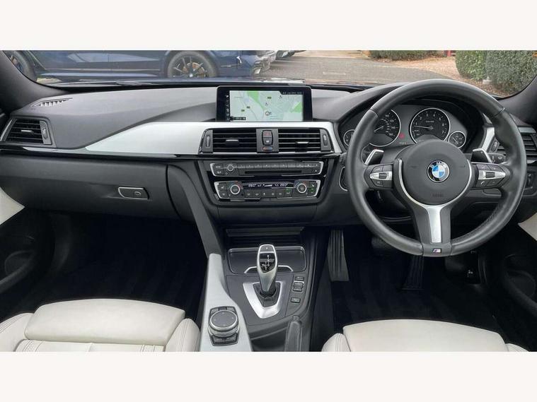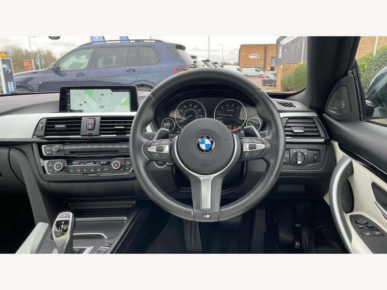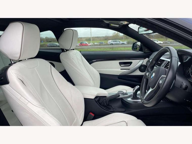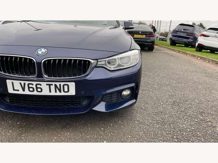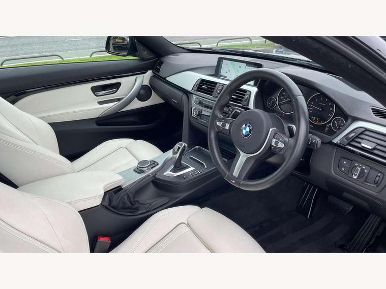 BMW Online services, BMW Teleservices, Brake pad wear indicator warning light, Check control system, Door/boot open warning, Front/rear Parking distance control, Lights on warning, Oil temperature gauge, On board computer, Outside temperature display, Run flat indicator, Service interval indicator, Stop/start button, Drive Performance Control, Sports function on gearbox with steering wheel mounted gearshift paddles, Auxiliary point for auxiliary devices, Bluetooth audio streaming, BMW professional radio/CD/MP3, DAB Digital radio, 2 speed adjustable intermittent wipers with wash/wipe function, Auto dimming rear view mirror, Body colour bumpers, Body colour door handles, Body colour door mirrors, Body colour roof mouldings, Chrome kidney grille with chrome vertical slats, Daytime running lights, Door sill finishers, Electric adjustable heated door mirrors, Electric front windows/one touch facility, Follow me home headlights, Front fog lights, Headlight washers, Heat insulating tinted glass, Heated windscreen washer jets, High gloss shadow line, M aerodynamic bodystyling, Rain sensor including auto headlights activation, Twin chrome exhaust tailpipes, Windscreen with grey shadeband, 12V sockets in front centre console and passenger footwell, 3 spoke leather M sport multifunction sports steering wheel, 4 grab handles, Anthracite headlining, Anthracite Velour floor mats, Dual zone climate control, Electrically adjustable front seats - driver seat with memory, Folding storage compartment with glasses holder + coin tray, Front centre armrest with storage compartment, Front cupholders x 2, Front head restraints, Front sports seats with electric side bolster adjustment, Front/rear armrests within door panels, Glovebox with lid, Heated front seats, Integrated rear head restraints, ISOFIX child seat preparation+airbag deactivation, Lashing eyelets in boot, Leather gearknob, Leather handbrake grip, Reach + rake adjustable steering column, Rear centre armrest, Storage compartment in rear centre console, Sunvisors with vanity mirrors, Toolkit located in luggage compartment, Extended lights package - 4 Series, 3 point seatbelts on all seats, ABS/EBD, Automatic Stability Control (ASC), BMW emergency call, Cornering brake control (CBC), Crash Sensor - activates hazard/interior lighting + unlocks doors, Driver seatbelt warning indicator, Driver/Front Passenger airbags, DSC+, Dynamic brake control, Dynamic Traction Control - DTC, Front seatbelt force limiters, Front seatbelt pretensioner, Front side airbags, Hill start assist, ITS head airbags for front/rear, Tyre pressure monitor, Warning triangle and first aid kit, Drive away door locking, Electronic immobiliser, Remote central locking, Remote control Thatcham category 1 alarm,