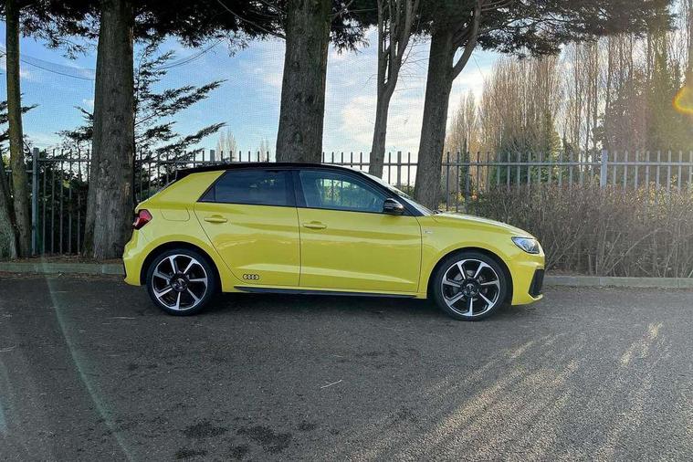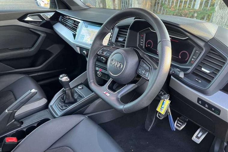 10.25" Digital instrument cluster display screen, Audi connect safety emergency and service including E-call, Audi drive select, Audi smartphone interface, Automatic start/stop system, Bluetooth interface, Driver's information system, Electromechanical power steering, Lane departure warning system, Service interval indicator, Speed limiter, Voice control system, Washer fluid level indicator, Sports suspension, 1 x SDXC card reader, 1 x USB type C and 1 USB type A charging points, Audi music interface, Bluetooth audio streaming, DAB Digital radio, MMI radio plus with 8.8" colour MMI display screen and MMI touch, Audi rings logo foil in black, Auto dimming rear view mirror, Body colour side sill mouldings, Darkened LED headlights with LED rear lights + dynamic rear indicators, Door sills with aluminium inlays and S Line logo, Electric front and rear windows, Exterior mirrors in contrast colour, Front side air inlets in grained matt black and C frame in titanium black, Heat insulating glass windscreen and side windows, Heated rear windscreen, Matt aluminium silver tailpipe trim, Matt black radiator grille frame, Matt platinum grey in front spoiler clip and rear diffuser clip, Metallic paint, Privacy glass - dark tinted rear and rear side windows from B-pillar backwards, Rain and light sensors, Rear fog lights, Rear wiper, S line badges on front wings, S line exterior bumpers, S line roof spoiler, Side air inlet frames titanium black, Side front spoiler lips in grained matt black, 12V socket in centre console with two cup holders, 3 rear seats, Black cloth headlining, Driver and passenger seat with manual height adjust with forward and backwards adjustment, Frequency alcantara/leather upholstery with contrast stitching in fine silver and S embossed logo + front sports seats, Front and rear black floor mats with contrast stitching in fine silver, Front head restraints, Height and reach adjustable steering wheel, ISOFIX child seat mounting in front passenger and rear outer seats, Leather gear knob with aluminium trim, Leatherette handbrake grip, Luggage compartment light with front and rear reading lights, Lumbar adjustment for front seats, Rear head restraints, Split folding rear seats, Stainless steel pedals, Black Styling pack - A1 Sportback, 3x3 point rear seatbelts, Audi pre-sense front with pedestrain and cyclist recognition, Brake assist function, Driver and front passenger airbag with front side and head airbags, Electronic Stability Control including ABS, EBD, ASR and EDL, Front and rear seatbelt reminder, Front passenger airbag deactivation switch, Hill hold assist, Seatbelt height adjustment for front seats, Seatbelt monitoring, Tyre pressure warning light, Warning triangle and first aid kit, Anti theft alarm, Anti theft wheel bolts and loose wheel warning, Immobiliser, Locking wheel bolts, Remote central locking with 2 remote folding keys, Aluminium trim for control switches, air vents and digital instrument cluster, Silver grey inlays polygon structure in diamond paint finish, Structured grey accent areas including air vents, door handle recesses and centre console in quartz paint finish, 18" 7 spoke rotor design alloy wheels in gloss anthracite black, diamond cut finish,