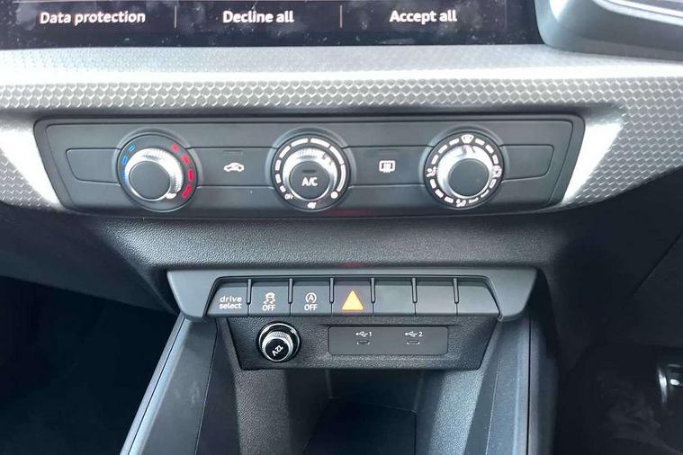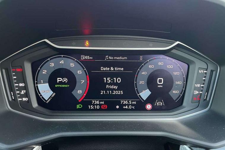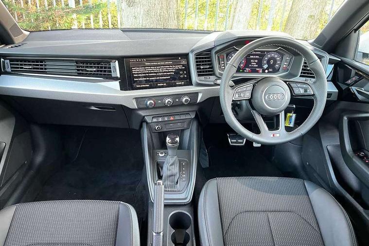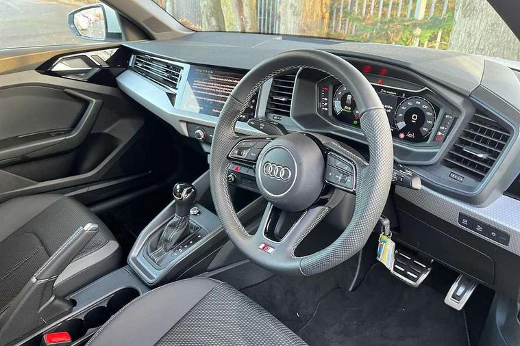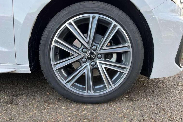 10.25" Digital instrument cluster display classis style instrument dials + speed, odometer, time, outside temperature, telephone menu + fuel level warning, Advanced driver attention and drowsiness monitor, Audi connect emergency call and service, Audi drive select, Audi remote connect and control, Audi smartphone interface, Bluetooth interface, Camera based traffic sign recognition, Cruise control, Driver's information system, Electromechanical power steering, Lane departure warning system, Rear parking sensor, Service interval indicator, Speed limiter, Start stop system with recuperation, Voice control system, Washer fluid level indicator, Sports suspension, 2 x USB type C connection points, 6 loudspeakers, DAB Digital radio, MMI radio plus with 10.1" colour MMI display screen and MMI touch, Auto dimming rear view mirror, Body coloured door mirrors, Door sill trims with aluminium inlays and S line logo in front, Electric front and rear windows, Electrically adjustable, heated, folding door mirrors with integrated LED side indicator, Front side air inlets in grained matt black and C frame in anthracite black, Headlight cleaning system, Heat insulating glass windscreen and side windows, Heated rear windscreen, High level LED brake light, LED daytime running lights, LED headlights with range control LED rear lights + dynamic rear indicators, Light and rain sensors, Privacy glass, Radiator grille and rear diffuser in matt anthracite black, Radiator protective grille frame in matt aluminium silver, Rear fog lights, Rear side wing doors, Rear wiper, S line badges on front wings, Side front spoiler lips in grained matt black, 12V socket in centre console with two cup holders, 3 rear seats with headrests, 3 seat bench in 2nd row, 3 spoke leather multi-function plus steering wheel features S badging and grips in perforated leather with contrast stitching, 40:60 Split folding rear seat or fully collapsed, Black cloth headlining, Front and rear velour black floor mats with contrast stitching in fine silver, Front head restraints, Front passenger seat, Height and reach adjustable steering wheel, Interior lighting includes roof module, front and rear reading lights and right luggage compartment lighting, ISOFIX child seat mounting for front passenger and outer rear seats including top tether attachment point of outer rear seats, Leather gear knob with aluminium trim, Leather handbrake grip, Manual air conditioning, Manual height adjustable for driver and front passenger seat, Manually adjustable lumbar support in front seats, Stainless steel pedals, Ambient lighting package - A1, Luggage compartment pack - A1, S line exterior styling pack - A1 Sportback, 3x3 point rear seatbelts, Audi pre-sense front with pedestrain and cyclist recognition, Brake assist function, Driver and front passenger airbag with front side and head airbags, Electronic Stability Control including ABS, EBD, ASR and EDL, Front passenger airbag deactivation switch, Hill hold assist, Manual rear child locks, Seatbelt height adjustment for front seats, Seatbelt monitoring, Tyre pressure loss indicator, Warning triangle and first aid kit, Anti theft alarm, Anti theft wheel bolts, Immobiliser, Remote control key with safelock, Aluminium trim for control switches, air vents and digital instrument cluster, Black dashboard, Silver grey inlays polygon structure in diamond paint finish, Structured grey accent surfaces insert of air vents, interior door handle recesses and centre console in quartz paint finish,