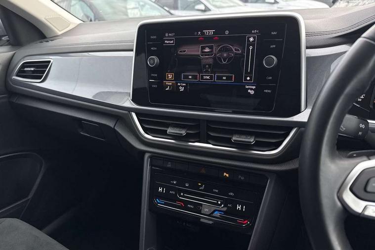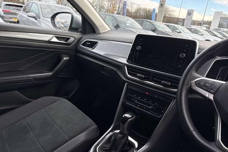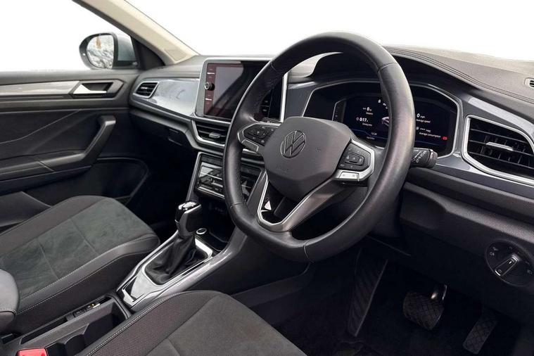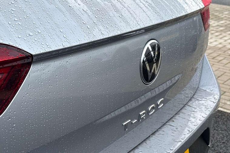 10.25" Digital cockpit pro, Advanced driver attention and drowsiness monitor, Bluetooth mobile phone interface, Emergency call service, Lane keeping system Lane Assist, Modified key software - reduce switch off time for key status change to Long no motion, Online services, Park assist including front and rear parking sensors, Service interval indicator, Tailgate/trunk lid release from outside, Think blue trainer driver tips and journey analysis, Warning sound and light for front seatbelts unfastened, Wireless app connect, Battery regeneration during braking, Start/stop function with battery regeneration, Diversity antenna for FM reception, Music playback - MP3, WMA and AAC files, Premium USB cable in choice of either Apple or Android smartphone compatibility, SD card slot, Simultaneous pairing of 2 compatible mobile devices, Title and cover art display, We Connect and We Connect Plus functionality, 3rd brake light, Auto dimming interior rear view mirror, Automatic hazard lights activation under emergency braking, Automatic headlight control with LED separate daytime running lights with coming/leaving home function, Body colour sports bumpers with silver metallic underbody fascia, Dynamic headlight range control with self adjusting whilst driving, Electrically adjustable and heated door mirrors, Extended roof spoiler, Exterior mirrors aspherical on driver side, convex on front passenger side, External USB type C socket and charging sockets, Front windscreen wiper with intermittent wipe and 4 position delay, Heated rear window, LED rear combination lamps, LED rear number plate lights, Light mode for poor weather, rain, fog or snow, Power windows with comfort operation and circuit breaker, Rain sensor, Rear exhaust tailpipe, Rear fog light on one side and reversing lights on both sides, Rear side wing doors, Rear wash/wipe with intermittent wipe setting, Remote electrically foldable door mirrors, puddle lights and reverse activated passenger's door mirror, 12V power socket in centre console, 3 rear head restraints, 3 seat bench in 2nd row, 4 load lashing points in luggage compartment, Air care climatronic air conditoning system with active combination filter and 2-zone temperature control, Chrome plated radiator grille inserts, air vent surrounds and light switch surrounds, Door and side trim panel with leatherette insert, Drawer under drivers seat, Front + rear carpet mats, Front centre armrest, Front comfort sports seats, Front cupholders x 2, Front footwell illumination, Front seat back storage pockets, Glove compartment door with light, Instrument lighting, white adjustable panel illumination, Interior ambient lighting and surround lighting, Interior light delay, Isofix child seat preparation, Leather gearshift handle, LED interior light with switch off delay/dimmer and 2 front/rear LED reading lights, Load-through provision with cup holder when folded down ('Unsplit rear seat bench, split folding backrest, with centre armrest), Luggage compartment lighting, Non-folding front passenger seat backrest, Single front passenger seat, Storage compartment in left and right luggage area, Storage compartment in rear doors, Storage compartments in driver and front passenger doors, Sunvisors with illuminated vanity mirrors, Variable boot floor, height adjustable and removable, Driver assistance pack without proactive passenger protection - T-Roc, 3 point height adj front seatbelts + pretensioners, 3 point seatbelts in outer rear with ECE label, ABS, Child locks on rear doors, City emergency braking and pedestrian monitoring, Driver and front passenger airbag with front passenger airbag deactivation, Driver and front passenger safety-optimised head restraints, Drivers seatbelt reminder, Electronic parking brake, Electronic Stability Control (ESC) inc EDL (Electronic Differential Lock) and ASR (Traction Control), Front and rear passengers curtain airbag system including front side airbags, Predictive pedestrian protection, Rear disc brakes, Two tone horn, Tyre pressure loss indicator, Volkswagen roadside assistance, Anti-theft alarm system with interior monitoring, backup horn, and towing protection, Remote central locking with SAFELOCK, radio remote control with 2 remote control folding keys, Trims for alloy wheels,