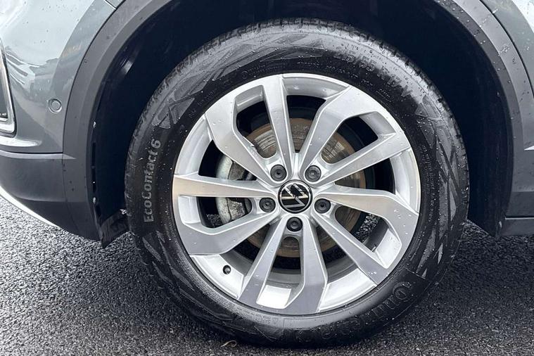 10.25" Digital cockpit pro, Advanced driver attention and drowsiness monitor, Emergency call service, Lane keeping system Lane Assist, Mobile phone interface, Modified key software - reduce switch off time for key status change to Long no motion, Online services, Park assist including front and rear parking sensors, Power assisted speed sensitive steering, Service interval indicator, Tailgate/trunk lid release from outside, Think blue trainer driver tips and journey analysis, Warning sound and light for front seatbelts unfastened, Wireless app connect, Wireless Smartphone charger, Battery regeneration during braking, Start/stop function with battery regeneration, DAB Digital radio, Diversity antenna for FM reception, Front and rear 6 speakers, Music playback - MP3, WMA and AAC files, Premium USB cable in choice of either Apple or Android smartphone compatibility, SD card slot, Simultaneous pairing of 2 compatible mobile devices, Title and cover art display, We Connect and We Connect Plus functionality, Auto dimming interior rear view mirror, Automatic hazard lights activation under emergency braking, Automatic headlight control with LED separate daytime running lights with coming/leaving home function, Body colour sports bumpers with silver metallic underbody fascia, Dynamic headlight range control with self adjusting whilst driving, Electrically adjustable and heated door mirrors, Extended roof spoiler, Exterior mirrors aspherical on driver side, convex on front passenger side, External USB type C socket and charging sockets, Front windscreen wiper with intermittent wipe and 4 position delay, Heated rear window, LED 3rd brake light, LED rear combination lamps, LED rear number plate lights, Light mode for poor weather, rain, fog or snow, Power windows with comfort operation and circuit breaker, Rain sensor, Rear exhaust tailpipe, Rear fog light on one side and reversing lights on both sides, Rear side wing doors, Rear wash/wipe with intermittent wipe setting, Remote electrically foldable door mirrors, puddle lights and reverse activated passenger's door mirror, 12V power socket in centre console, 3 rear head restraints, 3 seat bench in 2nd row, 4 load lashing points in luggage compartment, Air care climatronic air conditoning system with active combination filter and 2-zone temperature control, Chrome plated radiator grille inserts, air vent surrounds and light switch surrounds, Door and side trim panel with leatherette insert, Drawer under drivers seat, Front + rear carpet mats, Front centre armrest, Front comfort sports seats, Front cupholders x 2, Front footwell illumination, Front seat back storage pockets, Glove compartment door with light, Instrument lighting, white adjustable panel illumination, Interior ambient lighting and surround lighting, Interior light delay, Isofix child seat preparation, Leather gearshift handle, LED interior light with switch off delay/dimmer and 2 front/rear LED reading lights, Load-through provision with cup holder when folded down ('Unsplit rear seat bench, split folding backrest, with centre armrest), Luggage compartment lighting, Non-folding front passenger seat backrest, Single front passenger seat, Storage compartment in left and right luggage area, Storage compartment in rear doors, Storage compartments in driver and front passenger doors, Sunvisors with illuminated vanity mirrors, Variable boot floor, height adjustable and removable, Driver assistance pack without proactive passenger protection - T-Roc, 3 point height adj front seatbelts + pretensioners, 3 point seatbelts in outer rear with ECE label, ABS, Child locks on rear doors, City emergency braking and pedestrian monitoring, Driver and front passenger airbag with front passenger airbag deactivation, Driver and front passenger safety-optimised head restraints, Drivers seatbelt reminder, Electronic parking brake, Electronic Stability Control (ESC) inc EDL (Electronic Differential Lock) and ASR (Traction Control), Front and rear passengers curtain airbag system including front side airbags, Predictive pedestrian protection, Rear disc brakes, Two tone horn, Tyre pressure loss indicator, Volkswagen roadside assistance, Trims for alloy wheels,