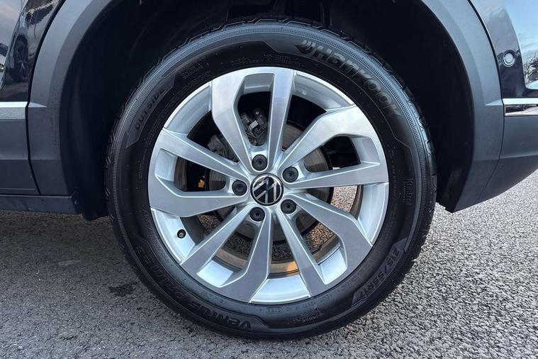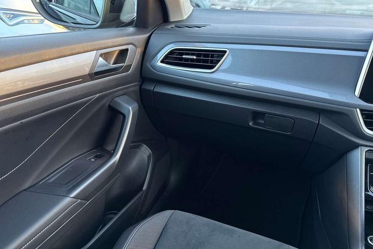 10.25" Digital cockpit pro, Advanced driver attention and drowsiness monitor, Emergency call service, Lane keeping system Lane Assist, Mobile phone interface, Modified key software - reduce switch off time for key status change to Long no motion, Online services, Park assist including front and rear parking sensors, Power assisted speed sensitive steering, Service interval indicator, Tailgate/trunk lid release from outside, Think blue trainer driver tips and journey analysis, Warning sound and light for front seatbelts unfastened, Wireless app connect, Wireless Smartphone charger, Battery regeneration during braking, Start/stop function with battery regeneration, DAB Digital radio, Diversity antenna for FM reception, Front and rear 6 speakers, Music playback - MP3, WMA and AAC files, Premium USB cable in choice of either Apple or Android smartphone compatibility, SD card slot, Simultaneous pairing of 2 compatible mobile devices, Title and cover art display, We Connect and We Connect Plus functionality, Auto dimming interior rear view mirror, Automatic hazard lights activation under emergency braking, Automatic headlight control with LED separate daytime running lights with coming/leaving home function, Body colour sports bumpers with silver metallic underbody fascia, Dynamic headlight range control with self adjusting whilst driving, Electrically adjustable and heated door mirrors, Extended roof spoiler, Exterior mirrors aspherical on driver side, convex on front passenger side, External USB type C socket and charging sockets, Front windscreen wiper with intermittent wipe and 4 position delay, Heated rear window, LED 3rd brake light, LED rear combination lamps, LED rear number plate lights, Light mode for poor weather, rain, fog or snow, Power windows with comfort operation and circuit breaker, Rain sensor, Rear exhaust tailpipe, Rear fog light on one side and reversing lights on both sides, Rear side wing doors, Rear wash/wipe with intermittent wipe setting, Remote electrically foldable door mirrors, puddle lights and reverse activated passenger's door mirror, 12V power socket in centre console, 3 rear head restraints, 3 seat bench in 2nd row, 4 load lashing points in luggage compartment, Air care climatronic air conditoning system with active combination filter and 2-zone temperature control, Chrome plated radiator grille inserts, air vent surrounds and light switch surrounds, Door and side trim panel with leatherette insert, Drawer under drivers seat, Front + rear carpet mats, Front centre armrest, Front comfort sports seats, Front cupholders x 2, Front footwell illumination, Front seat back storage pockets, Glove compartment door with light, Instrument lighting, white adjustable panel illumination, Interior ambient lighting and surround lighting, Interior light delay, Isofix child seat preparation, Leather gearshift handle, LED interior light with switch off delay/dimmer and 2 front/rear LED reading lights, Load-through provision with cup holder when folded down ('Unsplit rear seat bench, split folding backrest, with centre armrest), Luggage compartment lighting, Non-folding front passenger seat backrest, Single front passenger seat, Storage compartment in left and right luggage area, Storage compartment in rear doors, Storage compartments in driver and front passenger doors, Sunvisors with illuminated vanity mirrors, Variable boot floor, height adjustable and removable, Driver assistance pack without proactive passenger protection - T-Roc, 3 point height adj front seatbelts + pretensioners, 3 point seatbelts in outer rear with ECE label, ABS, Child locks on rear doors, City emergency braking and pedestrian monitoring, Driver and front passenger airbag with front passenger airbag deactivation, Driver and front passenger safety-optimised head restraints, Drivers seatbelt reminder, Electronic parking brake, Electronic Stability Control (ESC) inc EDL (Electronic Differential Lock) and ASR (Traction Control), Front and rear passengers curtain airbag system including front side airbags, Predictive pedestrian protection, Rear disc brakes, Two tone horn, Tyre pressure loss indicator, Volkswagen roadside assistance, Trims for alloy wheels,