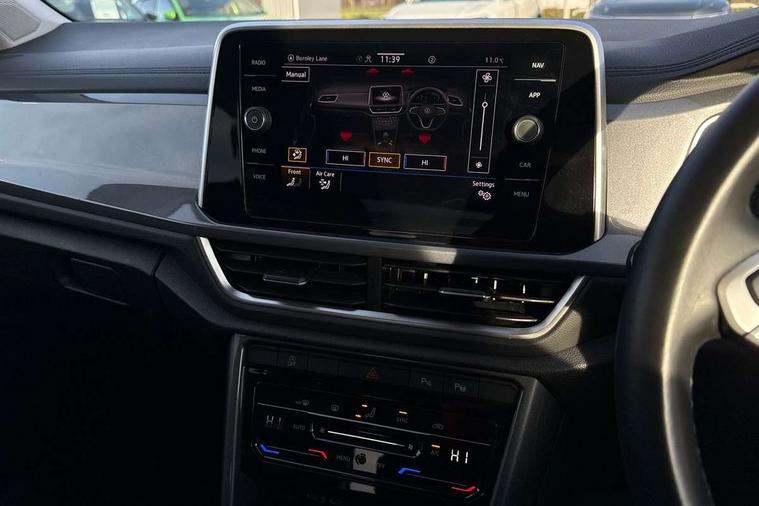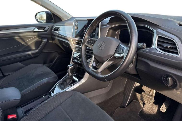 10.25" Digital cockpit pro, Advanced driver attention and drowsiness monitor, Emergency call service, Lane keeping system Lane Assist, Mobile phone interface, Modified key software - reduce switch off time for key status change to Long no motion, Online services, Park assist including front and rear parking sensors, Power assisted speed sensitive steering, Service interval indicator, Tailgate/trunk lid release from outside, Think blue trainer driver tips and journey analysis, Warning sound and light for front seatbelts unfastened, Wireless app connect, Wireless Smartphone charger, Battery regeneration during braking, Start/stop function with battery regeneration, DAB Digital radio, Diversity antenna for FM reception, Front and rear 6 speakers, Music playback - MP3, WMA and AAC files, Premium USB cable in choice of either Apple or Android smartphone compatibility, SD card slot, Simultaneous pairing of 2 compatible mobile devices, Title and cover art display, We Connect and We Connect Plus functionality, Auto dimming interior rear view mirror, Automatic hazard lights activation under emergency braking, Automatic headlight control with LED separate daytime running lights with coming/leaving home function, Body colour sports bumpers with silver metallic underbody fascia, Dynamic headlight range control with self adjusting whilst driving, Electrically adjustable and heated door mirrors, Extended roof spoiler, Exterior mirrors aspherical on driver side, convex on front passenger side, External USB type C socket and charging sockets, Front windscreen wiper with intermittent wipe and 4 position delay, Heated rear window, LED 3rd brake light, LED rear combination lamps, LED rear number plate lights, Light mode for poor weather, rain, fog or snow, Power windows with comfort operation and circuit breaker, Rain sensor, Rear exhaust tailpipe, Rear fog light on one side and reversing lights on both sides, Rear side wing doors, Rear wash/wipe with intermittent wipe setting, Remote electrically foldable door mirrors, puddle lights and reverse activated passenger's door mirror, 12V power socket in centre console, 3 rear head restraints, 3 seat bench in 2nd row, 4 load lashing points in luggage compartment, Air care climatronic air conditoning system with active combination filter and 2-zone temperature control, Chrome plated radiator grille inserts, air vent surrounds and light switch surrounds, Door and side trim panel with leatherette insert, Drawer under drivers seat, Front + rear carpet mats, Front centre armrest, Front comfort sports seats, Front cupholders x 2, Front footwell illumination, Front seat back storage pockets, Glove compartment door with light, Instrument lighting, white adjustable panel illumination, Interior ambient lighting and surround lighting, Interior light delay, Isofix child seat preparation, Leather gearshift handle, LED interior light with switch off delay/dimmer and 2 front/rear LED reading lights, Load-through provision with cup holder when folded down ('Unsplit rear seat bench, split folding backrest, with centre armrest), Luggage compartment lighting, Non-folding front passenger seat backrest, Single front passenger seat, Storage compartment in left and right luggage area, Storage compartment in rear doors, Storage compartments in driver and front passenger doors, Sunvisors with illuminated vanity mirrors, Variable boot floor, height adjustable and removable, Driver assistance pack without proactive passenger protection - T-Roc, 3 point height adj front seatbelts + pretensioners, 3 point seatbelts in outer rear with ECE label, ABS, Child locks on rear doors, City emergency braking and pedestrian monitoring, Driver and front passenger airbag with front passenger airbag deactivation, Driver and front passenger safety-optimised head restraints, Drivers seatbelt reminder, Electronic parking brake, Electronic Stability Control (ESC) inc EDL (Electronic Differential Lock) and ASR (Traction Control), Front and rear passengers curtain airbag system including front side airbags, Predictive pedestrian protection, Rear disc brakes, Two tone horn, Tyre pressure loss indicator, Volkswagen roadside assistance, Trims for alloy wheels,
