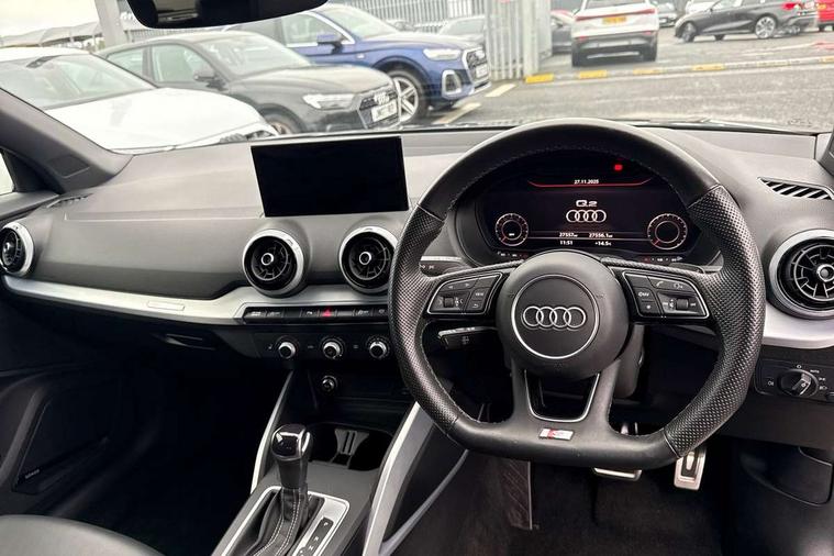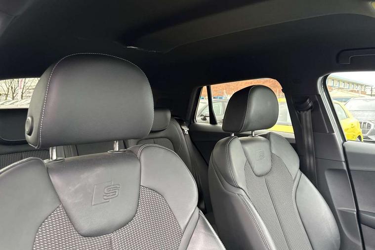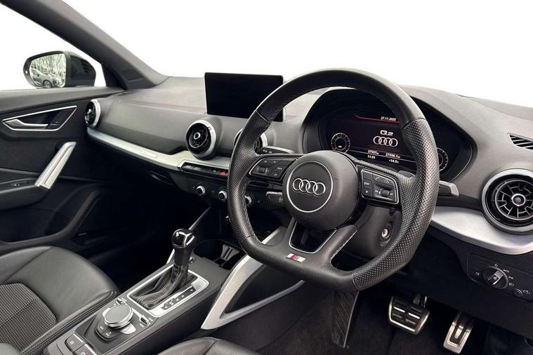 Audi connect navigation and infotainment includes innovative services, Audi connect remote and control connects your vehicle to your smartphone, Audi drive select - Power steering assistance + engine + gearshift, Audi drive select with efficiency, Audi smartphone interface, Audi virtual cockpit, Automatic start/stop system with recuperation, Bluetooth interface includes bluetooth audio streaming, Cruise control, E-call, MMI navigation plus with MMI touch, Power operated tailgate, Progressive steering, Rear parking sensors, 2 x SDXC card reader, 6 passive loudspeakers, DAB Digital radio, DVD Drive, Auto dimming rear view mirror, Black window trims, Bumper in full body colour paint finish, Electrically adjustable, folding, auto dimming and heated door mirrors with integrated LED side indicators, Front windscreen with grey tinted sunband, LED daytime running lights, LED headlights with LED rear lights, LED third brake light, Privacy glass - dark tinted rear and rear side windows from B-pillar backwards, Rear side wing doors, Rear wiper, Variable front intermittent wipers, Wheel arch trims in manhattan grey, 12V socket in front, 3 seat bench in 2nd row, 3 spoke flat bottomed multi-function leather sport steering wheel with gear shift paddles, 4-way electric lumbar support for front seats including seat height adjustment for both front seat, 60/40 split folding rear seat bench, Black cloth headlining, Front and rear head restraints, Front centre armrest, Front/rear floor mats, Height/reach adjust steering wheel, Illuminated door sill trims with S logo, ISOFIX child seat mounting in front passenger and rear outer seats, Single front passenger seat, Stainless steel pedals, Black styling pack - Q2, 3x3 point rear seatbelts, 6 airbags - Front, curtain and front side airbags, Electromechanical parking brake, Electronic stabilisation control including ABS, ASR and EDL, Front passenger airbag deactivation, Hill hold assist, Pre-sense front with pedestrian recognition, Seatbelt monitoring, Tyre pressure warning light, Warning triangle and first aid kit, Anti theft alarm, Anti theft wheel bolts, Electronically operated child locks, Remote central door locking, Aluminium interior element, Matt brushed aluminium trim inlays, Tool kit,