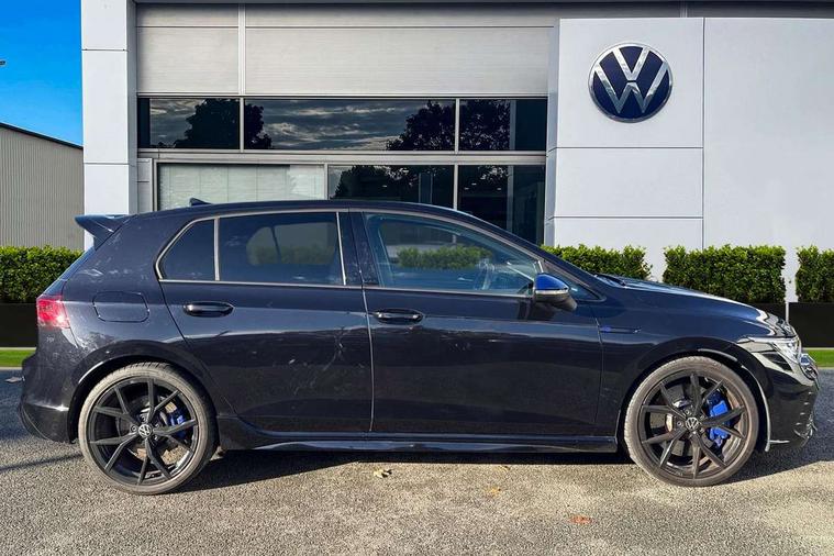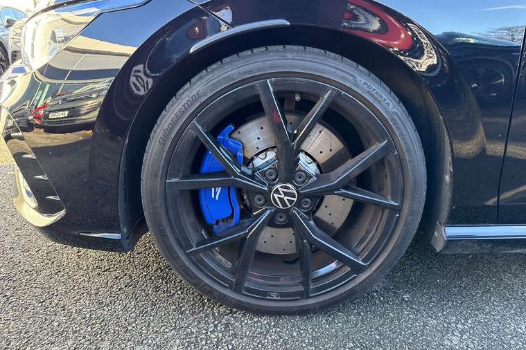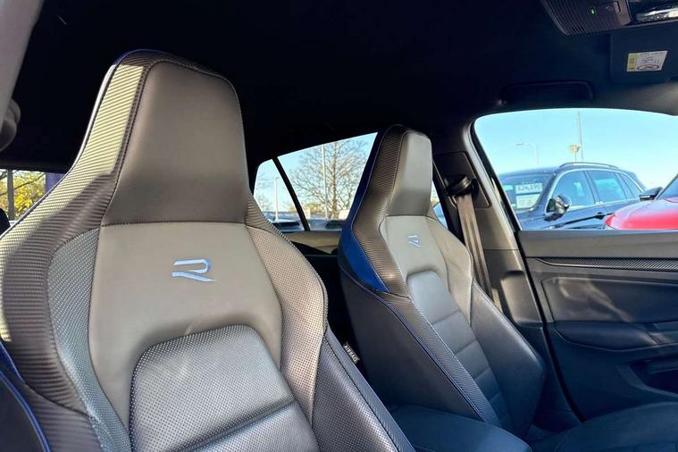 Adaptive cruise control (ACC) with speed limiter and front assist (reacting to vehicles pedestrians and cyclists), Car2X communication, Digital cockpit pro - 10.25" high resolution TFT dash display screen with customizable menus and information, Drive acoustics, Driver alert system, Dynamic road sign display, eCall - Emergency call service for SOS calls to emergency response, Lane assist, Lane change assistant, Mobile phone interface with wireless inductive charging function, Multifunction camera for distance control, PAS, Speedo, rev counter, electronic odometer, trip, service interval display, exterior temperature and fuel gauge, Start/Stop function, Travel assist with emergency side assist with electrically foldable door mirrors, USB-C ports in the front and rear centre console with increased charging performance, Warning buzzer and light for front seatbelts unfastened, Wireless app connect, 4Motion 4 wheel driver, Emotion start function, Front differential lock, Petrol Particulate Filter, XDS electronic differential lock for improved traction and handling, Premium USB cable in choice of either Apple or Android smartphone compatibility, "20" badge on the B-Pillar, Auto dimming rear view mirror, Automatic headlamp activation with Coming home and Leaving home feature, Automatic headlights, Blue 'R' logo on front grille, side fenders and rear tailgate, Body colour bumpers, Body colour door handles, Body colour rear roof spoiler, Front and rear electric windows, Golf 20 years styling - including '20 R' logo projection from door mirrors, Heat insulating glass windscreen, Heated rear windscreen, High level 3rd brake light, Highway light, Illuminated front grille, IQ.Light - LED Matrix headlights, dynamic headlight control with advanced high beam control matrix dipped main beam + LED DRL + 22 LED lights, LED front fog lights with 5 honeycomb design, LED License plate illumination, LED rear combination lamp inlcuding dynamic turn signal, Performance rear spoiler, Rain sensor, Rear fog light on one side and reversing lights on both sides, Rear side wing doors, Rear tinted glass 65% light absorbing from B pillar backwards, Rear windscreen washer and wiper with interval delay, Remote electrically heated, adjustable and foldable door mirrors, including door mirror puddle lights and reverse activated kerb-view adjustment on pa, Welcome light, 12V socket in front centre console, 12V socket in luggage compartment, 3 rear head restraints, 3 seat bench in 2nd row, 3 zone climate with controls in the rear, Aluminium gear knob, Ambient lighting - Customisable 30 colour ambient lighting, Ambient lighting, exterior illuminated styling elements at the sides, Black roof lining, Blue R logo on the multifunction sport steering wheel and on the vehicle key cap, Brushed stainless steel pedals, Chrome plated surround to electric mirror button, window switch and air vent surrounds, Door insert in Artvelours, Drivers and front passengers sun visors with vanity mirrors, Front + rear carpet mats in recycled material, Front centre armrest with storage compartment, Front cupholders x 2, Front passenger seat, Front reading lights x 2 incorporating LED technology, Front seat lumbar support adjuster, Glovebox, Height adjustable front seats, Height and reach adjustable steering wheel, Isofix child seat preparation for 2 rear child seats and front passenger seat, Leatherette door armrests and centre armrest, Luggage compartment lighting, Nappa leather upholstery with heated, active climate control sports comfort seats, electric adjust driver seat, memory, leather door insert, R leather wrapped multi function sports heated steering wheel with extended paddle shift, Removable luggage compartment cover, Split folding backrest with centre armrest and unsplit rear seat bench, Sports seats with integrated headrest in Nappa leather front and outer rear seats with R logo in upper backrest, Woven fabric storage compartments in front and rear doors, R styling pack - Golf, Winter pack - Golf R Line/GTE/GTD/GTI/GTI Clubsport/R/Alltrack, 3 point height adj front seatbelts + pretensioners, 3 rear three point seatbelts, ABS, Blue brake callipers in front with R logo, Child locks on rear doors, Driver and front passenger airbag with front passenger airbag deactivation, Drivers and front passengers safety optimised head restraints, Electronic parking brake with auto hold, ESC (Electronic Stability Control), Extended pedestrian protection measures, Front and rear passengers curtain airbag system including front side airbags, Front centre airbag, Front disc brakes, Front side airbags with curtain airbags, Rear disc brakes, Two tone horn, Tyre pressure monitoring system, Alarm with interior protection and deactivation via infotainment system, Electronic engine immobiliser, Keyless entry with start/stop button on centre console, High gloss black centre console, High quality decorative trim in Genuine Carbon on dash panels and door trims, Soul dashboard, Tyre mobility kit Includes 12V compressor and tyre sealant,