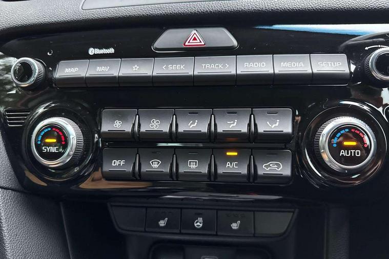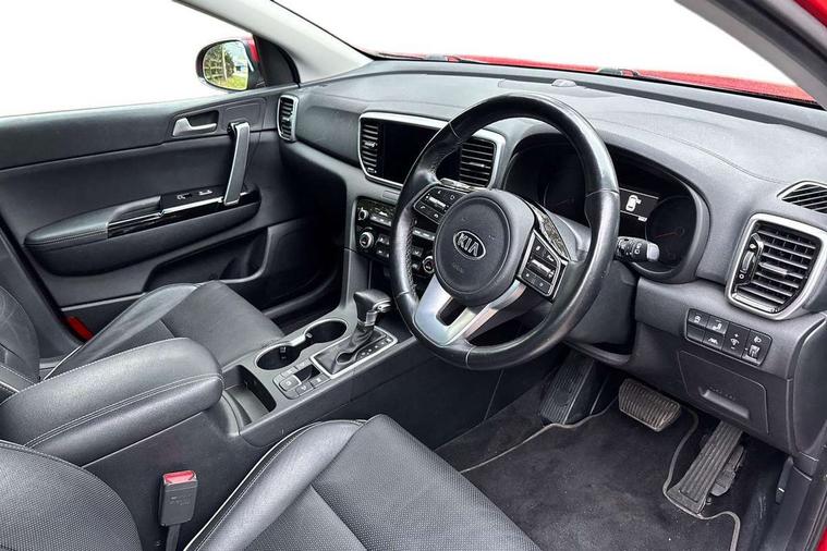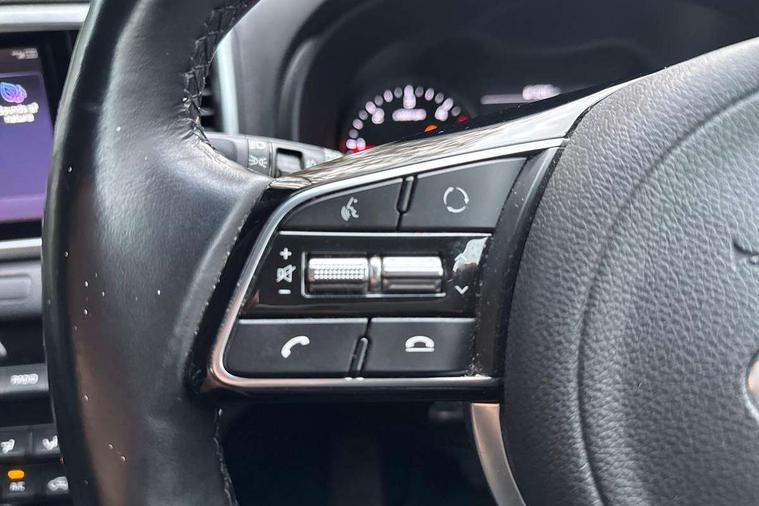 4.2" supervision colour cluster display, 8" touchscreen satellite navigation with European mapping and traffic messaging channel, Android auto with voice control, Apple car play with voice control, Blind spot collision warning, Cruise control + speed limiter, Drive mode selector, Driver attention warning, Emergency stop signalling system, Front parking sensor, Kia connected services featuring TomTom live, Lane keep assist, Rear parking sensor, Reversing camera, Speed limit information, Speed sensitive power steering, Telematics system with UVO connect services, Trip computer, Windscreen washer level indicator, Intelligent Stop and Go, 6 speaker audio system, Bluetooth audio streaming, DAB Radio with MP3, Rear USB port, Steering wheel mounted audio controls, USB/iPod/auxiliary input connections, All round electric windows with drivers auto up/down function, Auto dimming rear view mirror, Automatic lighting control, Automatic window defogger, Black wheel arch body mouldings and side sills with chrome insert, Body colour door handles with chrome inserts, Body colour door mirrors, Chrome front bumper insert, Chrome grille surround, Chrome window surround, EcoDynamics + Badge, Electric panoramic glass sunroof (Electric one touch with safety function), Electrically adjustable/heated/folding door mirrors with LED indicators, Front wiper de-icer, High beam assist, High gloss black diamond mesh radiator grille, LED Bi-Function headlights, LED daytime running lights, LED rear lights, Privacy glass - Rear windows and tailgate, Projection front fog lights with matt black surround, Rain sensing front wipers, Rear spoiler, Rear wiper, Roof rails, Shark fin antenna, Silver painted front and rear skid plates, Tinted glass, Trailer stability assist, Welcome and follow-me home light functionality, Wide view drivers door mirror, 10 way driver/8 way passenger electrically power adjustable seats, 12V power in front and rear centre console, 3 x passenger assist grips, 60/40 split folding rear seat, Air filter, All-round height adjustable headrests, Aluminium door scuff plates, Centre console storage box, Driver and front passenger side sunvisors with illuminated vanity mirrors, Drivers seat power lumbar support, Dual zone automatic air conditioning, Front and rear door storage, Front cabin LED map light with sunglasses case, Front door courtesy reflectors, Front seat and rear pockets, Front/rear centre armrests, Gear shift indicator, Glovebox illumination, Heated front and outer rear seats, Heated steering wheel, Interior door lock/unlock function, ISOFIX Child seat top tethers and anchor fixings, Leather steering wheel, Leather trimmed door armrests, Leather trimmed gearshift, Leather upholstery, Light grey headlining, Luggage area LED light, Luggage area load cover, Luggage net hooks, Rear centre armrest with cupholder, Rear coat hooks, Satin chrome interior door handles, Side cabin LED lights, Tilt/telescopic adjustable steering wheel, Ventilation ducts to rear compartment, Active front headrests, All round 3-point seatbelts, Anti-lock braking system with electronic brakeforce distribution, Dual front side airbags, Electronic parking brake, Electronic stability control with downhill brake control, Front passenger airbag cut-off switch, Front seatbelt pretensioners + load limiters, Height adjustable front seatbelts, Hill start assist control (HAC), Impact sensing auto door unlocking, Rear door child safety locks, Traction control, Twin curtain airbags with roll over sensor, Twin front airbags, Tyre pressure monitoring system, Advanced anti-theft system including immobiliser and alarm, Door deadlocks, Engine Start/Stop Button with Smart Entry System, Locking wheel nuts, Speed sensitive auto door locking, Visible vehicle identification number, High gloss black centre fascia, 19" Alloy wheels, Tyre mobility kit,