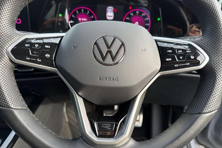 Adaptive cruise control (ACC) with speed limiter and front assist (reacting to vehicles pedestrians and cyclists), Car2X communication, Digital cockpit pro - 10.25" high resolution TFT dash display screen with customizable menus and information, Driver alert system, Dynamic road sign display, eCall - Emergency call service for SOS calls to emergency response, Lane assist, Mobile phone interface with wireless inductive charging function, Multifunction camera for distance control, PAS, Speedo, rev counter, electronic odometer, trip, service interval display, exterior temperature and fuel gauge, Start/Stop function, USB-C ports in the front and rear centre console with increased charging performance, Warning buzzer and light for front seatbelts unfastened, Wireless app connect, Petrol Particulate Filter, XDS electronic differential lock for improved traction and handling, Premium USB cable in choice of either Apple or Android smartphone compatibility, Ambient lighting, exterior illuminated styling elements at the sides, Auto dimming rear view mirror, Automatic headlamp activation with Coming home and Leaving home feature, Automatic headlights, Body colour door handles, Body colour door mirrors with integrated indicators, Body colour rear roof spoiler, Electrically heated and adjustable door mirrors with memory feature, Front and rear electric windows, Heat insulating glass windscreen, Heated rear windscreen, High level 3rd brake light, Highway light, LED License plate illumination, R Line body coloured bumpers, Rain sensor, Rear fog light on one side and reversing lights on both sides, Rear lights incorporating LED technology, Rear side wing doors, Rear tinted glass 65% light absorbing from B pillar backwards, Rear windscreen washer and wiper with interval delay, Welcome light, 12V socket in front centre console, 12V socket in luggage compartment, 3 rear head restraints, 3 seat bench in 2nd row, Ambient lighting - Customisable 30 colour ambient lighting, Black roof lining, Brushed stainless steel pedals, Chrome plated surround to electric mirror button, window switch and air vent surrounds, Drivers and front passengers sun visors with vanity mirrors, Front + rear carpet mats, Front centre armrest with storage compartment, Front cupholders x 2, Front passenger seat, Front reading lights x 2 incorporating LED technology, Front seat lumbar support adjuster, Front sports seats, Glovebox, Height adjustable front seats, Height and reach adjustable steering wheel, Isofix child seat preparation for 2 rear child seats and front passenger seat, Luggage compartment lighting, R Line door and side trim panel, R Line front seats integrated head restraints, R-Line leather wrapped multi function sports heated steering wheel, Removable luggage compartment cover, Sardegna cloth upholstery with front and outer rear seats Art Velour inner sides of bolsters, Split folding backrest with centre armrest and unsplit rear seat bench, Titanium black instrument panel, Woven fabric storage compartments in front and rear doors, 3 point height adj front seatbelts + pretensioners, 3 rear three point seatbelts, ABS, Child locks on rear doors, Driver and front passenger airbag with front passenger airbag deactivation, Drivers and front passengers safety optimised head restraints, Electronic parking brake with auto hold, ESC (Electronic Stability Control), Extended pedestrian protection measures, Front and rear passengers curtain airbag system including front side airbags, Front centre airbag, Front disc brakes, Front side airbags with curtain airbags, Rear disc brakes, Two tone horn, Tyre pressure monitoring system, Alarm with interior protection and deactivation via infotainment system, Electronic engine immobiliser, Carbon grey decorative inserts in dash and front door trim panels, High gloss black centre console,