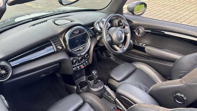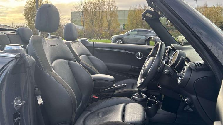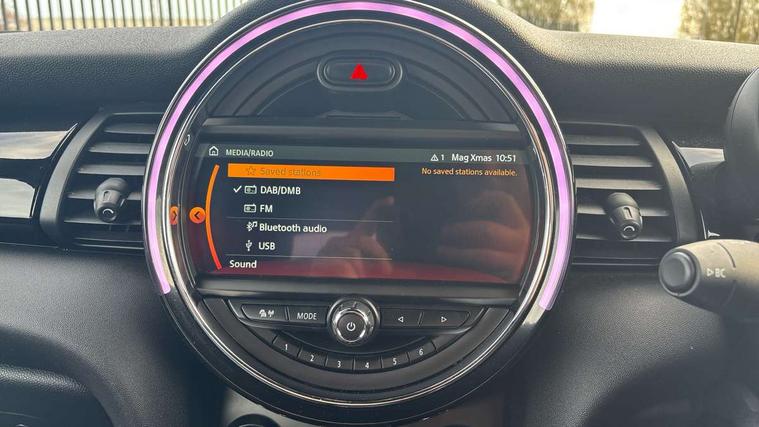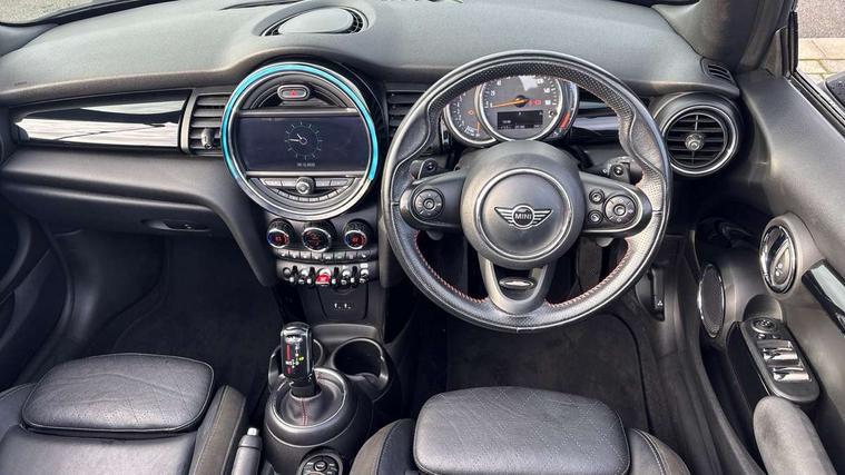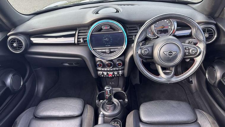 Acoustic seat-belt warning, Basic bluetooth function with USB audio, Brake fluid level warning light, Brake pad wear indicator warning light, DTC - Dynamic traction control, Exterior temperature gauge, Intelligent emergency call, MINI TeleServices, Oil level indicator, On board computer, Personal Profile, Service interval indicator, Servotronic PAS, Stop/start button, Electronic differential lock, 6.5" touchscreen, Auxiliary input socket, DAB digital radio module, Anti dazzle mirror, Anti trapping/one touch open close front windows, Body colour scoop integrated into engine- compartment lid, Body coloured bumpers, Chrome bezels around rear lights and headlights, Chrome door handles, Chrome plated fuel cap, Chrome plated radiator grille, Electric front windows, Electrically adjustable door mirrors, Follow me home headlights, Heated door mirrors, Heated rear window with auto timer, Heated windscreen washer jets, High gloss black tailgate handle, Honeycomb radiator grille, LED fog lights, LED rear lights, Metal look door sill finishers, Twin chromed exhaust pipes, White indicator lights, 2 rear head restraints, 4 boot load lashing points, 50/50 split folding rear seats, 6-way manually adjustable driver's seat, Active carbon filter, Auxiliary socket in centre console storage compartment, Centre console storage, Driver/passenger sunvisors and vanity mirrors, Easy entry seats, Front and rear cupholders, Front head restraints, Front sports seats with front seat backrest storage nets, Gear/selector and handbrake in artificial leather, Glovebox, Internal chrome door handles, Isofix child seat preparation, Luggage compartment lighting, Multifunction steering wheel, Reach + rake adjustable steering column, Stainless steel pedals with rubber inserts, Storage compartments in doors, Toolkit in luggage compartment, 3 point seatbelts, ABS/EBD, ASC+T, CBC - (Cornering brake control), Crash Sensor - activates hazard/interior lighting + unlocks doors, Driver and passenger airbags, Driver/front passenger side airbags, DSC - Dynamic Stability Control, Fuel cut off safety device, Head airbags, Hill start assist, Passenger airbag deactivation system, Seatbelt pretensioners, Two tone horn, Tyre pressure warning, Drive away door locking, Keyless Start, Locking wheel bolts, Remote central locking/doors+fuel cap+tailgate, Second remote key, Thatcham category 1 alarm + immobiliser,