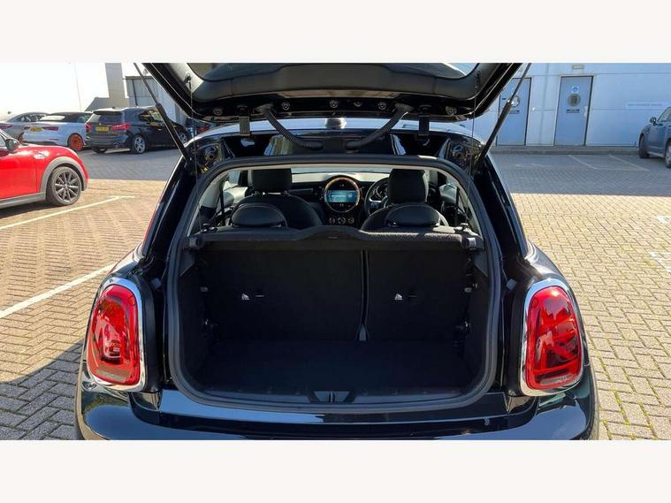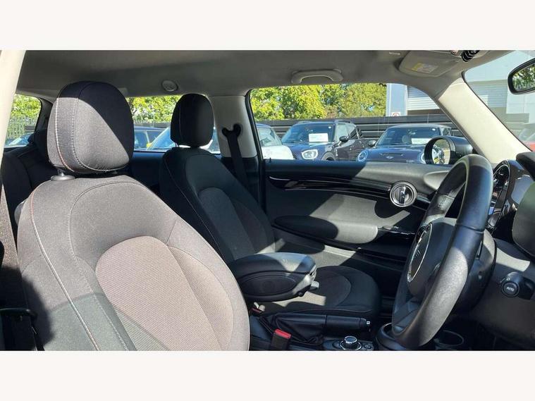 Apple CarPlay, Automatic start/stop function with brake energy recuperation, Compatible mobile phone bluetooth with audio streaming, Cruise control with brake assist, Electro-mechanical speed dependant steering assistance, Flexible car sharing preparation, Instrument cluster, Mini E-call, MINI TeleServices, On board computer, Service interval indicator, Double Vanos system, Fully variable valve control, High precision injection, Performance Control, Steptronic transmission with double clutch, 8.8" touchscreen with LED ring, FM tuner and DAB digital radio, 3rd brake light, Automatic headlight activation switch, Body colour fuel filler cap, Chrome border high gloss black slats radiator grille, Dynamic brake lights, Electric front windows, Exhaust tailpipe on left with chrome finisher, Heated rear window, Heated windscreen washer jets, LED headlight with closed ring and daytime driving lights, Metal door sill strips with MINI imprint, Model logo Cooper on right of tailgate, Rain sensor window wipers, Rear fog lights, Rear LED lights with union jack design, Rear window wiper, Side scuttle panel with integrated indicator, Sun/heat protection glass, White indicator lenses, 12V Accessory socket in centre console, 2 seat bench in 2nd row, 4 lashing eyes in luggage compartment, 60/40 split folding rear seat, Ambient lighting, Carbon black colour line - Knee roll and door armrest, Chrome interior highlights, Cupholders, Front and rear head restraints, Front and rear isofix with front passenger airbag deactivation, Front floor mats in velour, Glove compartment, Height and length steering column adjustment, Interior lighting with 12 different colours across the dashboard, underneath door bezel with illuminated laser-engraved design on central display, Leatherette gearshift lever and handbrake gaiters, LED reading lights, vanity mirror lights, front foot well light and spotlight on front seats, Manual air conditioning, Mechanical seat adjustment - forward/back & backrest for front seats and driver seat height adjust, Multifunction steering wheel, Passenger seat height adjuster, Satellite grey headlining including grab handles and clothes hooks, Single front passenger seat, Sport leather steering wheel with speed limiter and audio/communication controls, Storage compartments in doors, Sunvisors with vanity mirrors, 3 point seatbelts on all four seats, 6 Airbags - front, side, head and seat belt tensioners, Anti-lock braking system (ABS), DSC - Dynamic Stability Control, Front and rear disc brakes, Single tone fanfare horn, Tyre pressure monitoring system, Alarm system with tilt sensor, monitoring doors, bonnet interior and tailgate, Electronic vehicle immobiliser, Start/stop toggle with keyless go, Piano black interior trim, Tool kit, Tyre repair kit,