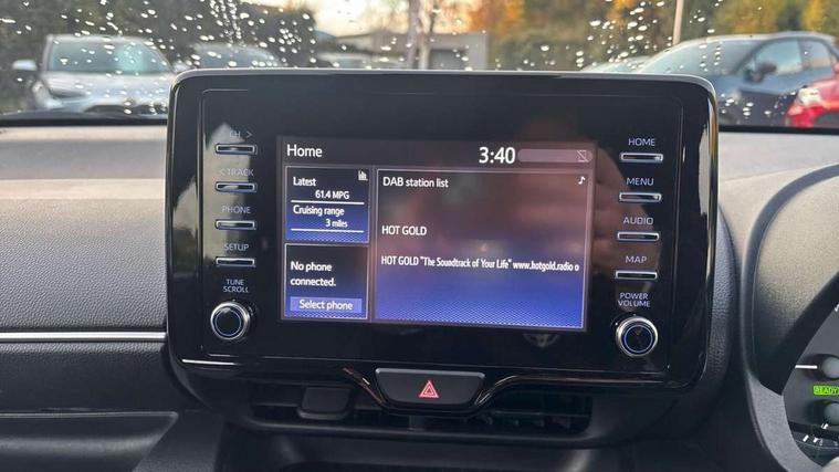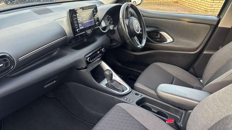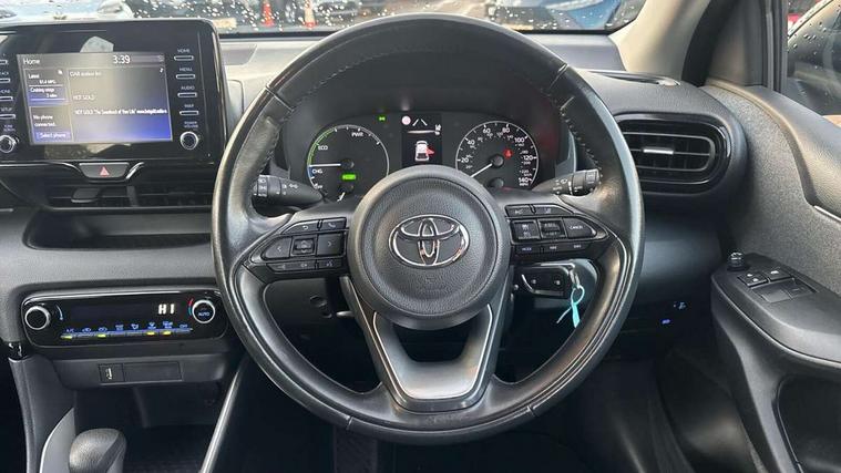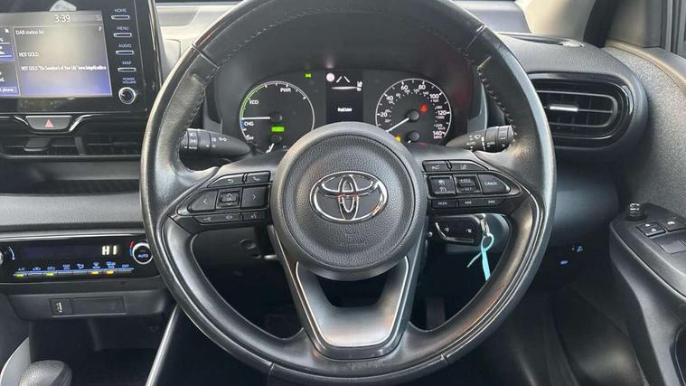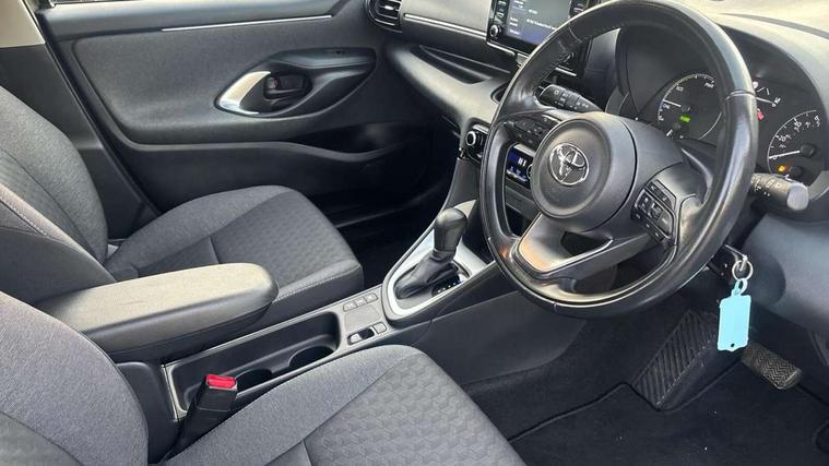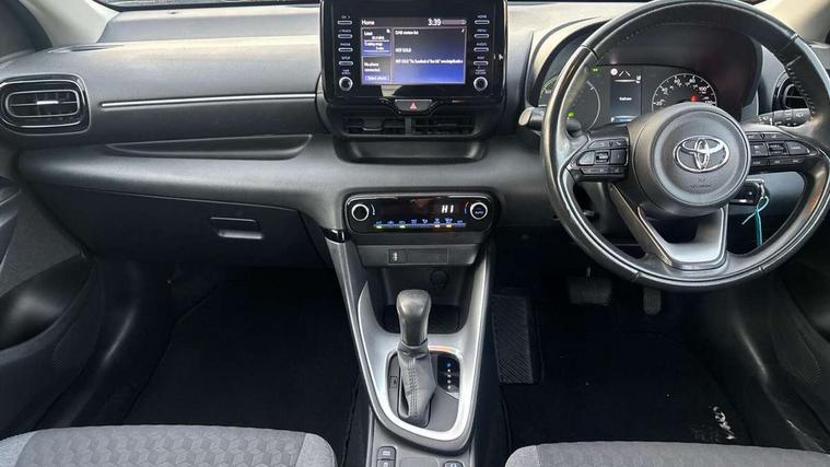 4.2" coloured LED TFT multi information display with analogue speedometer, Adaptive cruise control, Adjustable speed limit with speed warning, Bluetooth connectivity, E-call, Electric power steering, Hybrid energy display, Multi information display switches on steering wheel, Reversing camera, Smartphone integration with Apple CarPlay and Android auto, Vehicle Stability Control (VSC), 4 speakers, 7" Multimedia display touch screen, Toyota Touch 2 with DAB, USB connection, Acoustic windscreen glass, Auto windscreen wipers, Automatic headlights, Body coloured door mirrors, Electric adjustable heated door mirrors, Follow me home headlights, Front auto power windows with anti jam protection, Halogen projector headlights, LED daytime running lights, LED High mounted stop lamp, Rear spoiler, Shark fin antenna, Turning signal integrated indicators in door mirrors, 3 adjustable rear headrests, 3 spoke leather steering wheel, 60/40 split folding rear seat, Active headrests, Adjustable boot height, Auto air conditioning, Coat hooks in rear grab handles, Cup holders (2 front & door), Data Communication Module (DCM) connected services, Fabric upholstery, Front armrest, Glovebox, Height adjustable driver's seat, Isofix seat fixing, Leather gearshift, Pollen filter, Shopping bag hooks, Tilt/telescopic steering column, 3 point seatbelts on all rear seats, ABS+EBD+Brake assist, Electronic parking brake, Emergency brake light system (EBS), Front passenger airbag on/off switch, Front seatbelt reminder, Hill start assist control (HAC), Rear child proof door locks, Rear seat belt reminder, Supplemental Restraint System (SRS) 8 airbags: Driver & passenger's airbags, dual side curtain airbags, side impact airbags, front centre airbag, Toyota Safety Sense 2, Precollison + Night time Pedestrian & Cyclist Detection, Lane Trace Assist, Auto High Beam, Intelligent ACC & Road Sign Assist, Tyre pressure warning system, Alarm/immobiliser, Remote powered central double locking doors, Soft touch instrument panel, 16" Silver alloy wheels, Space saver spare wheel,
