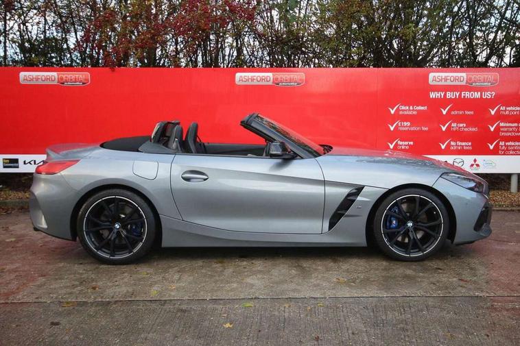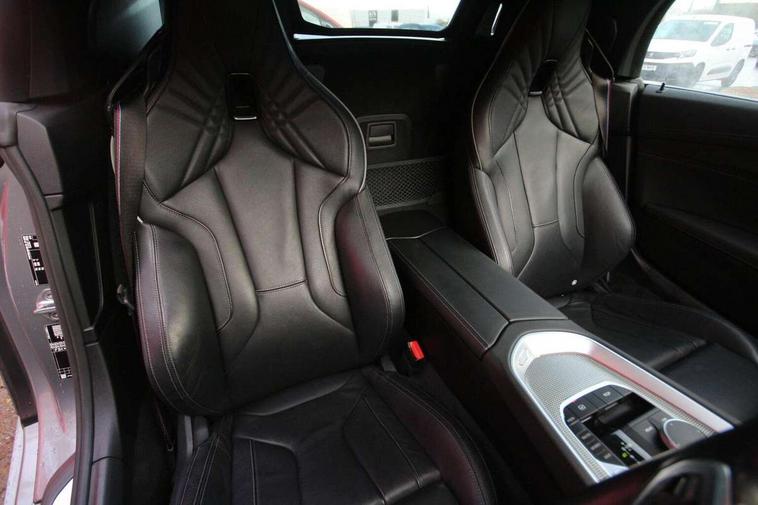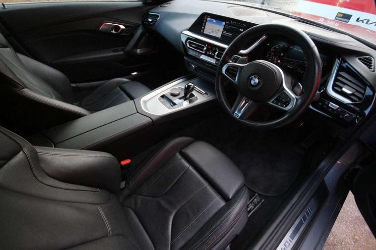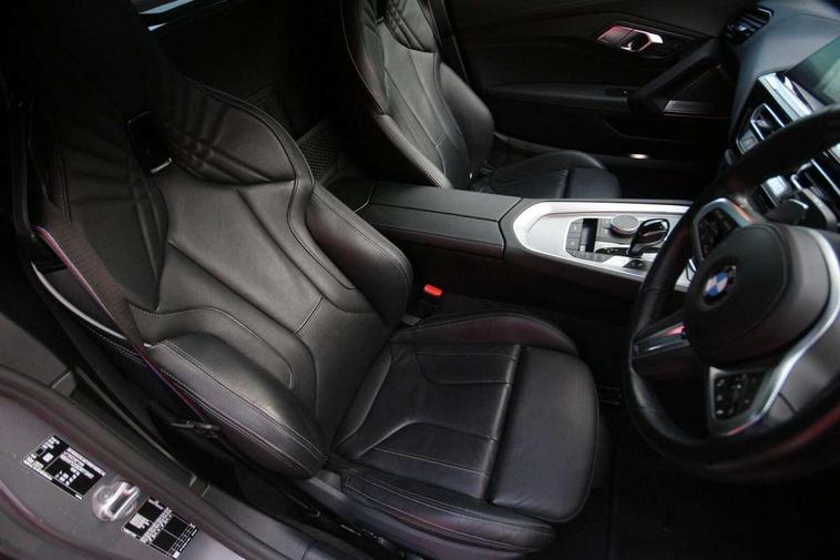 Active guard plus incl speed limit assist, lane departure warning with steering impulse and front collision warning with brake intervention, BMW ConnectedDrive online services, BMW Live Cockpit Professional with nav function/12.3" high resolution instrument +10.25" control display/Intelligent Voice Assist/2 USB/WiFi interface, BMW Teleservices, Condition based service, Electric power steering, Fuel gauge, iDrive touch controller with turn and press function, Instrument cluster, Language version English, Oil sensor for level and grade, warning by check control system, Oil temperature gauge, Optimum shift indicator, Pull away assistant, Run flat indicator, Speed limiter, Speedometer with mph readout, Tachometer, Variable sport steering, Adaptive M suspension, Double joint spring, Double VANOS, Drive performance control with ECO PRO comfort + sport mode, Eight speed steptronic sport transmission, with gearshift paddles, Fuel tank breather system, High precision injection, M Sport differential, 2x USB Type C ports in front centre console for charging and data transfer, 2x USB Type C ports in rear centre console for charging, DAB tuner, USB connection, 3rd brake light, Automatic headlight beam throw control with load dependent regulating reaction, dynamic compensation of braking dive and acceleration squat, Cerium grey exterior mirror housing, Door sill finishers with M designation, Door sill strips, Dynamic braking lights comprising activated hazard warning flashers, Electric heated rear window, Exhaust tailpipe - split left and right, Exterior mirrors - electrically folding with anti-dazzle, Fingertip control / anti-trap function on electric window, Follow me home headlight function, Front and rear bumper system with replaceable deformation elements, Green tinted heat protection glazing, Heated windscreen washer jets, High gloss black exterior trim, High gloss black window recess finisher, Interior rear view electrochromatic mirror with automatic anti dazzle function, Kidney grille in mesh design, LED daytime driving lights, LED Indicators, LED rear lights, Lightweight engineering, M aerodynamic body kit, Model logo, Rain sensor, Rear boot, Reversing light, Tailgate release handle, Two stage brake force display, Visible VIN plate, Welcome lighting, Wind deflector, Windscreen wipers with adjustable interval, 12V power point in luggage area, 12V power socket in front storage compartment, 2 cup holders in front centre console, Activation of interior lighting, Additional storage compartment - 4 lashing eyes, strap and storage net, Ambient lighting, Battery in luggage compartment, BMW ID, Child seat ISOFIX attachments for passenger seat, Driver and front passenger heated seats, Driver and front passenger lumbar support, Electrically adjustable front driver and passenger seats with memory, Front and rear armrests integrated in door trim + centre console includes storage compartment and rear centre armrest includes 2 cupholders, Front and rear velour floor mats, Front headrests, Height adjustable mechanically and infinitely variable steering column, Illuminated glovebox, Luggage compartment light, M sport leather steering wheel, M Sport seats for driver and passenger, Microfilter and active carbon filter, Multifunction steering wheel, Single front passenger seat, Sunvisors with vanity mirrors and ticket pocket, Through load system, Two zone automatic air conditioning, Vernasca leather upholstery, Connected package professional - Z4, 3 point front seat belts, Airbags - Front driver and passenger, front and side impact protection, Anti lock braking system (ABS) with brake assist, Automatic Stability Control (ASC), BMW emergency call, Brake energy regeneration, Braking readiness, Cornering brake control (CBC), Crash sensor activating central locking release, hazard warning lights, fuel cut off, interior lighting, safety battery terminal clamp and airbags, Curtain airbags, Deactivation of fuel pump in the event of a crash, Dry braking, Dynamic brake control, Dynamic stability control + (DSC+), Dynamic Traction Control - DTC, Electromechanical parking brake with automatic drive away release and auto hold function, Front and rear brake discs with interior ventilation, Head airbags, M Sport brakes with blue calipers M designation in front, M sport seatbelt, Plastic fuel tank, Pyrotechnic seat belt tensioners, Roll over protection, Seat belt force limiter, Seat belt stopper, Seat occupancy protection, Side airbags for driver and passenger, Two tone horn, Tyre pressure monitoring with three level warning strategy, Warning triangle, Centre lock switch, Closing system with central locking, Electronic vehicle immobiliser, Start/stop button with Comfort Go keyless engine start and auto Start/stop deactivation button, Thatcham cat 1 remote alarm, Sensatec dashboard, 19" Double spoke alloy wheels in bicolour cerium grey - style 800M, Reduced rolling resistance tyres, Tool kit, Tyre repair kit,