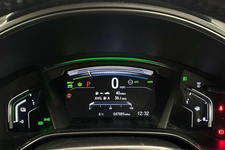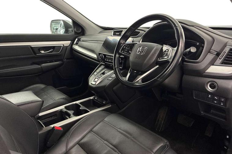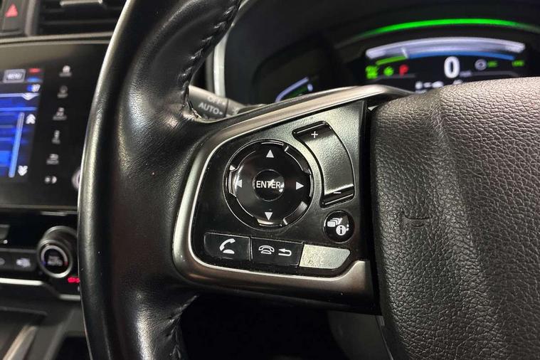 Adaptive cruise control, Agile handling assist, BLIS (Blind Spot Information System) with dual power heated blind spot mirrors, Bluetooth hands free telephone connection, E-call, Economy mode, Electric power steering, Emergency stop signalling system, Forward collision warning, Front parking sensors, Honda CONNECT with GARMIN Navigation + 7" touchscreen, DAB radio, Apple CarPlay, Android Auto, Aha app integration and internet browsing, Intelligent multi info display, Lane departure warning system, Lane keep assist system, Low speed following, Rear parking sensors, Rear view camera, Road departure mitigation, Speed limiter, Traffic sign recognition, Vehicle stability assist, 2 USB sockets in rear, 2x USB sockets in front, 9 speakers, DAB Digital radio, Dashboard centre speaker, Front tweeters, Steering wheel mounted controls, Subwoofer, Aspheric door mirrors, Auto dimming rear view mirror, Automatic headlights with dusk sensor, Body colour bumpers, Body colour door handles, Cornering light, Door mirrors tilt when reversing, Electric front windows/one touch facility, Electric rear windows + one touch facility, Electrically adjustable and heated door mirrors, Electrically retractable door mirrors, Front windscreen de-icer, High beam assist, LED daytime running lights, LED front fog lights, LED Headlights, LED rear lights, Rain sensor, Rear privacy glass, Rear side wing doors, Rear wiper, Roof rails, Shark fin roof aerial, Tailgate spoiler, Third brake light, Welcome home function, 3 seat bench in 2nd row, 60/40 split folding rear seat, Accessory sockets, Ambient interior lighting, AWD emblem rear, Cargo hooks, Courtesy lights, Driver's electric adjustable lumbar support, Driver/passenger front seatback pockets, Driver/passenger sunvisors with illuminated vanity mirrors, Dual zone automatic climate control, Electric lumbar adjustment on passenger's seat, Footwell ambient lighting, Front centre armrest, Front map lights, Front passenger seat height adjust, Heated front seats, Height adjustable driver's seat, Hybrid emblem, Illuminated glovebox, Instrument panel with garnish wood film, Isofix child seat preparation, Leather steering wheel, Leather upholstery, Paddle shift controls, Rear air vents, Rear centre armrest, Rear headrests, Rear reading lights, Rear seat conversation mirror, Silver interior door handles, Single front passenger seat, Sunglasses holder with mirror, Tilt/telescopic adjustable steering wheel, Tonneau cover, Trunk light, 5 x 3 point seatbelts, ABS/EBD, Anti-whiplash front headrests, Brake assist function, Collision mitigation braking system, Deflation detection system, Driver airbag, Electronic parking brake with auto hold, Front and rear curtain airbags, Front and rear seat belts with emergency locking retractor (ELR), Front side airbags, Hill start assist, Manual child lock in rear doors, Passenger airbag deactivate switch, Honda super locks, Immobiliser, Security alarm, Smart entry + Smart start, Ultrasonic security sensor, Tyre repair kit,