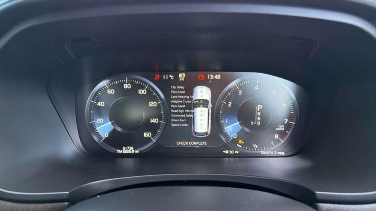 Tailored Instrument Panel and Door Tops with Contrast Stitching, Tempa spare wheel and jack, Anti-theft alarm including immobiliser/volume sensor + level sensor, Key integrated remote control central locking + fuel flap with deadlocking system and auto open/close power windows, Locking wheel nuts, Private locking for tailgate, DAB Radio (Digital Audio Broadcasting), Steering wheel mounted audio controls, 3x3 point rear seatbelts, Active bonnet, City safety with steering support with Pedestrian + cyclist + large animal detection + front collision warning with full auto brake, Drivers knee airbag, Dual stage Driver/Passenger Airbags, Electronic parking brake with auto hold, Fasten seatbelt reminder, Front and rear curtain airbags, Front seats SIPS airbags, Hill descent control, Hill start assist, IC (Inflatable Curtains) - Full Length, Passenger airbag cut-off device, Road sign information display, Run off Road Mitigation, Run off Road Protection, Seatbelt pre-tensioners, SIPS (Side Impact Protection System), Stability and Traction Control with Spin control, Engine Drag Control and Corner Traction Control, Tyre pressure monitoring system, Vehicle deceleration control with Anti-lock Brake System, Electronic Brake Distribution and Emergency Brake Assist, Warning triangle and first aid kit, WHIPS whiplash protection system - front, Adaptive brake lights, Auto dimming exterior mirrors, Auto dimming interior mirror, Automatic headlamp levelling, Body colour electric folding/heated door mirrors, Body coloured bumpers, Charcoal lower grille, Charcoal lower side door mouldings, Charcoal wheel arch extensions, Cross Country embossed rear bumper, Dual exhaust pipes, Enlarged door mirrors, Front and rear electric windows, High gloss black grille with chrome inserts, High gloss black window trim, High level LED brake light, Home safe and approach lighting, Illuminated side steps, LED Headlights + Active high beam incorporating daytime running lights, Rain sensor windscreen wipers, Roof antenna, Roof spoiler, Silver roof rails, Silver skid plates, Visible VIN plate, 12V socket in front tunnel console, 3 spoke leather steering wheel with chrome trim, 60/40 split folding rear seat, A-pillar parking ticket holder, B Pillar ventilation, Bright metal luggage threshold, Centre armrest storage illumination, Centre console cupholder, Centre console storage, Drivers side dashboard storage, Floor mats, Front and rear aluminium tread plates, Front footwell and side step illumination, Front headrests, Front tunnel storage net, Front/rear reading lights, Grocery bag holder-luggage area, Heated front seats, Height/reach adjustable steering column, Illuminated gear knob, Illuminated glovebox with lock, Illuminated luggage compartment, Illuminated vanity mirrors + ticket holder, Isofix system on outer rear seats, Load cover, Pollen filter, Power Folding Rear Seat Backrests and Headrests, Rear armrest with storage + cupholders, Ski hatch, Theatre dimming interior lights, Underfloor cargo storage, 12.3" Active TFT crystal driver's instrument display, 9" centre console touch screen, Adaptive cruise control with pilot assist, Adjustable steering wheel force, Bluetooth Handsfree Phone Connection, Drive mode selector, Lane keep assist with driver alert control, Oncoming Lane Mitigation, Road Edge Detection, Sensus navigation with European mapping and traffic information, Service interval indicator, Speed limiter, Speed sensitive steering, Touch screen display, Trip computer, Voice activated control for key functions, Volvo on call, 65mm additional ground clearance, 8 speed automatic transmission with start/stop + manual change functions, Touring chassis,