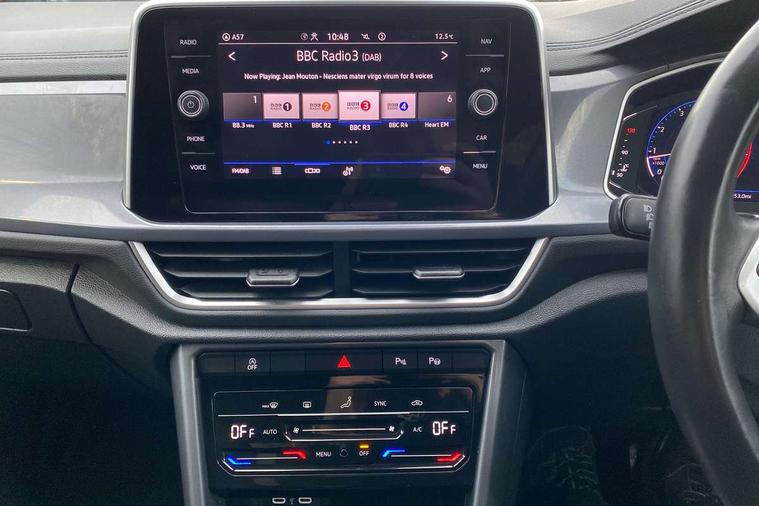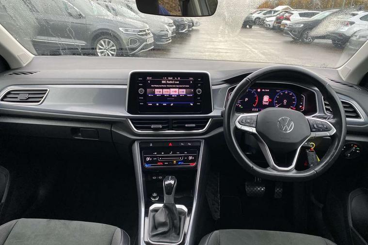 10.25" Digital cockpit pro, Advanced driver attention and drowsiness monitor, Bluetooth mobile phone interface, Emergency call service, Lane keeping system Lane Assist, Modified key software - reduce switch off time for key status change to Long no motion, Online services, Park assist including front and rear parking sensors, Service interval indicator, Tailgate/trunk lid release from outside, Think blue trainer driver tips and journey analysis, Warning sound and light for front seatbelts unfastened, Wireless app connect, Battery regeneration during braking, Start/stop function with battery regeneration, Diversity antenna for FM reception, Music playback - MP3, WMA and AAC files, Premium USB cable in choice of either Apple or Android smartphone compatibility, SD card slot, Simultaneous pairing of 2 compatible mobile devices, Title and cover art display, We Connect and We Connect Plus functionality, 3rd brake light, Auto dimming interior rear view mirror, Automatic hazard lights activation under emergency braking, Automatic headlight control with LED separate daytime running lights with coming/leaving home function, Body colour sports bumpers with silver metallic underbody fascia, Dynamic headlight range control with self adjusting whilst driving, Electrically adjustable and heated door mirrors, Extended roof spoiler, Exterior mirrors aspherical on driver side, convex on front passenger side, External USB type C socket and charging sockets, Front windscreen wiper with intermittent wipe and 4 position delay, Heated rear window, LED rear combination lamps, LED rear number plate lights, Light mode for poor weather, rain, fog or snow, Power windows with comfort operation and circuit breaker, Rain sensor, Rear exhaust tailpipe, Rear fog light on one side and reversing lights on both sides, Rear side wing doors, Rear wash/wipe with intermittent wipe setting, Remote electrically foldable door mirrors, puddle lights and reverse activated passenger's door mirror, 12V power socket in centre console, 3 rear head restraints, 3 seat bench in 2nd row, 4 load lashing points in luggage compartment, Air care climatronic air conditoning system with active combination filter and 2-zone temperature control, Chrome plated radiator grille inserts, air vent surrounds and light switch surrounds, Door and side trim panel with leatherette insert, Drawer under drivers seat, Front + rear carpet mats, Front centre armrest, Front comfort sports seats, Front cupholders x 2, Front footwell illumination, Front seat back storage pockets, Glove compartment door with light, Instrument lighting, white adjustable panel illumination, Interior ambient lighting and surround lighting, Interior light delay, Isofix child seat preparation, Leather gearshift handle, LED interior light with switch off delay/dimmer and 2 front/rear LED reading lights, Load-through provision with cup holder when folded down ('Unsplit rear seat bench, split folding backrest, with centre armrest), Luggage compartment lighting, Non-folding front passenger seat backrest, Single front passenger seat, Storage compartment in left and right luggage area, Storage compartment in rear doors, Storage compartments in driver and front passenger doors, Sunvisors with illuminated vanity mirrors, Variable boot floor, height adjustable and removable, Driver assistance pack without proactive passenger protection - T-Roc, 3 point height adj front seatbelts + pretensioners, 3 point seatbelts in outer rear with ECE label, ABS, Child locks on rear doors, City emergency braking and pedestrian monitoring, Driver and front passenger airbag with front passenger airbag deactivation, Driver and front passenger safety-optimised head restraints, Drivers seatbelt reminder, Electronic parking brake, Electronic Stability Control (ESC) inc EDL (Electronic Differential Lock) and ASR (Traction Control), Front and rear passengers curtain airbag system including front side airbags, Predictive pedestrian protection, Rear disc brakes, Two tone horn, Tyre pressure loss indicator, Volkswagen roadside assistance, Anti-theft alarm system with interior monitoring, backup horn, and towing protection, Remote central locking with SAFELOCK, radio remote control with 2 remote control folding keys, Trims for alloy wheels,